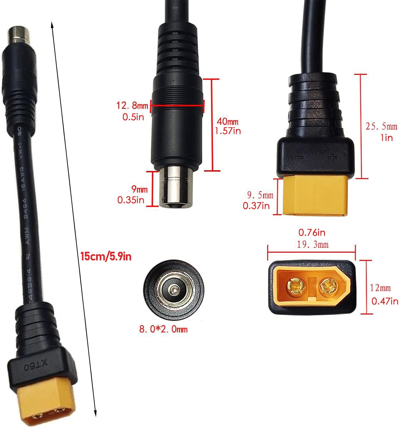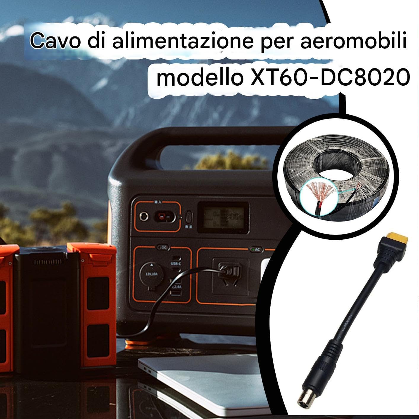 Reliable Charging Adapter: Designed to connect XT60 output to DC8020 input devices, this cable provides stable and efficient energy transfer for solar generators, stations, and portable battery systems used in both indoor and outdoor environments High-Efficiency Performance: Engineered for low loss and strong conductivity, the cable ensures maximum current flow from solar panels or battery packs to compatible devices like model aircraft, portable generators, or storage banks Portable and Lightweight: Compact and easy to carry, this adapter cable is ideal for travel, field use, or projects, offering reliable connectivity in a small form factor that fits neatly in toolboxes or solar kits Durable Build Quality: Constructed with high-grade materials for durability, the cable resists heat, wear, and environmental stress, providing a long service life for demanding charging or powering applications in various conditions Compatibility: Perfect for hobbyists and off-grid enthusiasts, this XT60 to DC8020 cable supports a wide range of uses, including model aircraft batteries, camping gear, solar energy setups, and portable stations