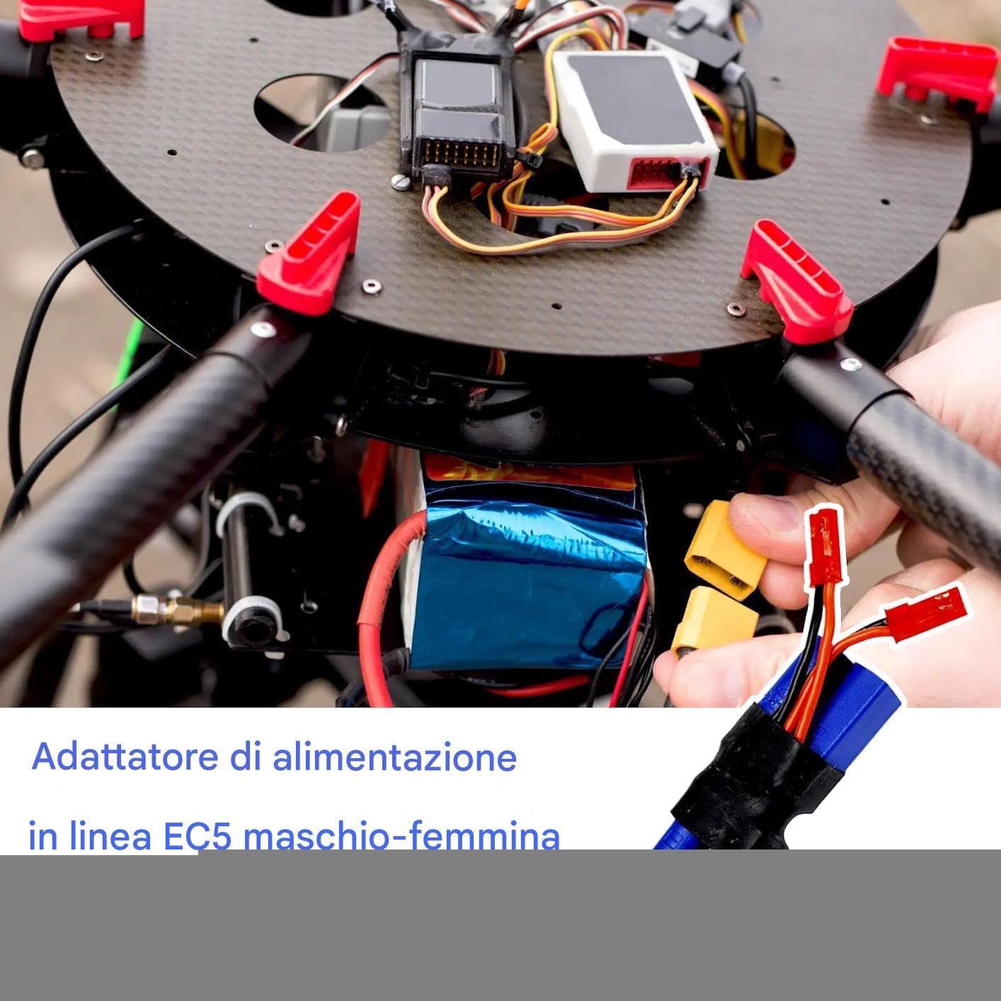 Versatilità: Connettore EC5 semplifica l'alimentazione di accessori elettronici, gestisce richieste di carica varie per dispositivi RC e applicazioni aeronautiche grazie a trasmissione elettrica efficiente e duratura nel . Installazione Semplice: Connettore EC5 con plug and play per montaggio immediato senza strumenti, migliora efficienza operativa con collegamento intuitivo e sicuro Opzione Pratica: Adeguato ai requisiti degli hobby avanzati, offre connettori stabili per configurazioni batteria RC in applicazioni ricreative multiple, apprezzato da giovani e adulti Performance Costante: Design robusto gestisce scenari ad alto carico evitando surriscaldamento, sopporta 105C per prestazioni affidabili del connettore EC5 batteria RC Trasferimento Energetico: Ingegnerizzazione accurata dei componenti assicura connessione stabile con caricabatterie e accessori RC, ottimizzando la conduzione di energia senza cali di tensione durante l'utilizzo prolungato