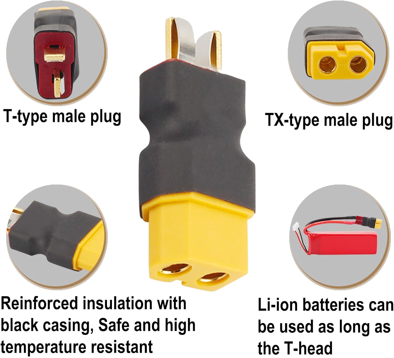 Ampia compatibilità: adattatore spina XT60 senza cavo, come collegamento tra batteria di alimentazione e dispositivo, ampiamente utilizzato in aerei telecomandati, macchinine telecomandate, droni FPV, batterie lipo, ecc. Conversione della porta XT60, utilizzando le porte XT60. Plug and Play: connettore XT60 standard, facile da collegare, basta collegarlo e utilizzarlo, non sono necessarie ulteriori operazioni, molto conveniente. Squisita fattura: adattatore spina XT60 senza cavo, spina XT60 standard, apertura dalla forma precisa, collegamento e scollegamento regolare. Facile da trasportare: adattatore maschio-femmina XT60, nessun design del cavo può risparmiare più spazio, piccolo, leggero, facile da trasportare. Presa placcata in oro: adattatore per spina XT60 senza cavo, utilizziamo tappi placcati in oro, resistenza alla corrosione, resistenza durante il collegamento, forniamo la massima conduttività e durata per garantire una trasmissione di potenza stabile.