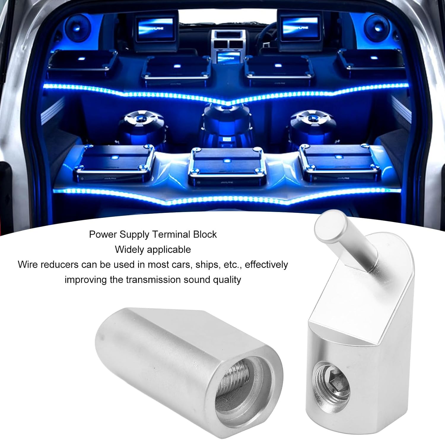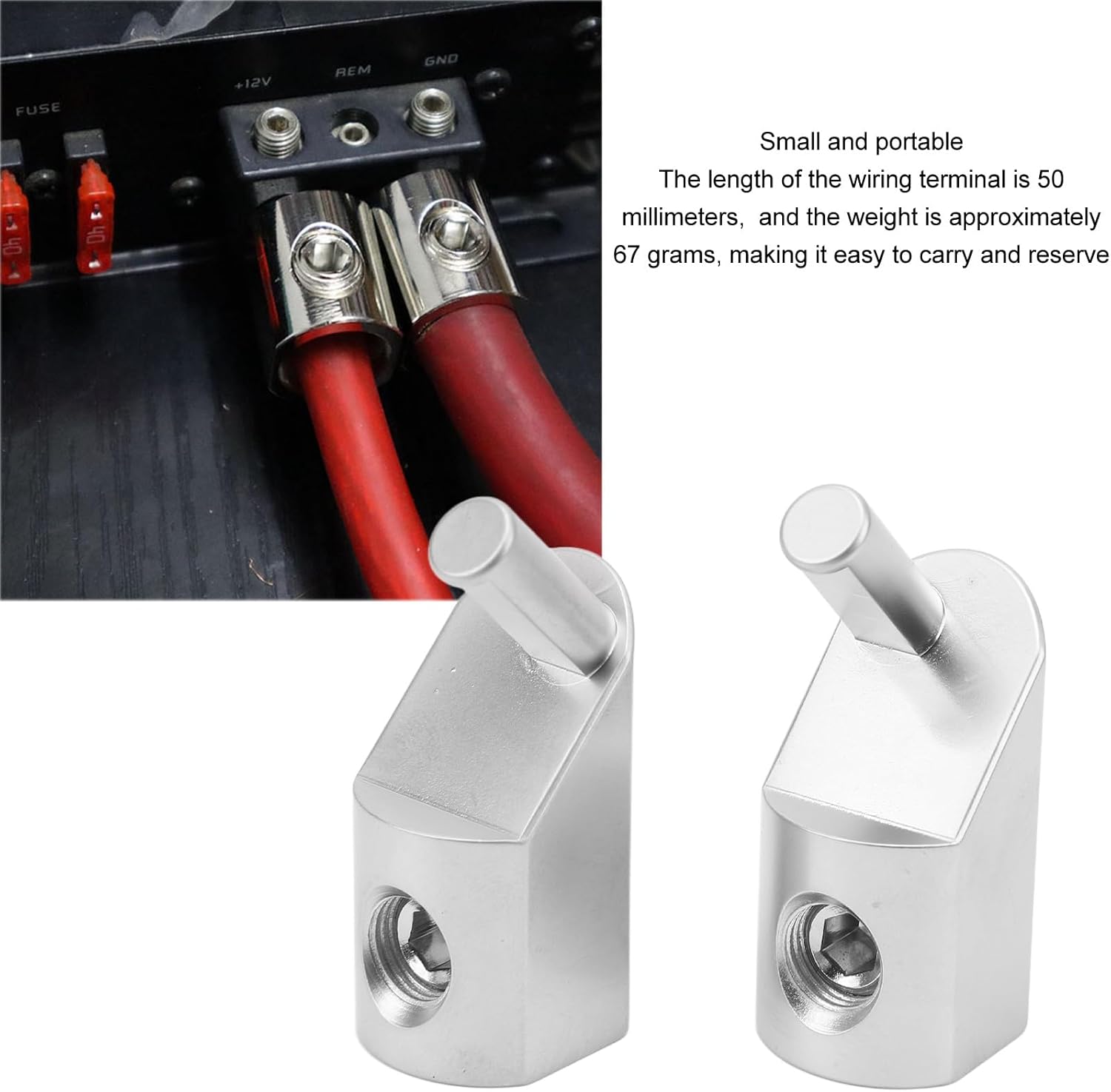 Ampiamente applicabile: il terminale di alimentazione è adatto per cavi di alimentazione o di messa a terra. I riduttori di filo possono essere utilizzati nella maggior parte delle auto, navi, yacht, camper, ecc., migliorando efficacemente la qualità del suono della trasmissione. Facile da installare: i terminali di cablaggio non richiedono crimpatura e sono facili da installare senza la necessità di strumenti speciali o personale di installazione professionale. Possono essere installati in modo indipendente e possono essere completati in breve tempo. Giunzione stretta: la morsettiera è stata progettata attentamente per connettersi saldamente al cavo, senza perdite e altri problemi, e può proteggere il sistema audio. Durevole: il riduttore in filo di acciaio è realizzato in lega di alluminio, con buona conduttività, elevata durezza, resistenza agli acidi e alla ruggine e può resistere a qualsiasi condizione atmosferica avversa. Ha una lunga durata e non richiede sostituzioni frequenti. Compatto e portatile: la lunghezza del terminale di cablaggio è di 50 mm/1,97 pollici, il diametro del cablaggio dell'anello filettato è di 16 mm/0,63 pollici e il peso è di circa 67 g, il che lo rende facile da trasportare e riporre.
