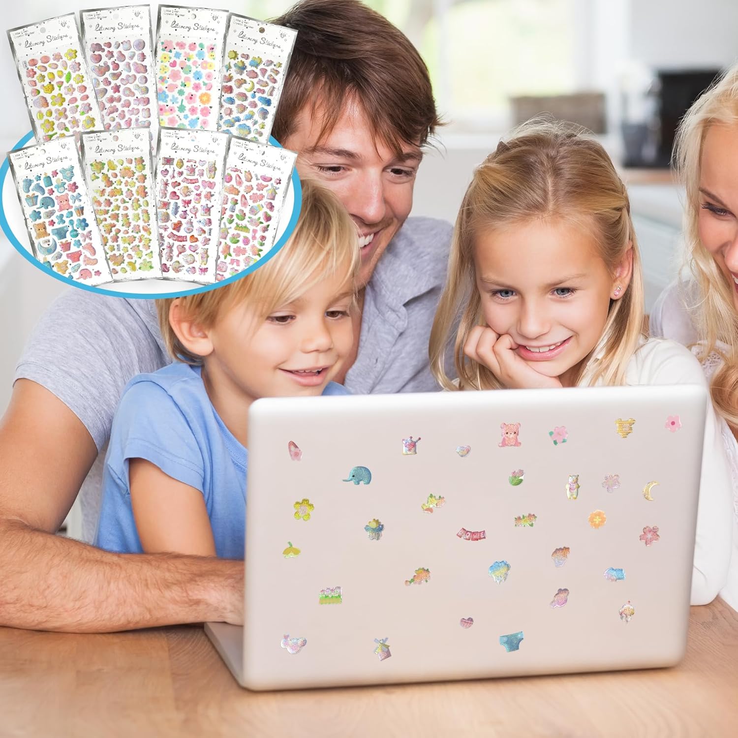 【Adesivi decorativi glitterati】Include 8 fogli di adesivi in cristallo epossidico con circa 366 diversi motivi 3D. Colori vivaci e cristalli scintillanti sono perfetti per decorare vari oggetti. Puoi progettare la decorazione secondo i tuoi desideri. 【Set di adesivi 3D per bambini】 Perfetto per album di ritagli, diari, mani o volti di bambini, pareti o tazze. I diversi motivi garantiscono ore di divertimento e incoraggiano l'immaginazione e la creatività dei bambini. Facile da installare: realizzato in plastica impermeabile e sicura, è adatto ai bambini. Gli adesivi possono essere facilmente rimossi dal foglio adesivo e rimossi da superfici lisce senza lasciare residui. Autoadesivo, facile da applicare, non richiede colla o nastro adesivo. 【Ponte di gioco interattivo】L'ampia selezione di adesivi aiuta i bambini ad ampliare le proprie conoscenze e ad espandere le loro conoscenze generali quando insegnanti e genitori giocano con i loro figli. Ciò promuove anche il legame con i bambini! 【Ricompensa e regalo perfetti】 Insegnanti e genitori possono scegliere adesivi su temi diversi per premiare il duro lavoro e il buon comportamento dei propri figli. Questi adesivi sono un successo tra i bambini e sono regali perfetti per la famiglia e gli amici durante le vacanze come Natale.