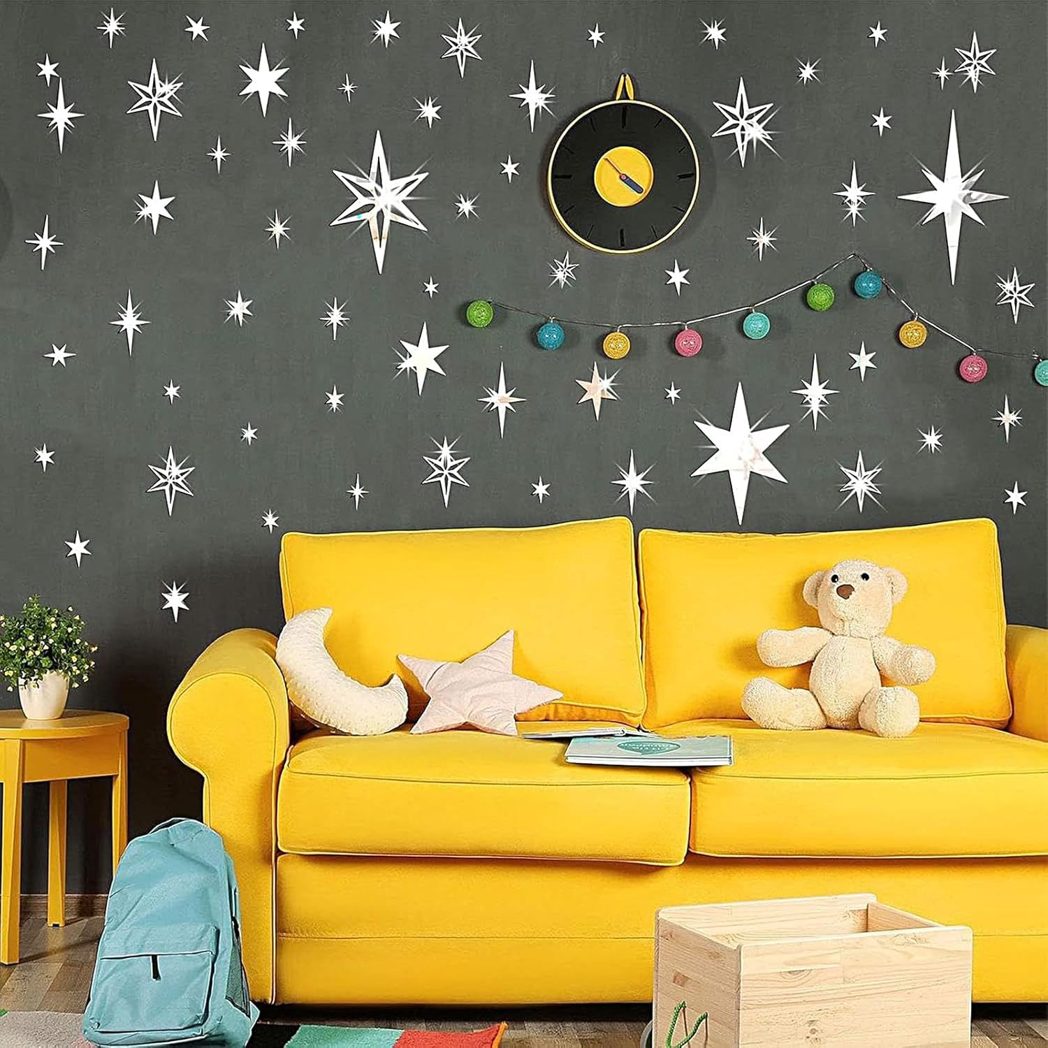 Idee di design versatili: ravviva i tuoi eventi con questa decorazione da parete a stella a specchio che combina superfici riflettenti e motivi complessi per creare effetti visivi sorprendenti. La loro adattabilità si integra perfettamente con l'illuminazione da parete: ideale per pareti d'accento in camera da letto o decorazioni festive. Decorazione accattivante della stanza: gli adesivi murali a stella con acrilico riflettente e traforato forniscono un accattivante effetto cielo stellato 3D. Promuovono un'incantevole atmosfera di vacanza nella cameretta dei bambini, dove i bambini possono godersi un ambiente rilassante e fantasioso per notti riposanti. Decorazione da parete a misura di bambino: l'adesivo da parete con stella offre un'elevata trasmissione della luce per un look accattivante nella scuola materna. La costruzione resistente agli urti garantisce durabilità anche negli ambienti attivi utilizzati quotidianamente dai bambini. Decorazione senza residui: l'adesivo rimovibile degli adesivi murali a forma di stella garantisce un'applicazione e una rimozione sicure. Una persona può installarlo facilmente, con un uso ripetuto senza danneggiare il muro. Particolarmente vantaggioso per decorazioni stagionali o temi temporanei, preserva la superficie della parete e ne migliora senza sforzo l'estetica. Splendido effetto cielo notturno: questi adesivi con cielo stellato colpiscono per le superfici a specchio resistenti allo sbiadimento e la perfetta stabilità del colore per cinque anni. Forniscono un impressionante effetto galassia per la decorazione tutto l'anno in accoglienti zone giorno o camerette con facile manutenzione con un panno morbido.