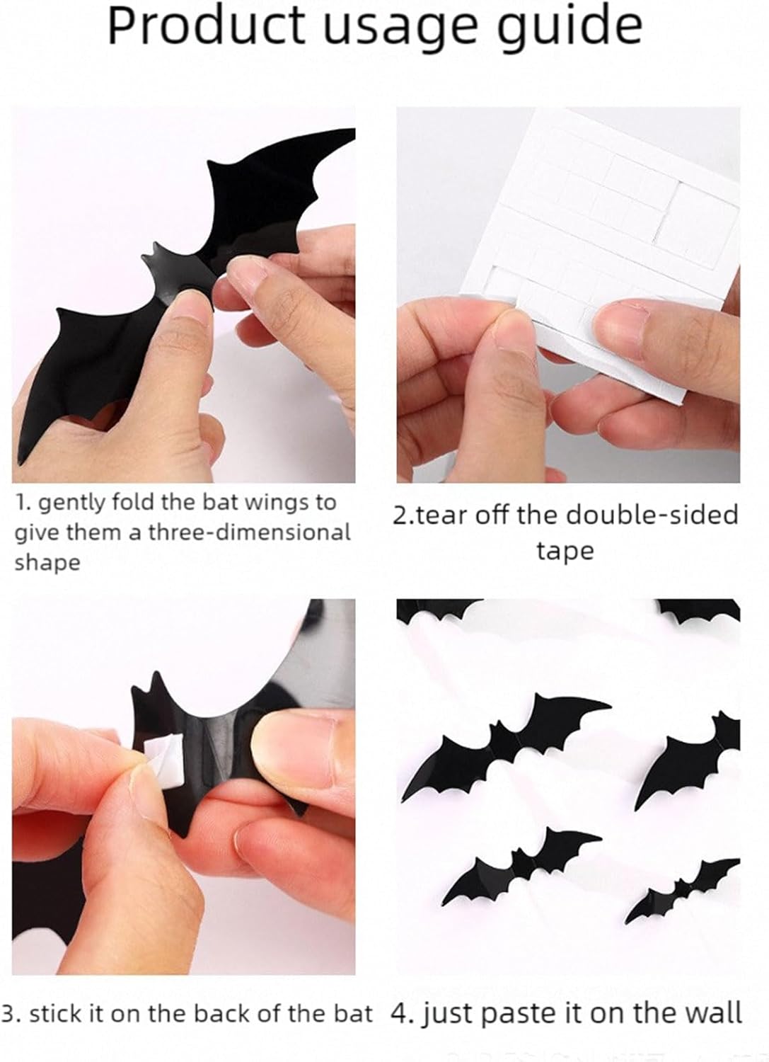 Perfetto per famiglie astute, organizzatori di feste di Halloween e famiglie che accettano animali domestici alla ricerca di una decorazione murale sicura di Halloween che stimoli la creatività sia nei bambini che negli adulti Trasforma salotti, camere da letto, balconi, aule o temi di case infestanti in spazi horror Ideale per esporre festività stagionali, fondali dolcetto o scherzetto o migliorare interni a tema Il PVC leggero e impermeabile garantisce un'applicazione semplice e il riutilizzo dei festival stagionali e offre un drammatico effetto di illusione sotto l'illuminazione ambientale per un miglioramento atmosferico indimenticabile Trasforma chiunque Decora il tuo spazio abitativo con queste decalcomanie a forma di pipistrello con disegni chirotteri dimensionali realistici e crea Illusione dinamica di pipistrelli volanti per coinvolgenti decorazioni di Halloween Adesivi pipistrelli in PVC con supporto adesivo che si attaccano facilmente a parete, finestra o porta, mantello, con 4 diverse dimensioni 8x4 cm, 9x2 cm, 12x3 cm, 16x4 cm per centrotavola per feste di Halloween
