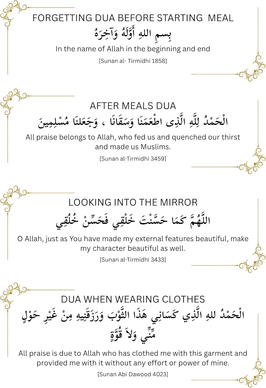 Preghiere islamiche: 12 duas giornalieri accuratamente selezionati per la pratica spirituale, perfetti per i musulmani di tutte le età Design trasparente: adesivi in vinile di alta qualità con sfondi trasparenti che si fondono armoniosamente in qualsiasi ambiente Uso versatile: ideale per sale di preghiera, camerette per bambini, aule o come regalo significativo per occasioni speciali Facile da applicare: il supporto autoadesivo consente un'installazione senza sforzo su una varietà di superfici pulite e lisce Ausilio per l'apprendimento: perfetto come strumento educativo per insegnare le preghiere islamiche quotidiane a bambini e adulti