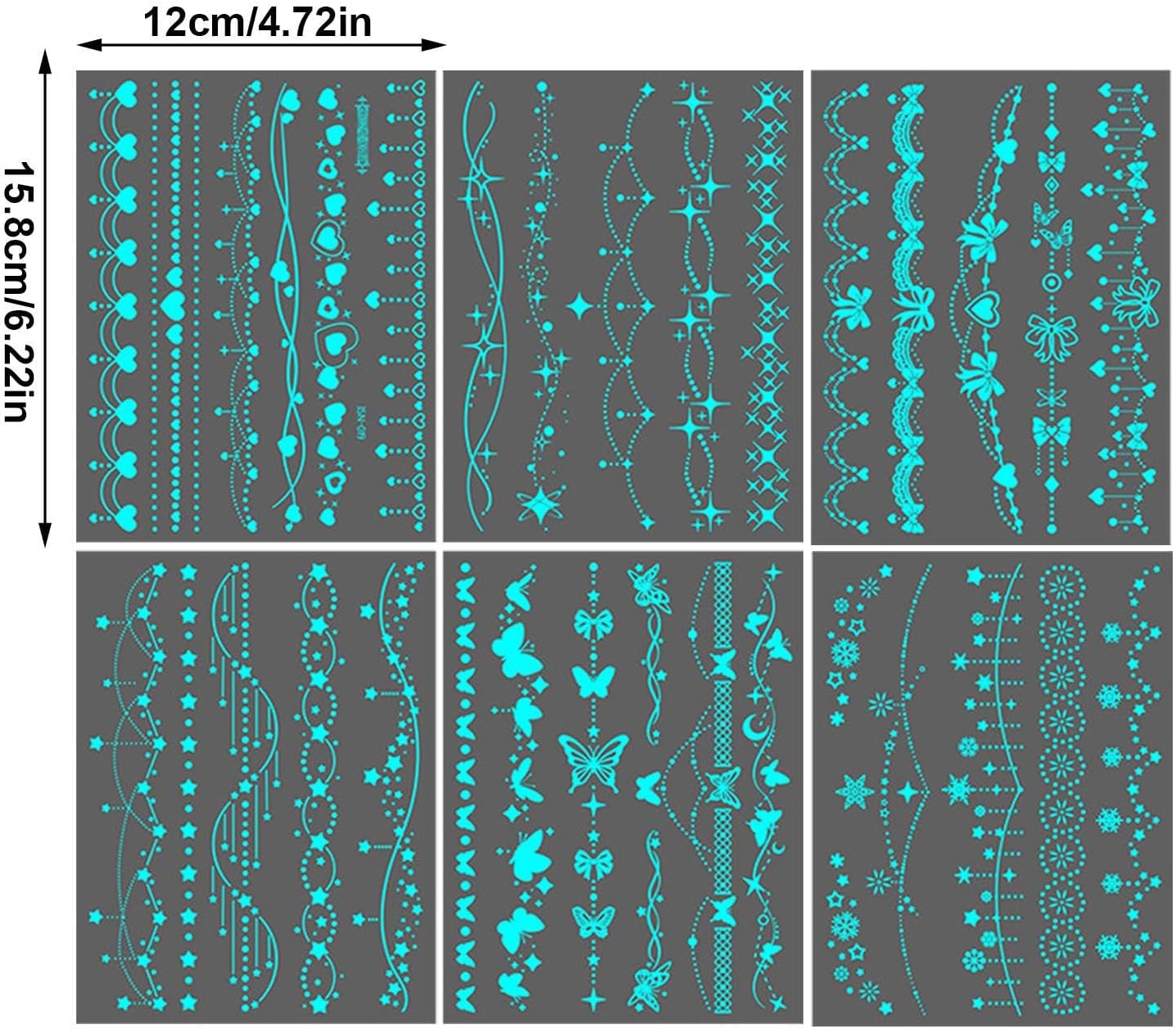 Decalcomanie attivate dalla luce: migliora la creatività utilizzando decalcomanie attivate dalla luce, ideali per disegni di corpo luminosi e accessori per feste che brillano brillantemente in ambienti fluorescenti per la skin art Decalcomanie per la pelle ispirate alla natura: scopri un mix di design temporanei basati sulla natura e chic, ideali per creare adesivi espressivi per body art che soddisfano gusti diversi aggiungendo un tocco artistico agli aspetti quotidiani Applicazioni versatili: solleva la body art del festival o migliora gli strumenti con questi adesivi luminosi adattabili, che fungono da decalcomanie quotidiane e decorazioni multi-superfici per ispirare più possibilità artistiche Skin Art a lunga durata: combinando i vantaggi di una facile rimozione e della tecnologia attivata dall'acqua, queste decalcomanie di lunga durata offrono soluzioni temporanee per la skin art con prestazioni affidabili e senza distacco lasciato Accessori divertenti di gruppo: porta emozione agli eventi sociali con forniture per feste luminose, tra cui decalcomanie impermeabili, ideali per attività di gruppo e design di adesivi personalizzati, realizzati per un divertimento memorabile
