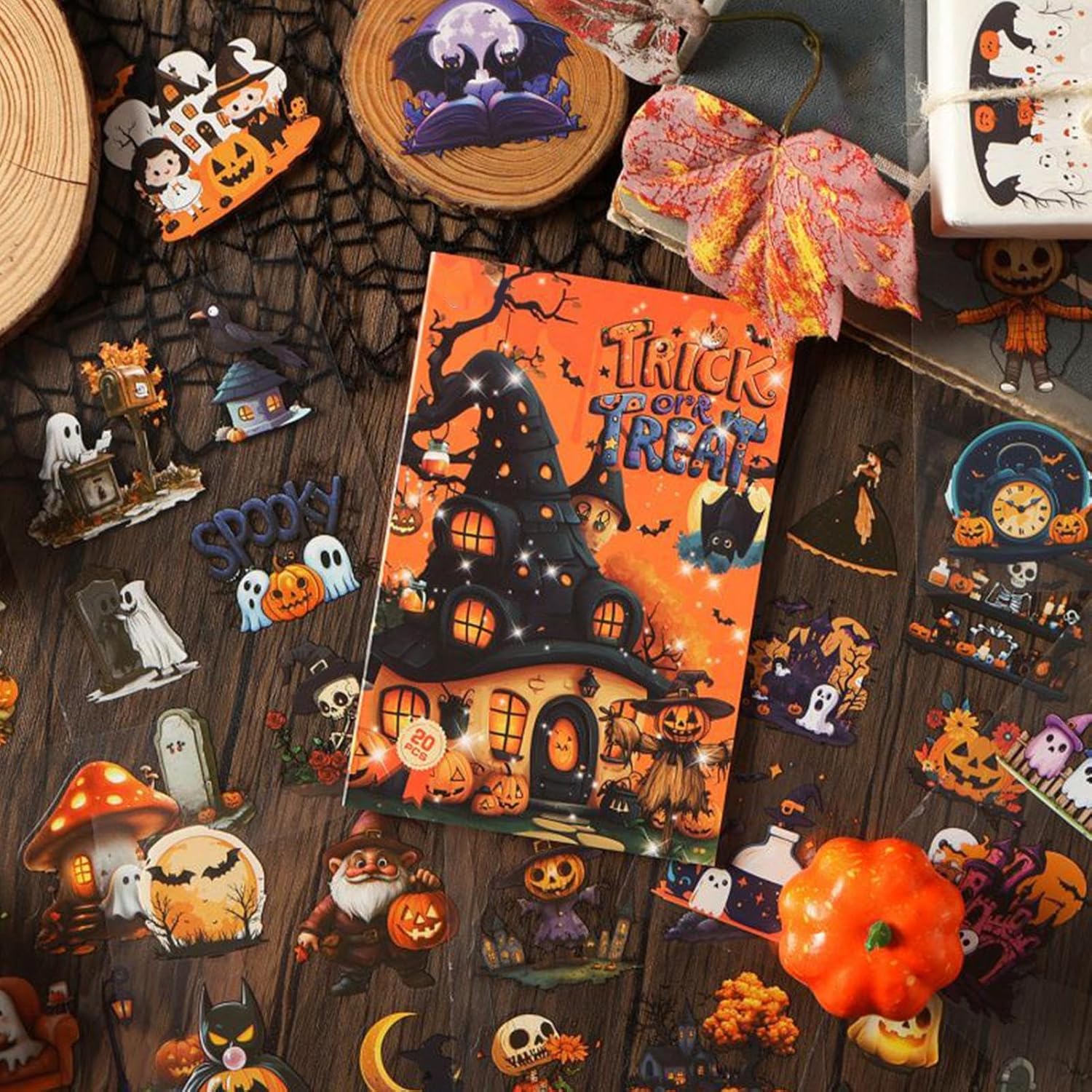 Decorazioni festive: 20 fogli di adesivi Halloween con iconici come zucche, fantasmi e pipistrelli migliorano creativamente l'atmosfera stagionale per tutte le esigenze decorative a tema festivo, creando ambientazioni coinvolgenti Utilizzo Versatile: Ideali per valigie bottiglie d'acqua biglietti d'auguri quaderni sacchetti regalo e skateboard questi adesivi Halloween decorano con stile i tuoi progetti di scrapbooking e journaling aggiungendo un tocco festivo senza sforzo perfetti per appassionati creativi Prestazioni Durevoli: Grazie alla composizione tecnica resistente ad agenti atmosferici e sollecitazioni fisiche, gli adesivi conservano brillantezza cromatica e adesività ottimale per installazioni sia interne che esterne durante tutto il periodo festivo Regalo Festivo: Adesivi Halloween perfetti come regali e sorprese per feste, ideali per bambini e adulti. Ottimi premi scolastici creativi durante le festività, aggiungono allegria a ogni celebrazione. Design Festivo Cartoon: Adesivi Halloween con stile cartone animato, colori brillanti e accattivanti. Uniscono perfettamente simpatici e misteriosi, offrendo motivi vari e diversi per decorazioni creative in tema autunnale.