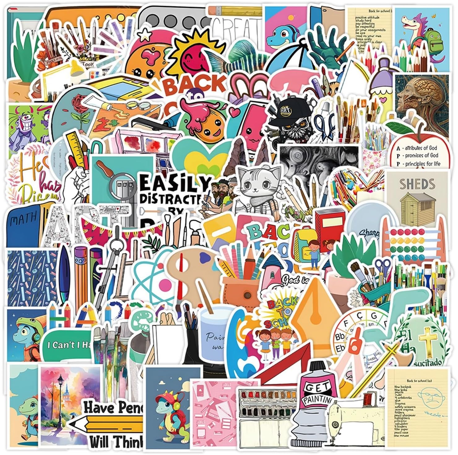 Materiale impermeabile di alta qualità Realizzato in vinile PVC impermeabile di alta qualità, durevole e resistente allo sbiadimento. Aderisce senza problemi su qualsiasi superficie pulita e si rimuove senza lasciare residui. 50 design unici Ogni confezione include 50 modelli alla moda non ripetitivi, dai simpatici cartoni animati all'estetica dei viaggi, perfetti per esprimere la tua personalità. Ampia gamma di applicazioni Ideale per decorare computer portatili, bottiglie d'acqua, valigie, skateboard, telefoni, notebook, chitarre e altri oggetti fai da te. Facile da usare e riutilizzabile