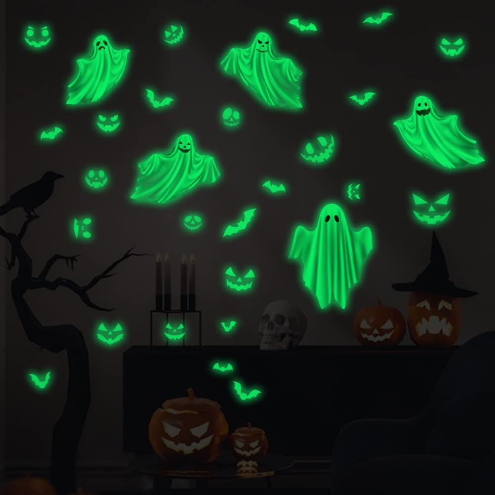 1. Le riprese degli animali domestici sono sicure e insipide. Gli adesivi fantasma sono i migliori per decorare le aree di attività dei bambini come biblioteche, camerette, asili nido, asili nido, ecc. Di giorno o di notte, le semplici pareti prendono immediatamente vita. 2. Ottimo kit. Questo luminoso set di decorazioni murali di Halloween contiene diverse decalcomanie fluorescenti come occhi malvagi, pipistrelli e fantasmi, sono come decorazioni per feste a tema Halloween, feste cosplay e altro ancora per creare un'atmosfera spettrale. 3. Si illumina al buio. Gli adesivi di Halloween devono essere caricati con luci per brillare e possono essere riutilizzati. Apri le tende durante il giorno o accendi una luce o una torcia sull'adesivo per almeno 15 minuti in modo che il pulsante del malocchio abbia abbastanza luce da illuminarsi nel buio della notte. 4. Regali di Halloween. Se stai cercando un regalo a sorpresa per tuo figlio, questo è quello che fa per te. 5. Multiulazioni. per qualsiasi tipo di festa di Halloween spettrale, decorazione di casa stregata, spettacolo teatrale, carnevale, ecc.