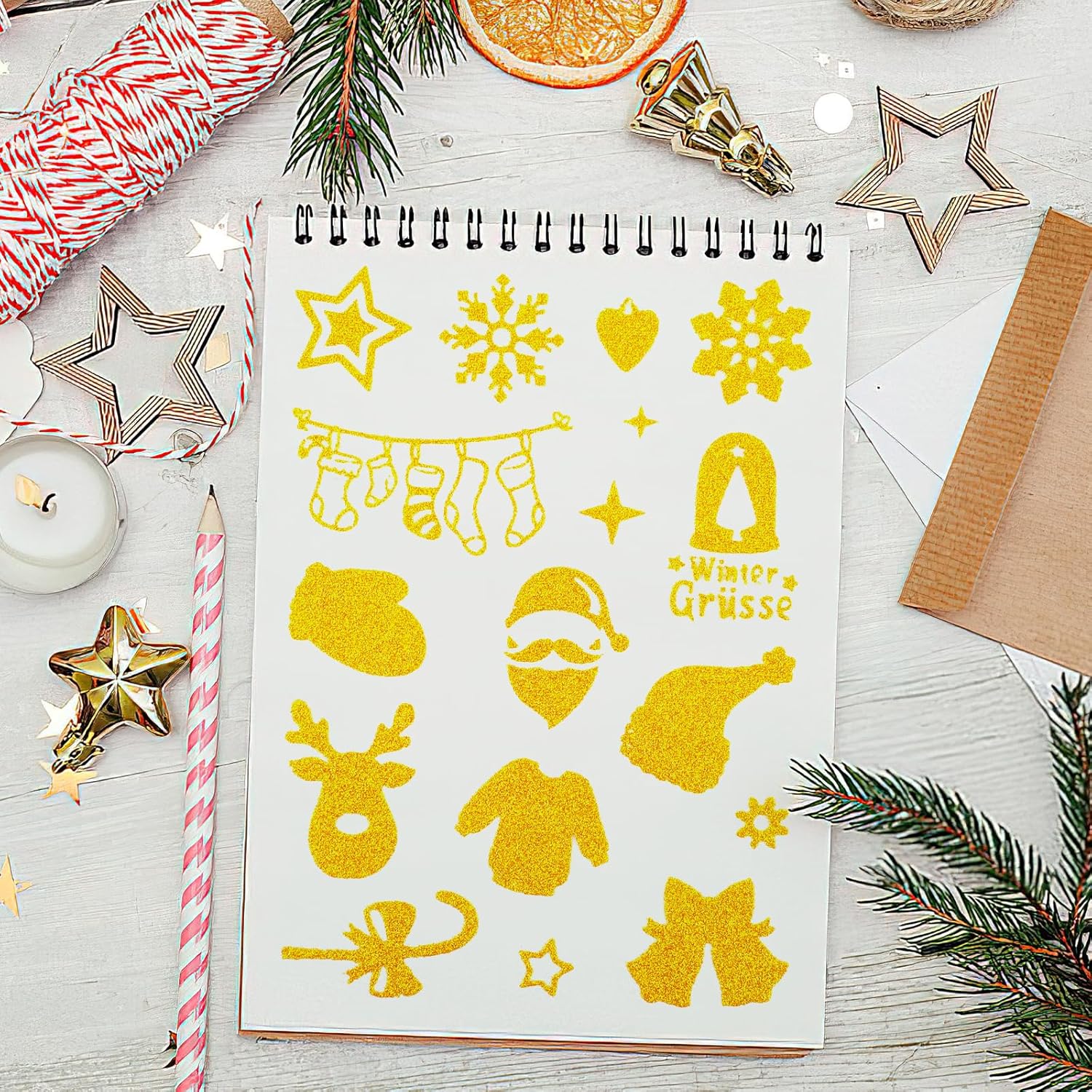 Adesivi natalizi: adesivi multipli di diverse dimensioni e stili su ogni foglio. Puoi anche condividere con altri. perfetti per i progetti natalizi creativi dei bambini. Adesivi natalizi con glitter dorati: questi adesivi con delicati effetti dorati sono l'aggiunta perfetta all'atmosfera festosa. Tanti motivi diversi in diversi effetti di colore, come Babbo Natale, fiocco di neve, alberi di Natale, renne, campanelle e così via. Adesivo natalizio autoadesivo: l'adesivo è autoadesivo, facile da rimuovere dal rotolo di carta, può aderire bene alla maggior parte delle superfici e non cade facilmente. Si attaccano a varie superfici, tra cui tazze, bottiglie d'acqua, scatole regalo, libri, telefoni cellulari, utensili per scrivere e altre decorazioni natalizie. Adesivi per Natale fai-da-te: bellissimi adesivi per decorare lettere e cartoline, perfetti per cartoline di Natale fai-da-te, regali di Natale, scrapbooking, decorazioni di etichette regalo di Natale, confezioni regalo e idee artigianali creative. Buon Natale: questi adesivi non sono solo un fantastico regalo per i bambini, ma anche un bel gesto per sorprendere amici e parenti. Aiutano ad aumentare lo spirito natalizio e a rendere speciale ogni regalo