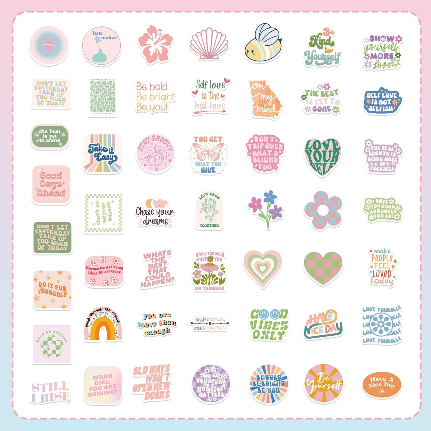 [Pacchetto adesivi pastello danesi da 100 pezzi]: ottieni 100 adesivi pastello unici e alla moda in un unico pacchetto. Ogni adesivo ha un design diverso con cuori, fiori, parole positive e ispiratrici e altro ancora. Questi modelli unici soddisferanno tutte le tue esigenze di decorazione. [Stampe di alta qualità]: i nostri simpatici adesivi sono stampati con tecnologia ad alta precisione per garantire che i motivi siano chiari e precisi. La confezione squisita lo rende un regalo perfetto per i tuoi cari. Ogni adesivo è unico, nessun duplicato! [Dimensione perfetta]: ogni adesivo misura circa 4-7 cm, il che lo rende la dimensione perfetta per ogni articolo. Perfetto per decorare il tuo telefono, laptop, bottiglia d'acqua, skateboard e altro ancora, il tutto con una superficie liscia! [Impermeabile e durevole]: i nostri adesivi sono realizzati in materiale vinilico di alta qualità, impermeabile e durevole. Puoi portarli in spiaggia, in piscina o in altre attività all'aperto senza preoccuparti che perdano la loro appiccicosità. [Divertente fai da te]: i nostri pacchetti di adesivi preppy sono autoadesivi, così puoi divertirti a decorare a mano con amici, compagni di classe e familiari! Questi adesivi creativi sono il regalo perfetto per realizzare decorazioni fai-da-te.