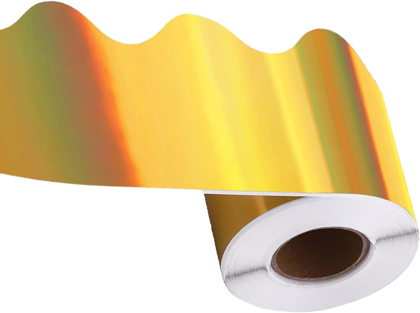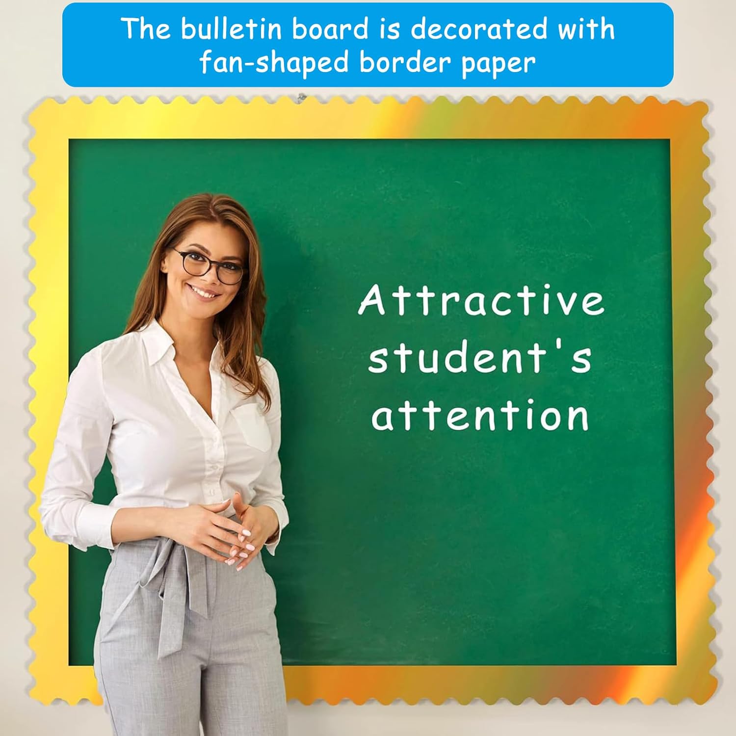 A differenza delle rigide linee rette, il delicato bordo presenta linee flessibili, creano un fascino elegante. I bordi della bacheca d'oro possono essere utilizzati per allineare bacheche, centri di classe. L'uso del bordo a forma di ventaglio per la tua classe è una bella opzione, dando un aspetto accattivante per il bordo del bollettino scolastico. È possibile tagliare la lunghezza in base alle proprie esigenze; facile da mantenere e non si piega facilmente. Il rivestimento della bacheca d'oro è adatto per decorare bacheche nella stanza dei bambini e nell'ufficio della classe.