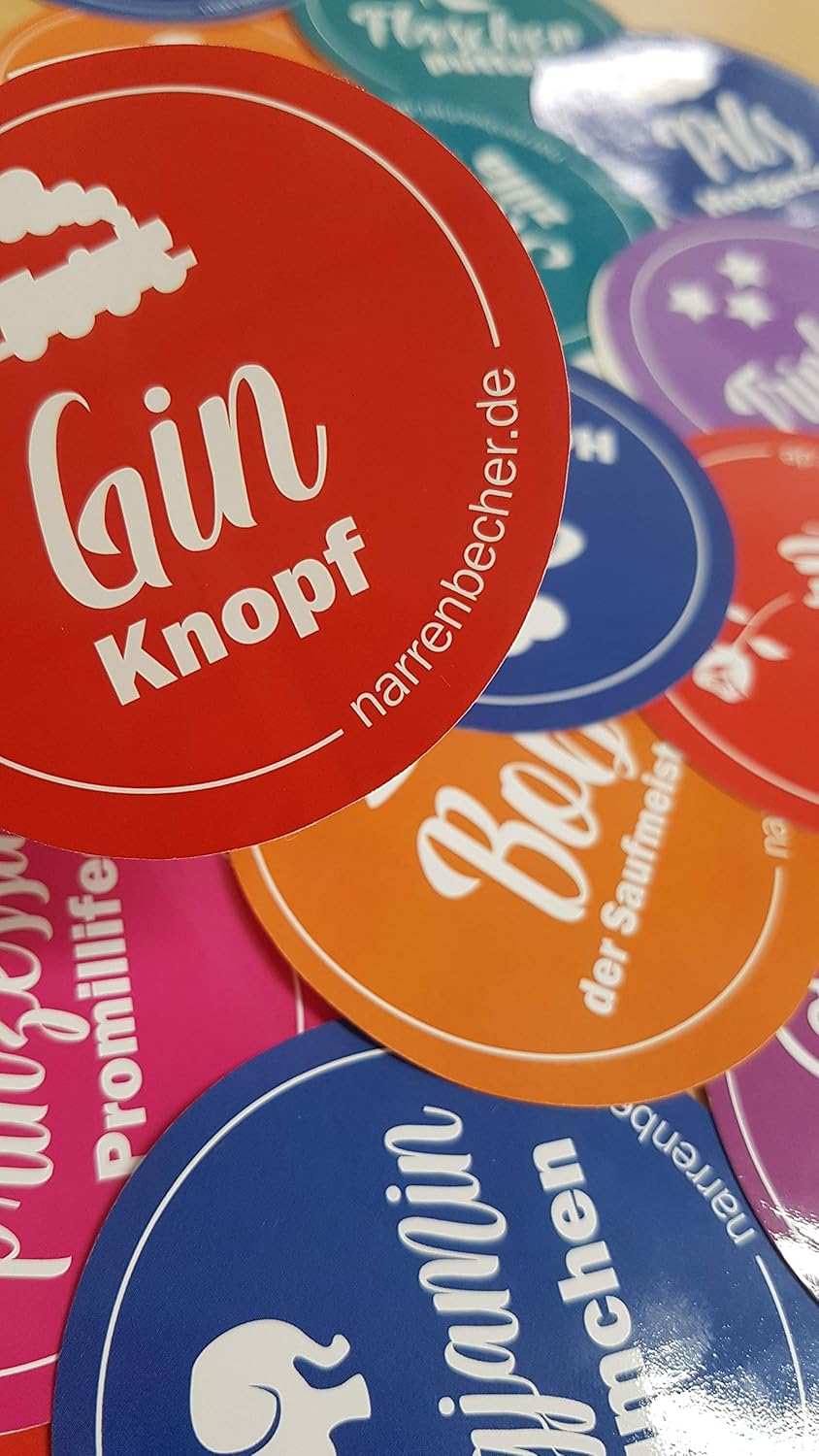 ✓ 30 PEZZI PER CONFEZIONE - Gli adesivi sono venduti in confezioni da 30. 30 pezzi = 1 unità di confezione. 15 frasi diverse, ciascuna frase è inclusa due volte in una confezione: ✓ PANORAMICA DEGLI ADESIVI - Vodkahontas, Princess Promillifee, Ronja Drunkard's Daughter, Trinkerbell, Ronja Drunkard's Daughter, Hello Spritty, Kornröschen, Bibi Shotberg, Bottle Puttel, Pengjamin Blümchen, Harry Klopfer, Pils Holgerson, Bob the Drinking Master, Robin Gulp, Shotzilla, Gin Knopf, ✓ DETTI DIVERTENTI PER OGNI FESTA - Detti super divertenti che sicuramente alleggeriranno qualsiasi festa. ✓ IMPERMEABILE - Adesivi per feste di altissima qualità, robusti, durevoli, lavabili in lavastoviglie, adatti al microonde, 100% impermeabili, diametro per adesivo Ø 6,0 cm ✓ SOSTENIBILE E RIUTILIZZABILE - Facilmente rimovibile in qualsiasi momento senza lasciare residui, rivestito con laminato protettivo, senza coloranti/adesivi tossici