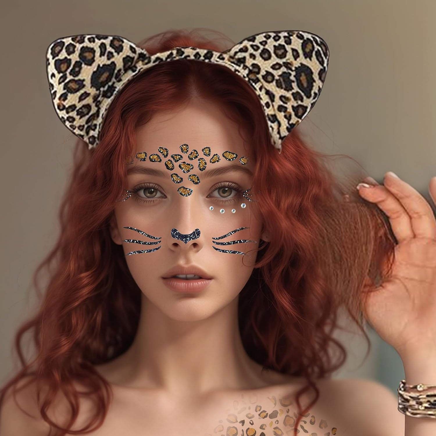 Materiale: la pellicola in PET non è solo leggera e piacevole al tatto, ma è anche molto flessibile e si adatta ai movimenti del viso, in modo che l'adesivo rimanga al suo posto e non si sgualcisca o si danneggi facilmente. Dimensioni: contiene un adesivo con faccia di leopardo e due adesivi con macchie di leopardo, che riflettono perfettamente l'immagine selvaggia del leopardo e conferiscono al carnevale un altro fascino animale, rendendo facile per te rimanere al centro dell'attenzione. Design dell'aspetto: con l'elemento glitter, una delicata faccia di leopardo e due adesivi leopardati, lo scintillante motivo leopardato dorato brilla alla luce e ti rende la stella selvaggia più abbagliante della festa. Tipo di utilizzo: facile e comodo da usare, non richiede competenze professionali, staccare e incollare. Puoi giocare liberamente in base alle tue preferenze, adesivo flessibile con punti decorativi su viso, collo o braccio, facile da creare una moda leopardata personale. Altre applicazioni: che tu stia ballando a una festa di carnevale e muovendoti tra la folla o trascorrendo lunghe ore all'aperto, rimane robusto e mantiene il suo aspetto straordinario.