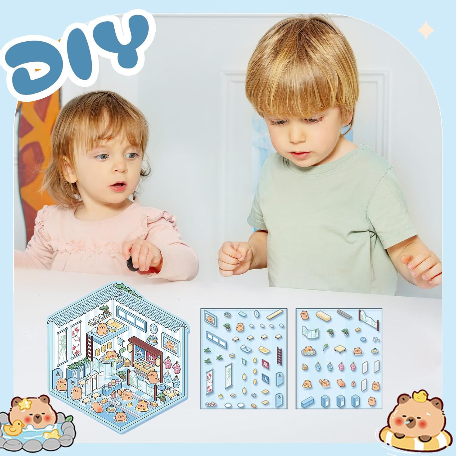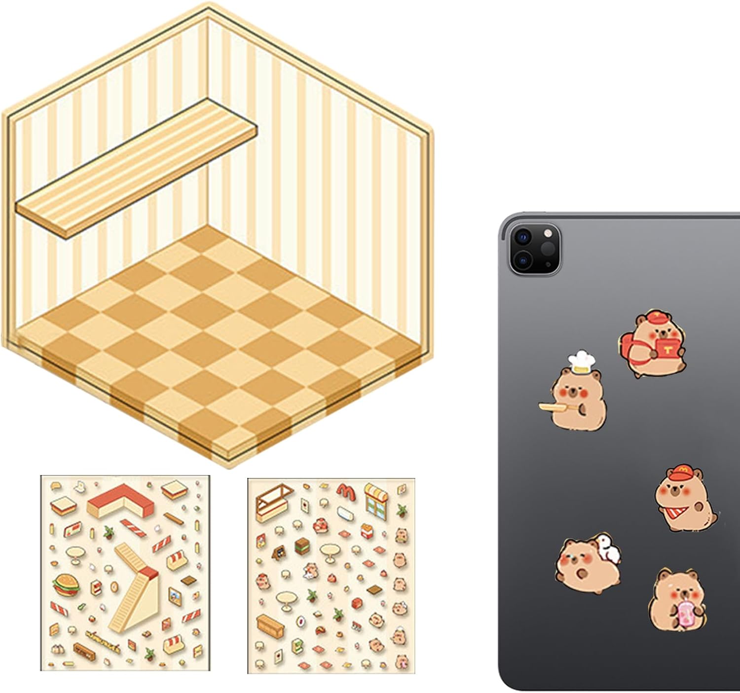 Ottimo regalo: ideale come regalo, offre un'esperienza emozionante, ideale per la festa dei bambini, compleanni o feste; questi adesivi liberano creatività e immaginazione Ampio campo di applicazione: ideali per decorare computer portatili, notebook e custodie per telefoni cellulari, questi adesivi aderiscono notevolmente a qualsiasi superficie liscia, offrendo una vasta gamma di usi Durano a lungo: splendidamente realizzati in resistente materiale PET, questi adesivi in miniatura aderiscono bene, sono facili da strappare e non lasciano segni, migliorando elegantemente qualsiasi superficie Ispira ispirazione creativa: lascia correre la tua immaginazione con gli adesivi in miniatura della scena. Combina, unisci, sovrapponi e progetta le tue scene uniche in base alle tue preferenze e libera il tuo talento artistico con i ricchi elementi creativi forniti Design unico a tema: tra cui fast food Capibara e ristorante termale, questi adesivi in miniatura mostrano uno stile unico con un design a tema unico e portano una ricca ispirazione creativa, offrendo 2 temi tra cui scegliere