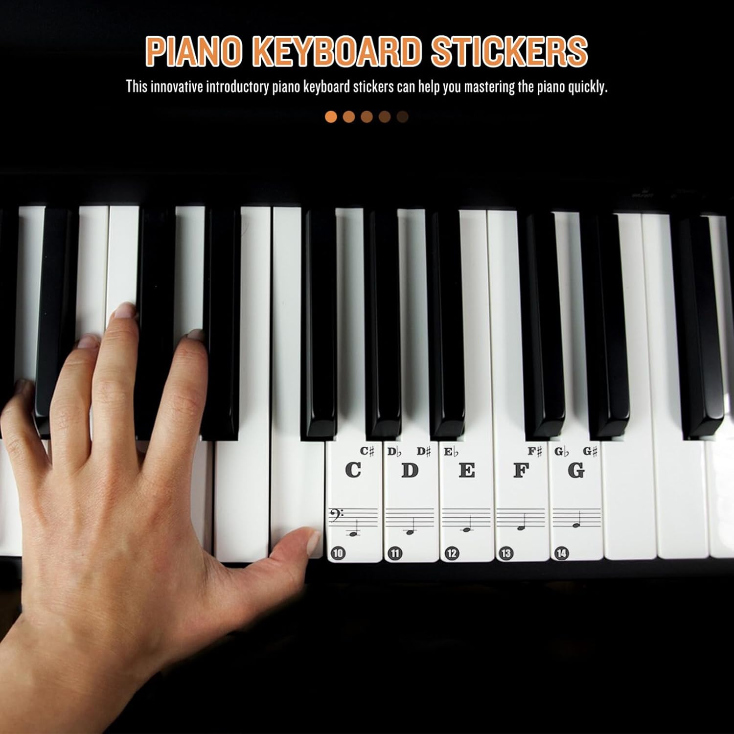 Adesivi per pianoforte per tasti, adesivi per tastiera di pianoforte, lettere, adesivi per pianoforte per imparare, lettere rimovibili per tastiera di pianoforte, etichetta musicale per principianti e bambini. Non rimarranno residui di adesivo sui tasti dopo aver staccato gli adesivi dal pianoforte. Ben realizzato con materiali robusti, sicuri e pratici per un uso prolungato. Pratici adesivi per tastiera di pianoforte, adesivi per tastiera, adesivi per tastiera Puoi imparare rapidamente a suonare il pianoforte con questi innovativi adesivi introduttivi per tastiera di pianoforte. nessuno sbiadimento, antisudore, resistente all'usura, può durare a lungo senza cadere. Adatto a tutti i pianoforti e tastiere. Design professionale e pratico con un bell'aspetto, facile da installare e rimuovere.