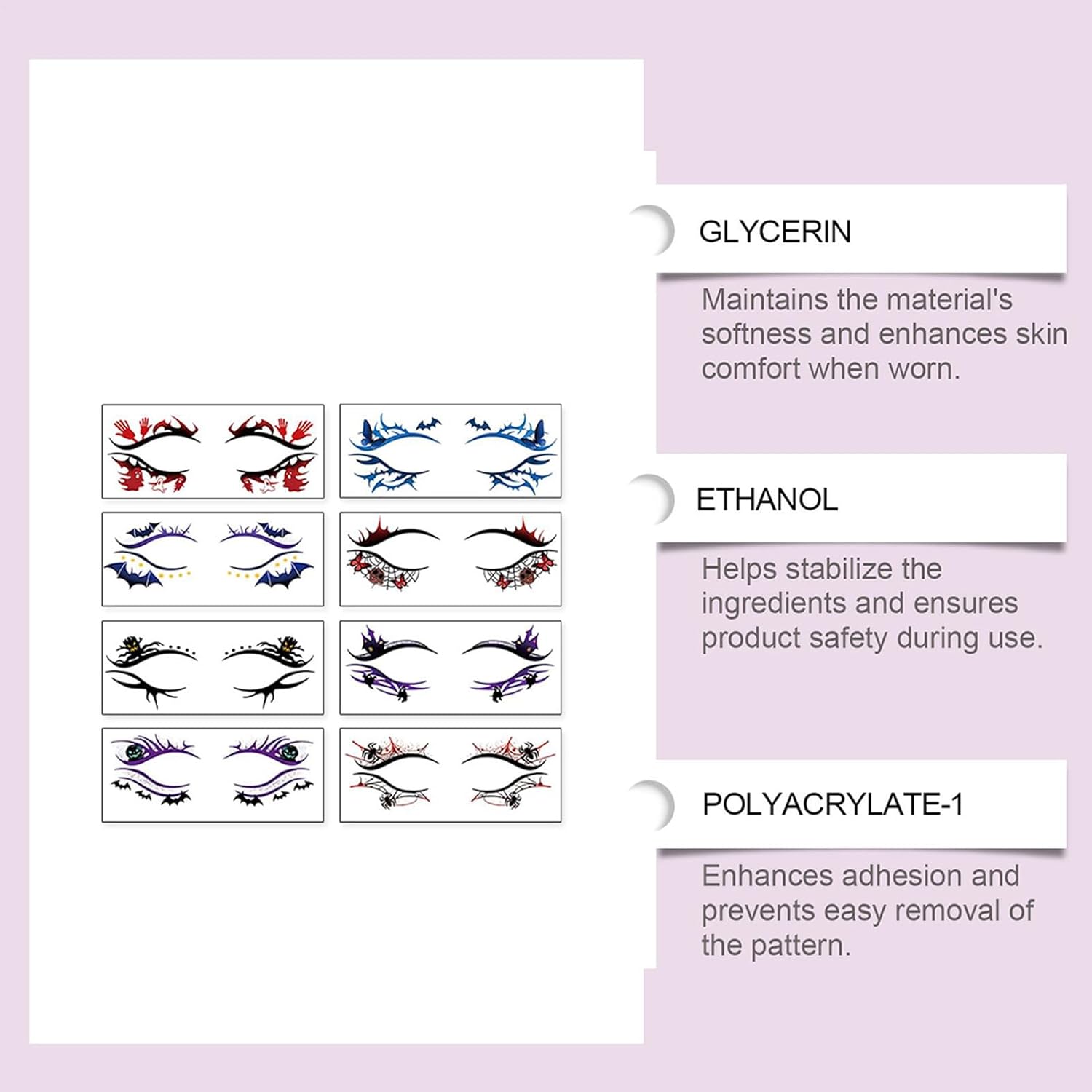 Stampa Alta Definizione Adesivi: Ottieni una finitura impeccabile con gli adesivi per occhi Halloween che presentano decalcomanie con texture realistica e adesione naturale alla pelle, permettendo una applicazione semplice e veloce per un'atmosfera spaventosa e di impatto durante le feste, ideale per trasformare il trucco in occasione di eventi a tema e feste Halloween con dettagli nitidi e duraturi che esaltano il look senza sforzo Soluzioni Creative Portatili: Gli adesivi per occhi di Halloween forniscono una gamma di design per uso multi-scenario, integrandosi perfettamente con altri per completare qualsiasi look a feste, festival o sessioni fotografiche. Compatti e facili da trasportare, assicurano un carry effortless ovunque, ideali per esprimere creatività in modo pratico e stilistico. La loro versatilità li rende adatti a occasioni diverse, offrendo soluzioni creative e portatili per un impatto visivo immed Potenziamento Trucco : Gli adesivi per il trucco di Halloween contengono di trucco drammatici e pattern scuri audaci che migliorano il riconoscimento del personaggio. Consentono agli utenti di creare facce accattivanti perfette per raduni notturni e occasioni tematiche senza sforzo. Questi adesivi facilitano la creazione di un look di impatto, ideale per feste serali e eventi a tema, rendendo il trucco semplice ed per un aspetto standout. Strumento Trasformazione Rapida: Gli adesivi per occhi Halloween uniscono la funzionalità di per feste a tema con effetti di trucco visivamente impressionanti, offrendo cambi di stile veloci e mettendo in risalto classici di Halloween, garantendo che tu spicchi in qualsiasi ambiente festivo o ispirato a costumi, con una applicazione semplice e adattabile Applicazione Senza Sforzo: Il design innovativo degli adesivi per occhi Halloween garantisce un'applicazione e rimozione effortless senza tracce di trucco; sicuri per pelli sensibili e realizzati in materiale leggero, supportano cambi rapidi per esigenze dinamiche di costume a eventi o celebrazioni, offrendo praticità e affidabilità in situazioni veloci e creative.