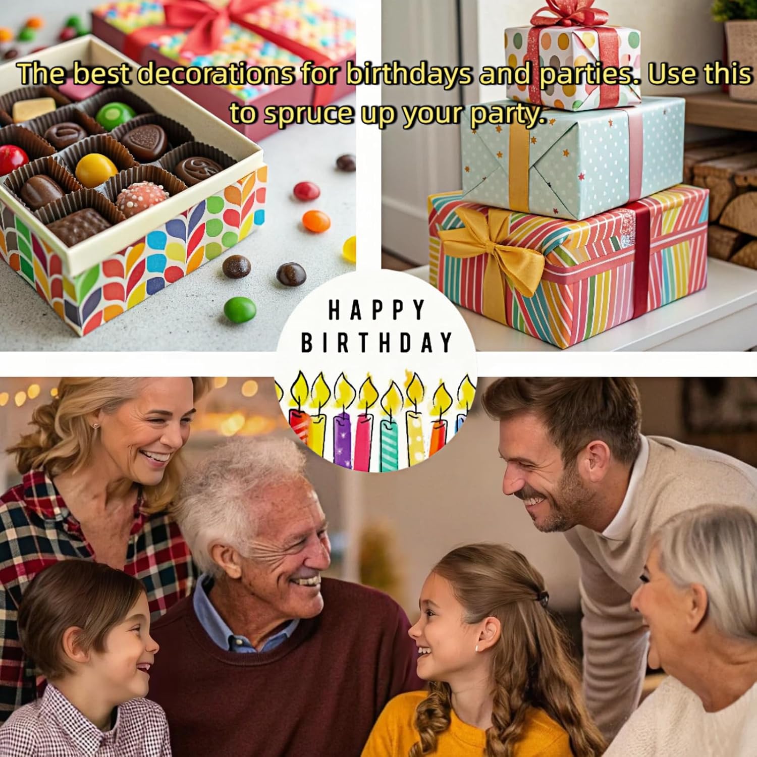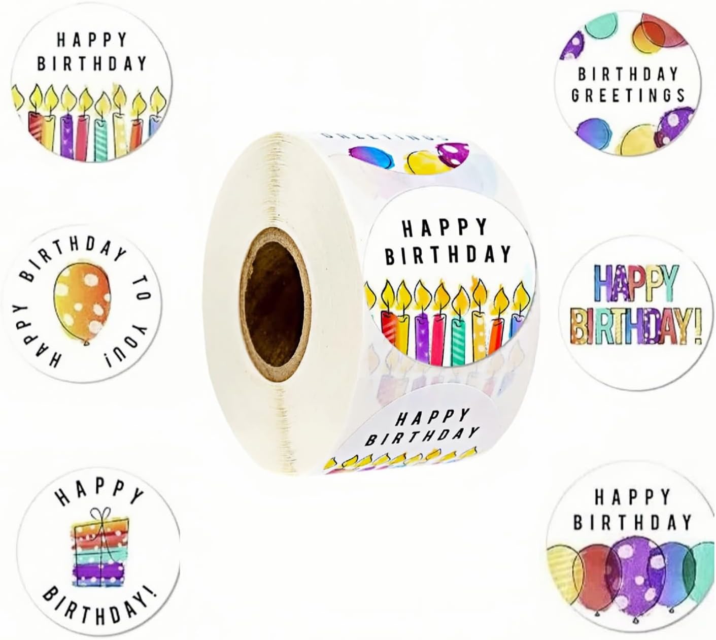 Design unico: un rotolo di 500 adesivi con 6 diversi motivi a tema di compleanno, per soddisfare notevolmente le esigenze di diversi temi di compleanno o feste. Modelli luminosi e colorati: questi adesivi decorativi di buon compleanno sono stampati con inchiostro luminoso e colorato, palloncini, torte di compleanno e candele con "Happy Birthday", "Wishing you a happy birthday" e "Birthday wishes", che possono darti una sensazione di felicità, calore e gioia, facendoti avere una festa di compleanno indimenticabile. Materiale di alta qualità: i nostri adesivi per compleanno sono realizzati con adesivi lucidi e colla di alta qualità e sono autoadesivi con elevata adesività. Facile da usare: i nostri adesivi per etichette Happy Birthday sono realizzati in carta patinata di alta qualità e materiali laminati. Può essere facilmente staccato dalla carta di supporto e aderisce saldamente a qualsiasi superficie, come scatole regalo, scatole di carta, scatole di plastica, buste, carte, cartone, bicchieri di carta, vetro o metallo. Multifunzionale: puoi attaccare questi adesivi per feste di buon compleanno su viso, braccia, fronte, vestiti o qualsiasi altro luogo per migliorare l'atmosfera della festa; puoi attaccare questi adesivi di ringraziamento di buon compleanno su torte fatte a mano o altri piccoli regali fuori dagli schemi per festeggiare l'arrivo del neonato; puoi anche utilizzare questi adesivi di buon compleanno per mettere il tuo nome sui biglietti sul calendario e avvisare i tuoi studenti, amici, familiari o colleghi dei loro compleanni.