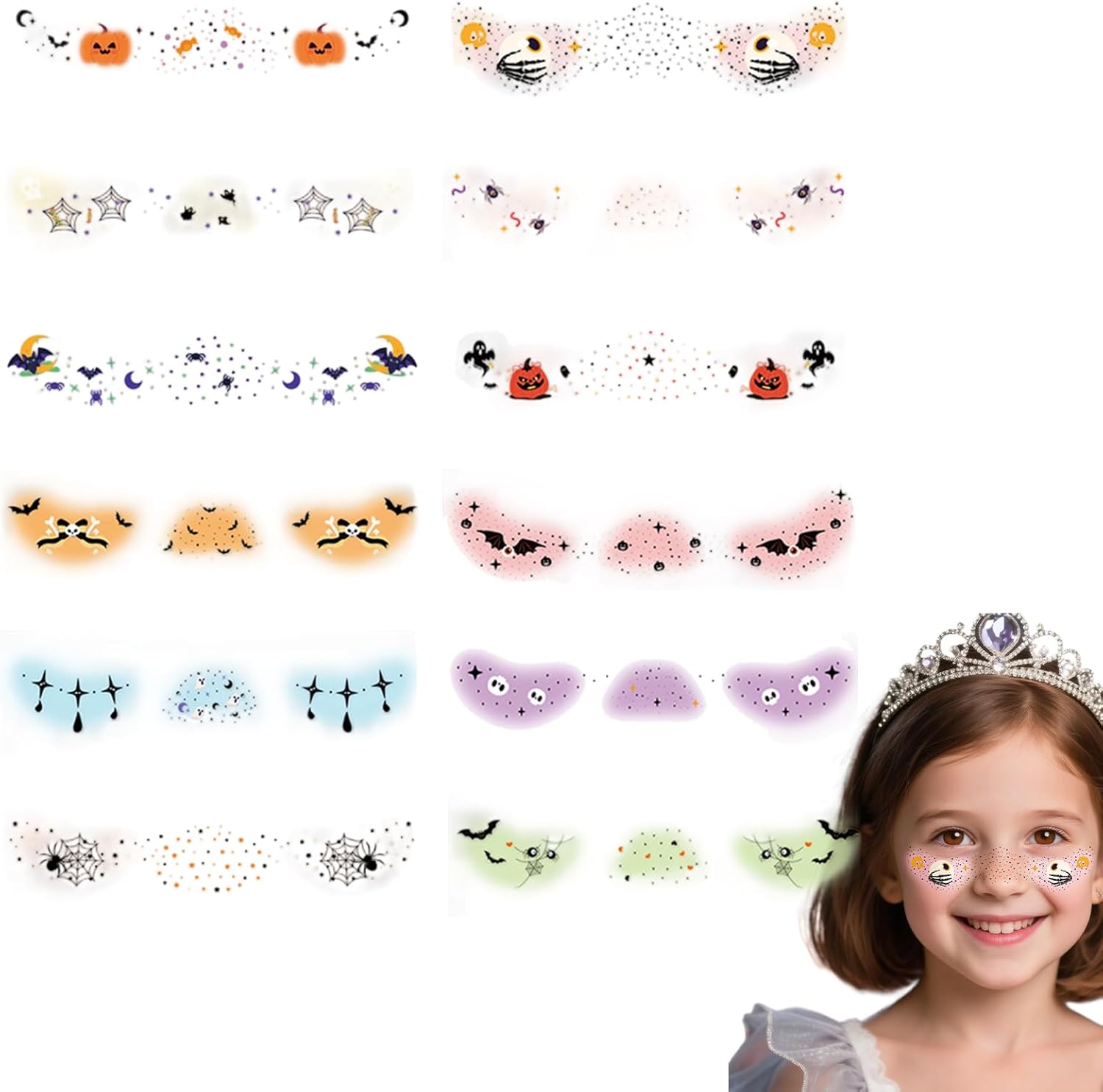 Strato adesivo biocompatibile: Tecnologia adesiva sicura con materiali testati per prevenire irritazioni, perfetta per utilizzi lunghi senza reazioni cutanee o disagi Trasformazione rapida:Semplifica la trasformazione del costume con adesivi facciali a trasferimento rapido a umido, applicazione istantanea senza attrezzi ed effetto naturale realistico che dura tutta la serata Design Misteriosi: Adesivi con motivi intriganti che un effetto sorprendente, perfettamente adattabili a viso, collo e braccia. Personalizza in modo flessibile il tuo costume Halloween con decorazioni facili da applicare e rimuovere. Multi Funzione: Valorizzano costumi in eventi Halloween cosplay scolastici e feste a tema con il loro fascino gotico adatto a diverse ambientazioni festive Decorazione Tematica: Adesivi viso Halloween con zucche pipistrelli che un'atmosfera paurosa perfetta per la festa, esaltando l'aspetto di qualsiasi costume in modo creativo e coinvolgente.