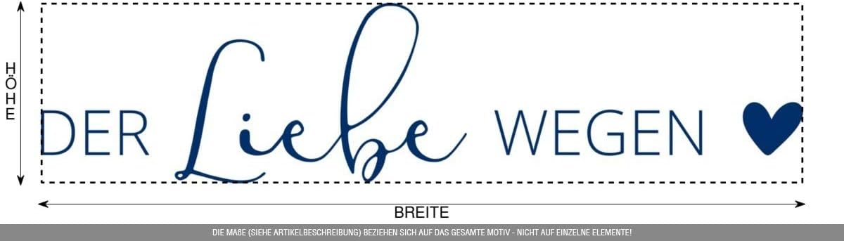 Motivo adesivo "Because of love", pellicola ad alte prestazioni metallizzata Oracal 951 blu notte, pellicola in PVC colato, lucida, autoadesiva, resistente alle intemperie e all'acqua di mare, lavabile, con resistenza alle alte temperature, durata: 10 anni Larghezza: 60,0 cm, altezza: 14,3 cm (si riferisce sempre all'intero motivo e non ai singoli elementi), adesivo nel colore metallizzato blu notte, qualità, design e copyright CLICKANDPRINT.DE Der Liebe a causa di / cuore / amore / matrimonio / coppia / vita / matrimonio / scritta / adesivo decorativo / adesivo per auto / adesivo / decalcomania / adesivo per auto / adesivo / vinile / PVC Realizzato individualmente per voi in Germania, realizzato con pellicola di alta qualità per la decorazione e il design di una vasta gamma di superfici come pareti, carta da parati e molto altro ancora. Adattamenti individuali (nome ecc.) possibili su richiesta! Motivo sagomato, autoportante senza sfondo - fornito con pellicola di trasferimento per una facile installazione e istruzioni di applicazione originali di CLICKANDPRINT.DE! Autoadesiva in tanti colori brillanti, con vari effetti, resistente agli agenti atmosferici e ai raggi UV.