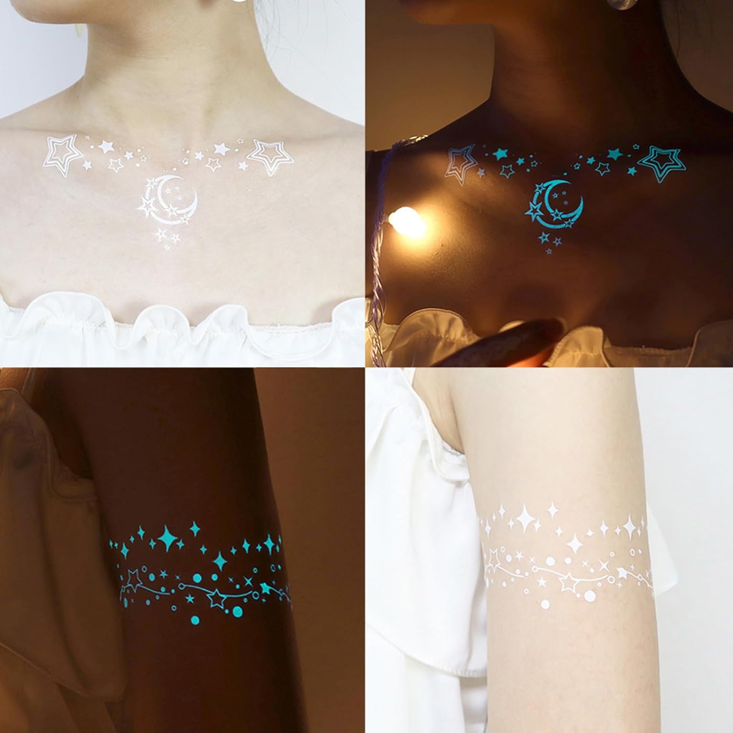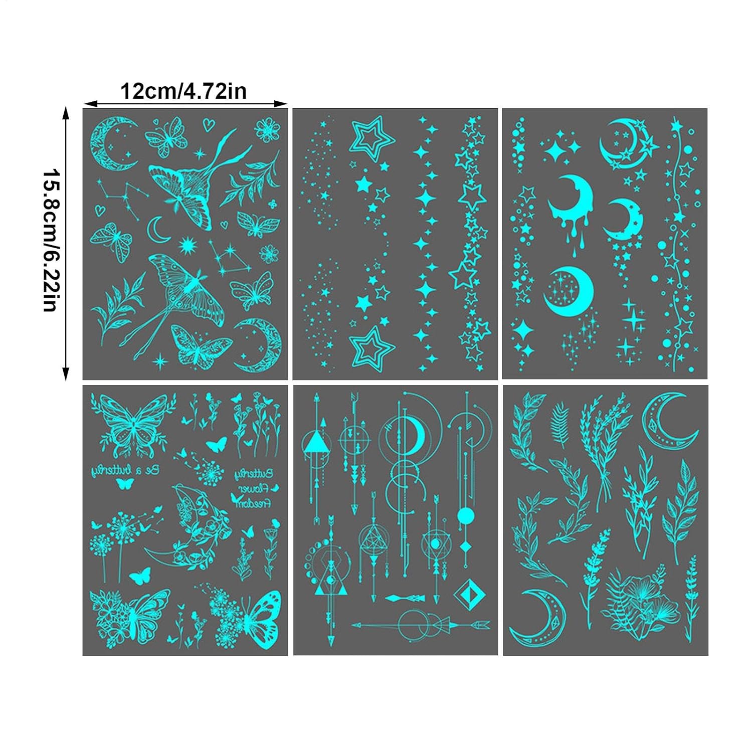 Design luminoso creativo: il design con motivo luminoso impermeabile illumina la tua giornata, stimola la creatività, migliora l'atmosfera della festa ed è ideale per le attività di gruppo. Adesione regolabile: appositamente progettato per diverse superfici, consente la personalizzazione creativa. Adatto sia per scene quotidiane che per feste, aderisce in modo ottimale alle superfici in vetro e agli strumenti. Modelli adesivi precisi: aumenta l'attrattiva estetica attraverso adesivi meticolosamente progettati. Combina effetti naturali e realistici con motivi creativi per un collegamento immediato con la pelle. Applicazioni eleganti: ricaricabile alla luce del sole o alla luce del cellulare per una fluorescenza radiante. Aspetto speciale con una vivace presenza di bagliore su un'ampia varietà di superfici. Design intuitivo: l'adesivo luminoso per il corpo è facile da maneggiare grazie alla funzione di strappo e adesiva, è adatto all'uso con acqua, può essere rimosso senza lasciare residui con olio per bambini e garantisce un forte potere adesivo senza una preparazione approfondita