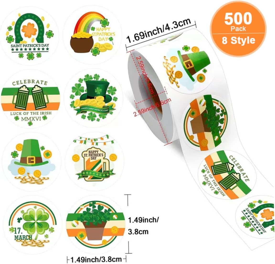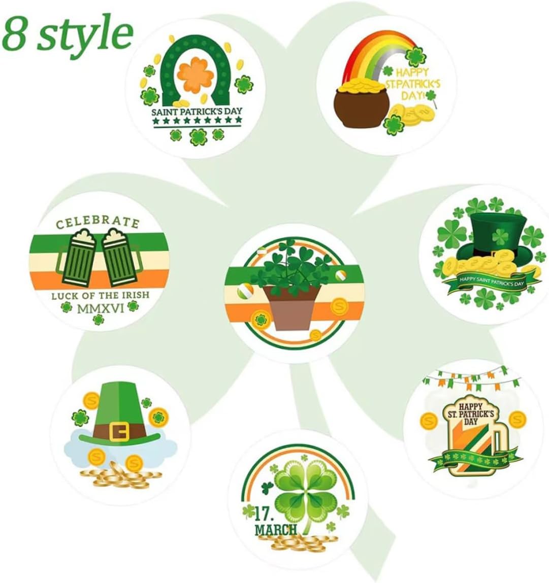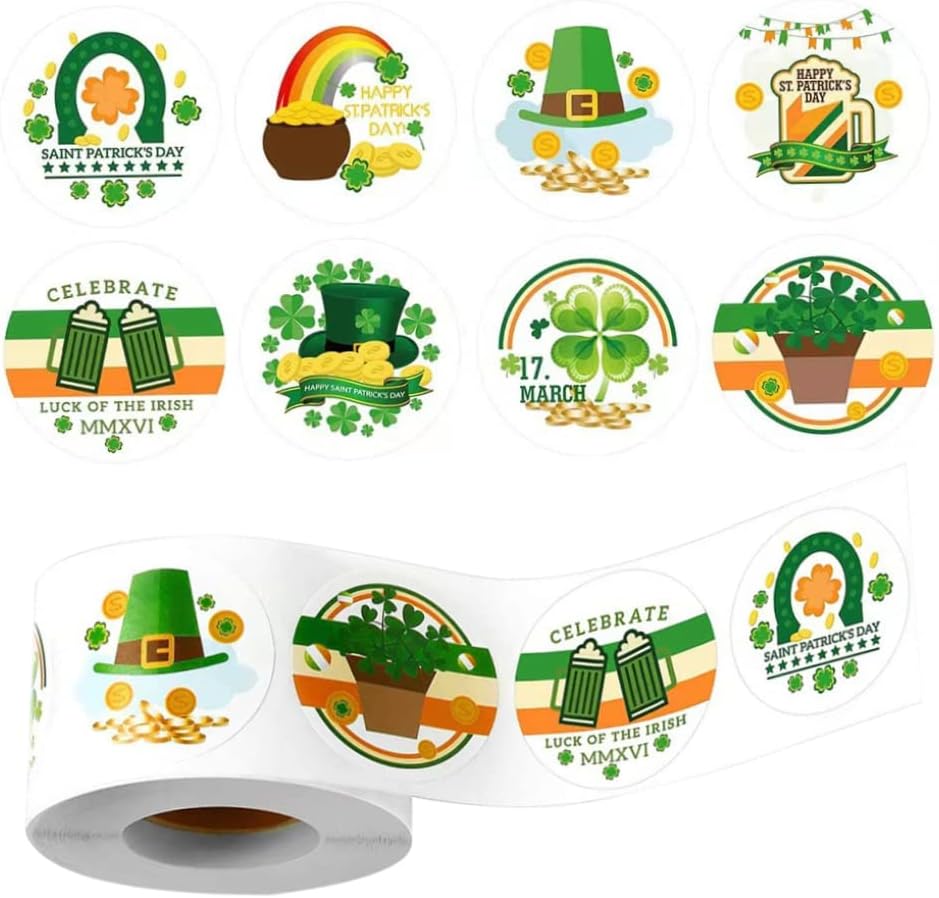 Adesivi decorativi trifoglio: il verde è un colore fortunato per gli irlandesi. Decora questi adesivi verdi con rotoli di trifoglio in quaderni, scatole regalo o biglietti, che sono una buona scelta per il giorno di San Patrizio. Decorazioni per feste irlandesi: questi graziosi adesivi a tema San Patrizio sono carini per le feste di San Patrizio e altri eventi festivi; puoi usarli su biglietti d'invito per feste e scatole regalo per attirare i tuoi ospiti e renderli felici. Ampie applicazioni: questi vari adesivi con piume possono essere applicati per decorare confezioni regalo, biglietti, quaderni, buste, barattoli per conserve, scrapbooking, artigianato, pareti, ecc. per rendere le tue cose più belle e attraenti. Cosa ottieni: totale 500 pezzi per rotolo con un diametro di 1,5 pollici/ 3,8 cm;. Con 8 diversi graziosi disegni di San Patrizio, questi adesivi sono sufficienti per decorare i tuoi regali e cartoline natalizie Etichette adesive autoadesive: le decalcomanie verdi hanno adesivi autoadesivi e facili da incollare.. Quando le rimuovi, non lascerà traccia.