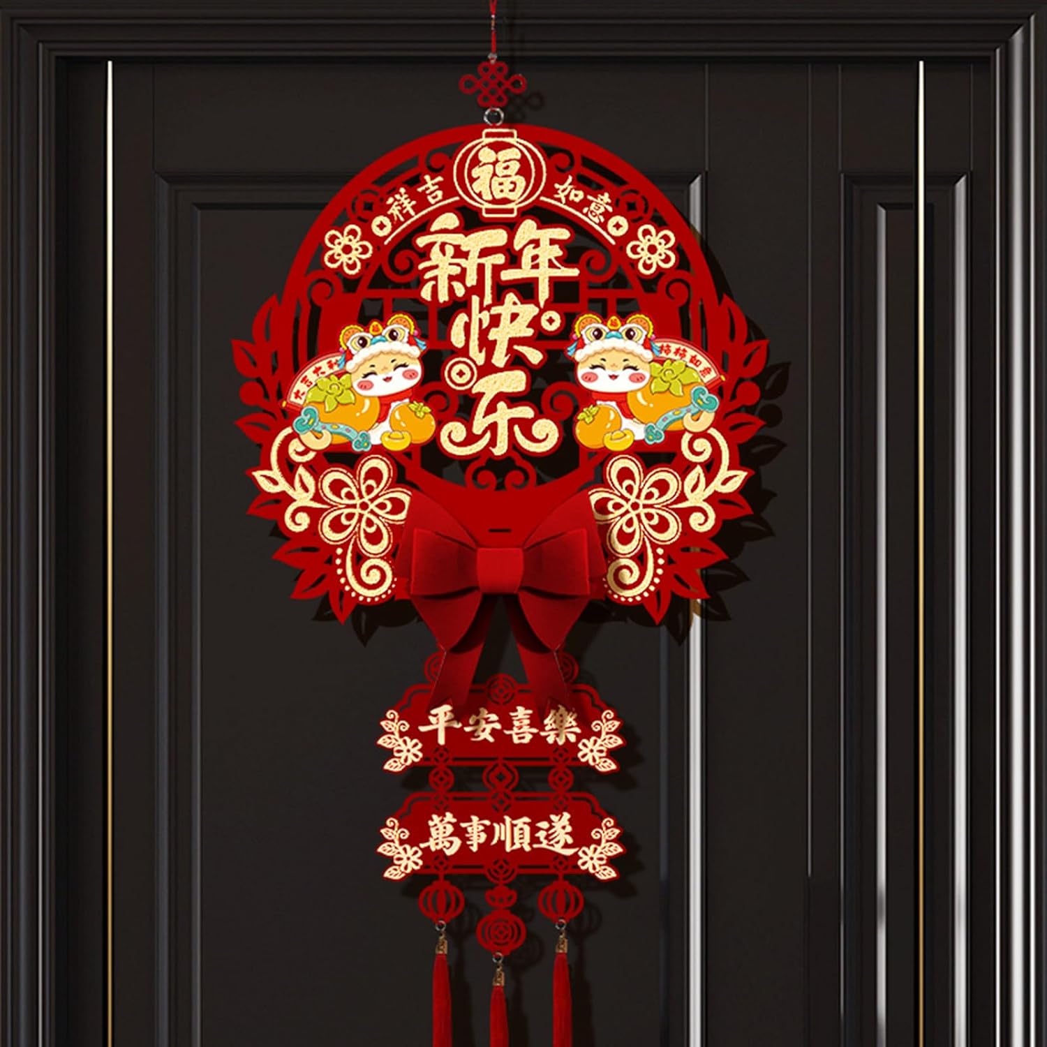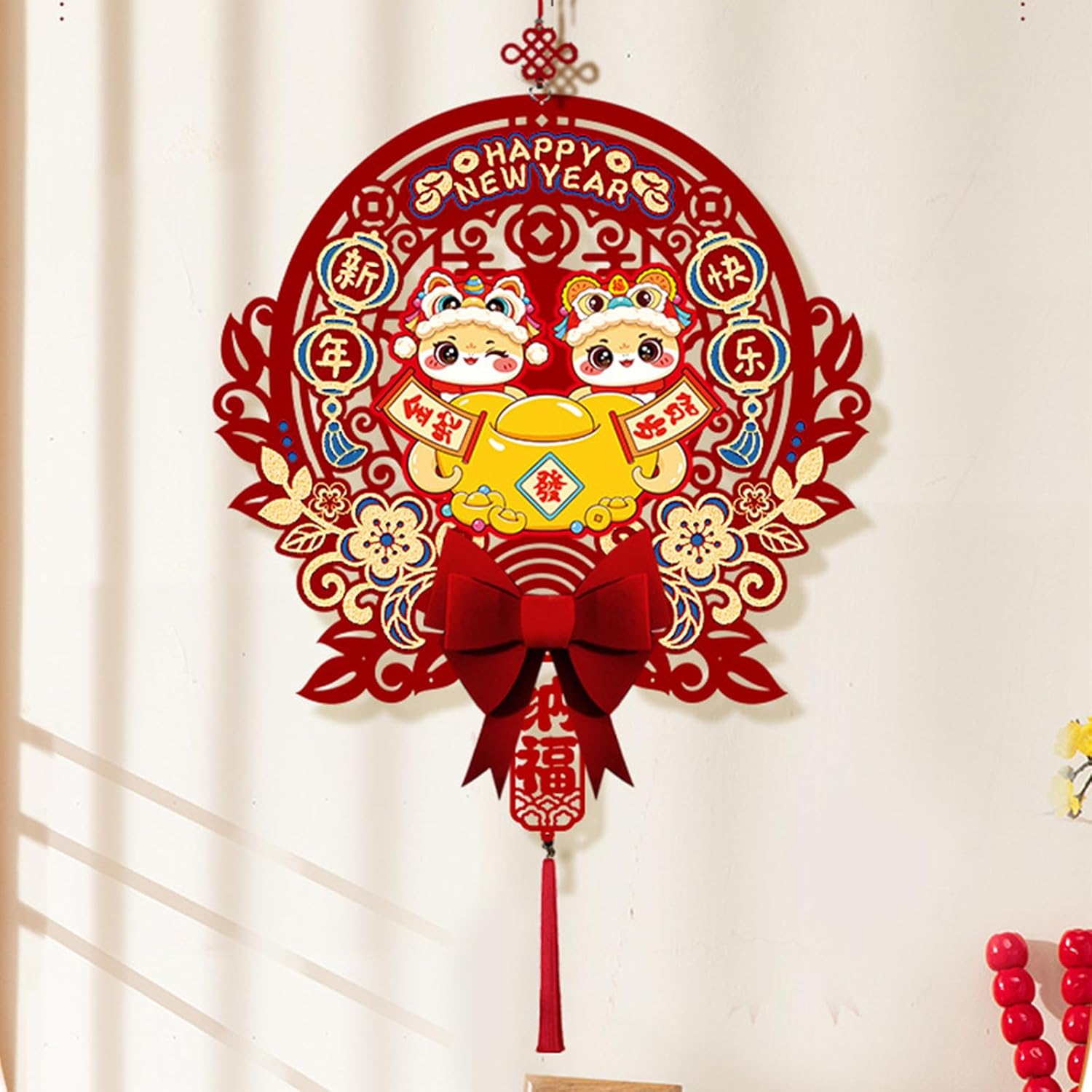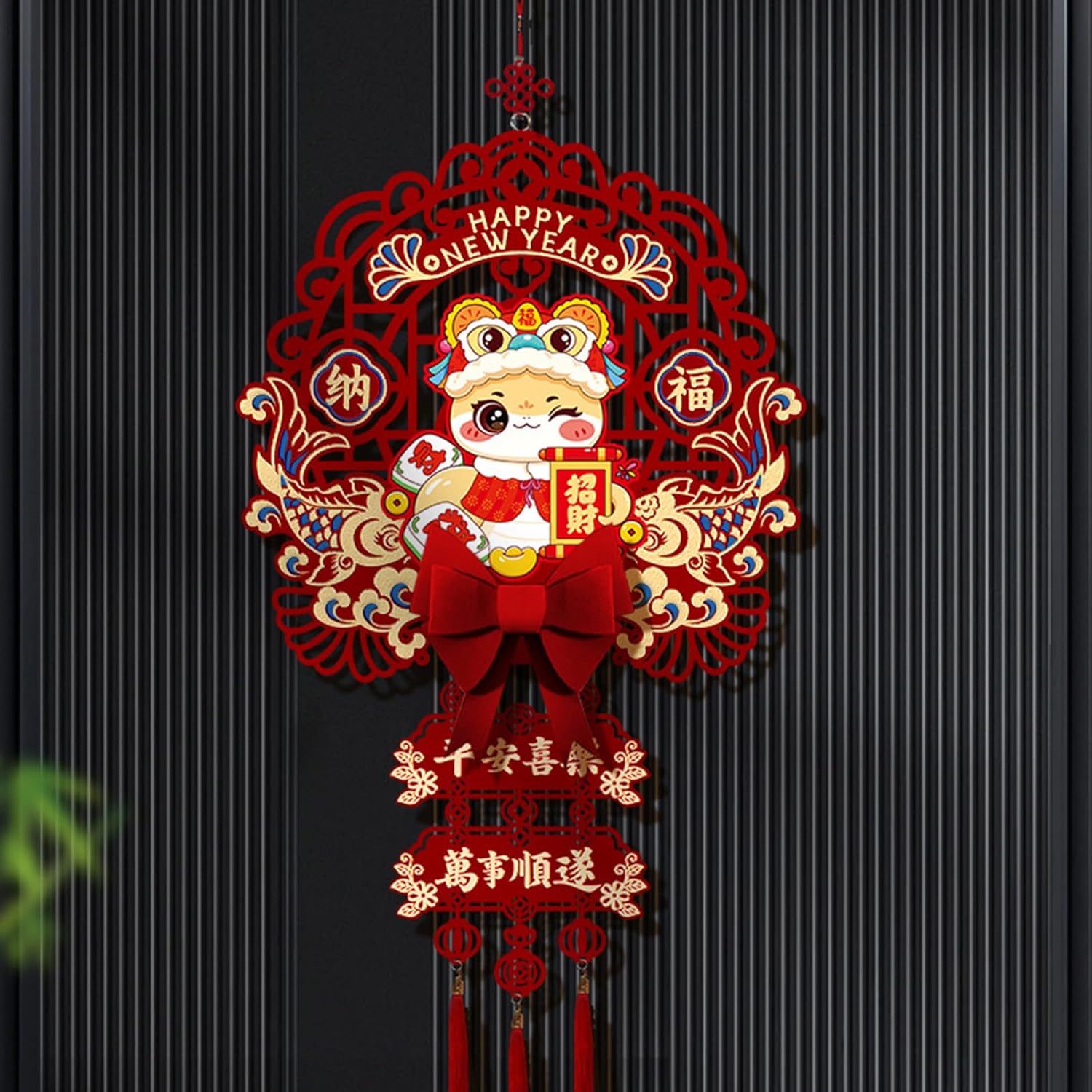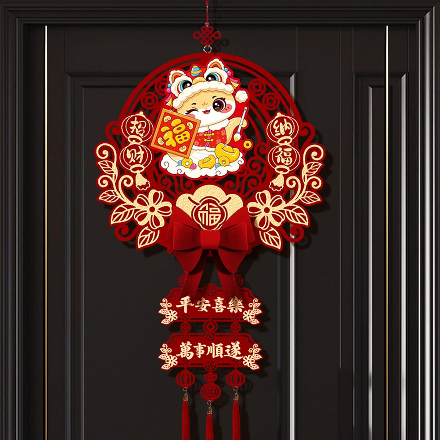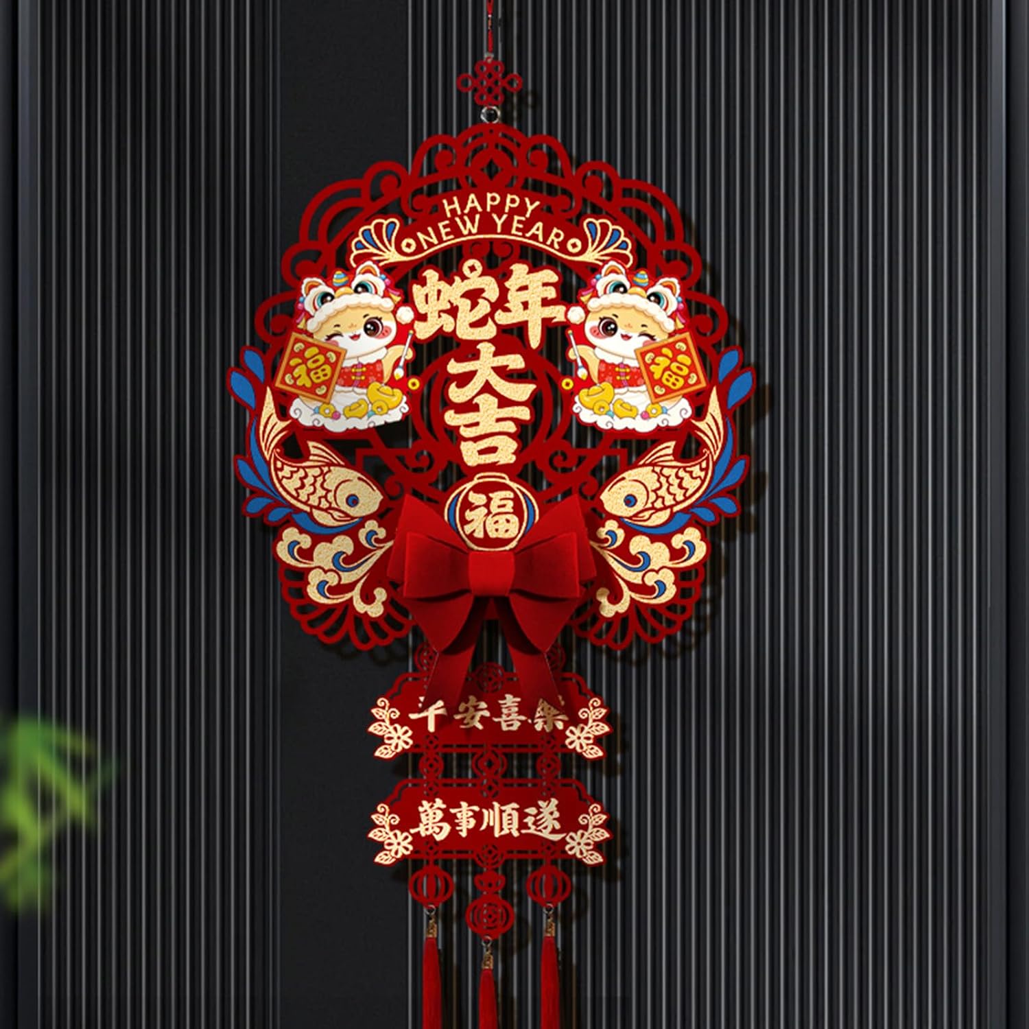 per chi celebra l'anno del serpente, in particolare famiglie e individui che apprezzano l'atmosfera festiva e la cultura tradizionale Realizzato in tessuto di feltro, questo ornamento è resistente allo sbiadimento, presenta un tocco confortevole Questa decorazione può essere facilmente appesa a porte, finestre o pareti, rendendola un'aggiunta eccezionale a qualsiasi collezione di decorazioni per feste o vacanze Adatto per decorare case, negozi e ufficio, migliorare riunioni di Capodanno e celebrazioni Festeggia l'anno del serpente con il nostro ornamento da appendere con il nostro personaggio portafortuna 2025, progettato per portare fortuna e un'atmosfera da festival a casa