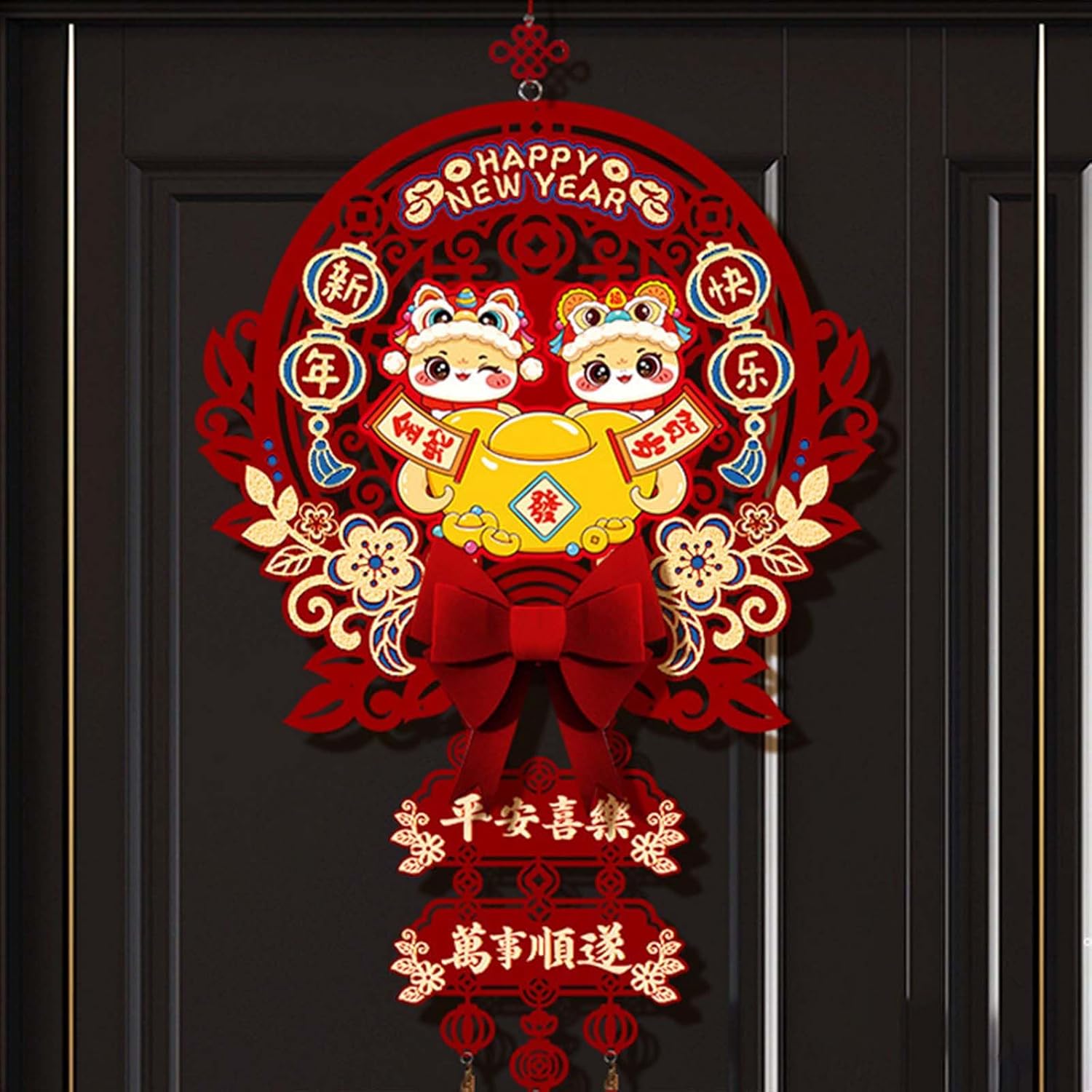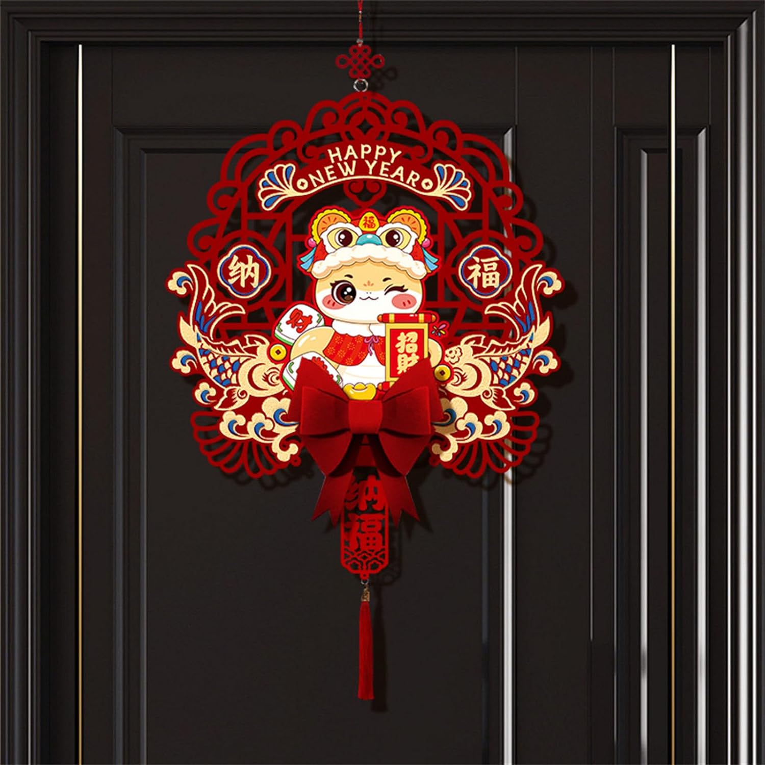 Festeggia l'Anno del Serpente con il nostro ornamento da appendere con personaggio della fortuna 2025, pensato per portare fortuna e un'atmosfera festosa a casa tua Perfetto per chiunque celebri l'Anno del Serpente, in particolare famiglie e individui che apprezzano gli ambienti solidi e la cultura tradizionale Adatto per decorare case, negozi e uffici, migliorando riunioni e celebrazioni di Capodanno Questa decorazione può essere facilmente appesa alla porta, alla finestra o al muro, rendendola un'eccellente aggiunta a qualsiasi collezione di decorazioni per feste o vacanze Questo ornamento realizzato in tessuto di feltro e sbiadito, presenta un tocco confortevole