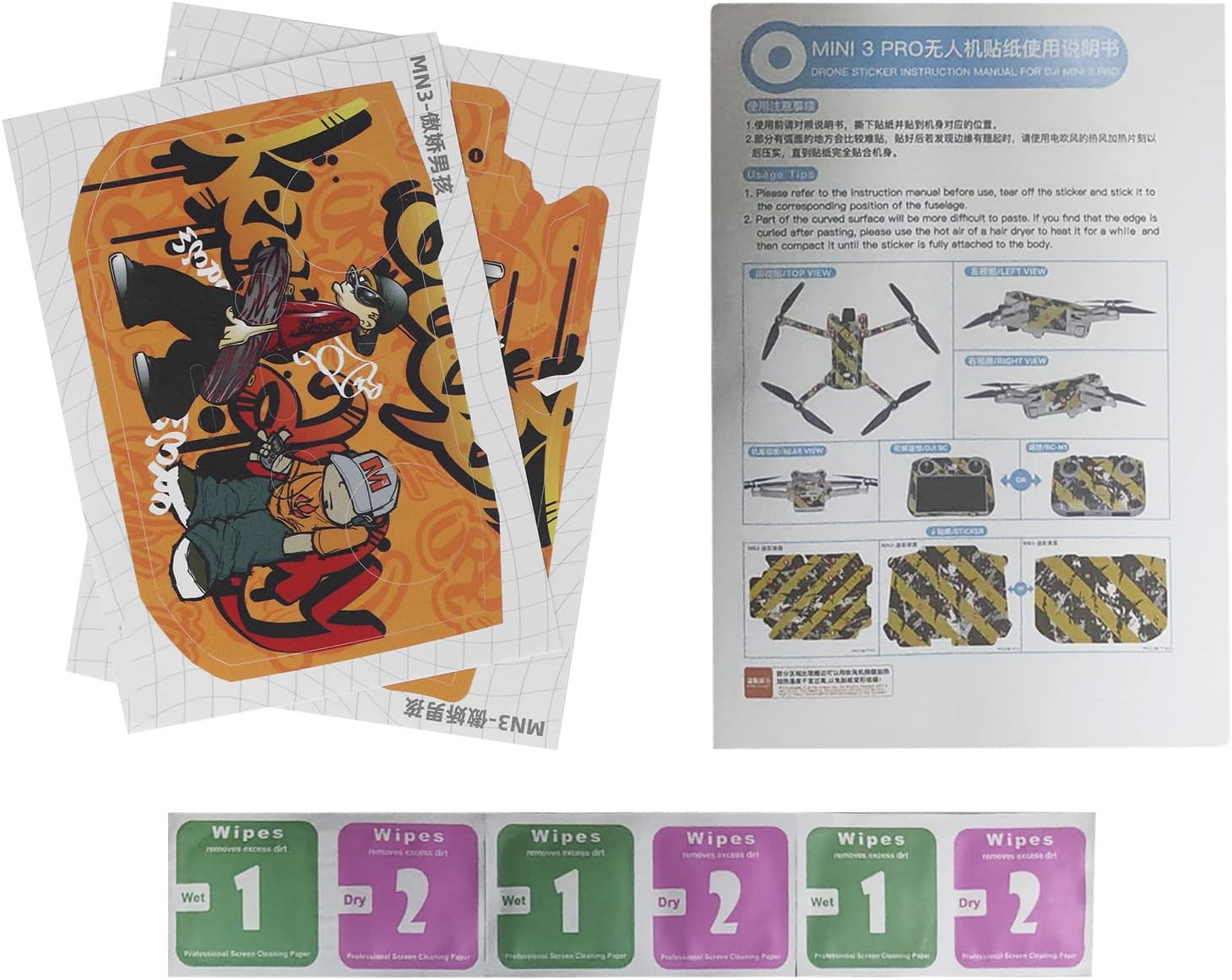 USI MULTIPLI: Questo kit di adesivi per droni non aggiunge un effetto decorativo, ma protegge bene anche il telecomando da graffi e abrasioni. COLORI LUMINOSI: questo adesivo per telecomando ha un motivo stampato luminoso e chiaro che rimane luminoso e non si sbiadisce facilmente facile visualizzazione. DRONE APPLICABILE: set di adesivi decorativi colorati per telecomando drone Mini 3Pro RC, con taglio accurato perfetta aderenza al telecomando. BUONE PRESTAZIONI: gli adesivi rimovibili sono facili da strappare e incollare, senza e possono essere incollati ripetutamente senza lasciare residui viscosi. MATERIALE IN PVC: l'adesivo è realizzato in PVC, che è impermeabile e non facile da umidità, ritardante di e isolamento termico, può essere utilizzato in sicurezza.