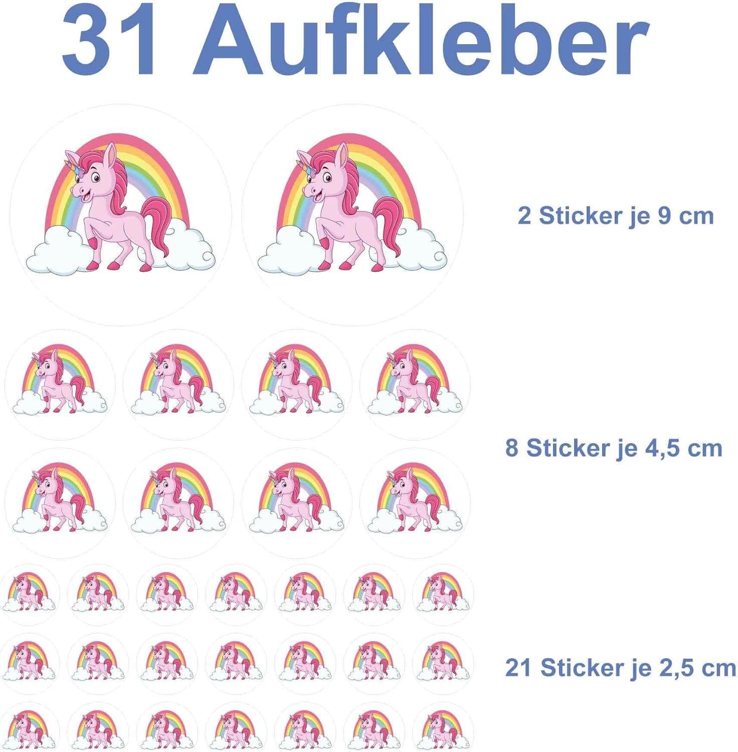 Gli adesivi con unicorno sono adatti come regalo di compleanno per ragazze. L'unicorno può essere incollato in un album di adesivi, un libro di adesivi, ecc. Puoi acquistare gli adesivi con cavalli di alta qualità di Kleberio in diverse dimensioni. Gli adesivi con unicorno sono resistenti alle intemperie, ai raggi UV e adatti per uso interno ed esterno. Su Amazon è possibile trovare un gran numero di adesivi Kleberio (termine di ricerca: adesivi Kleberio).