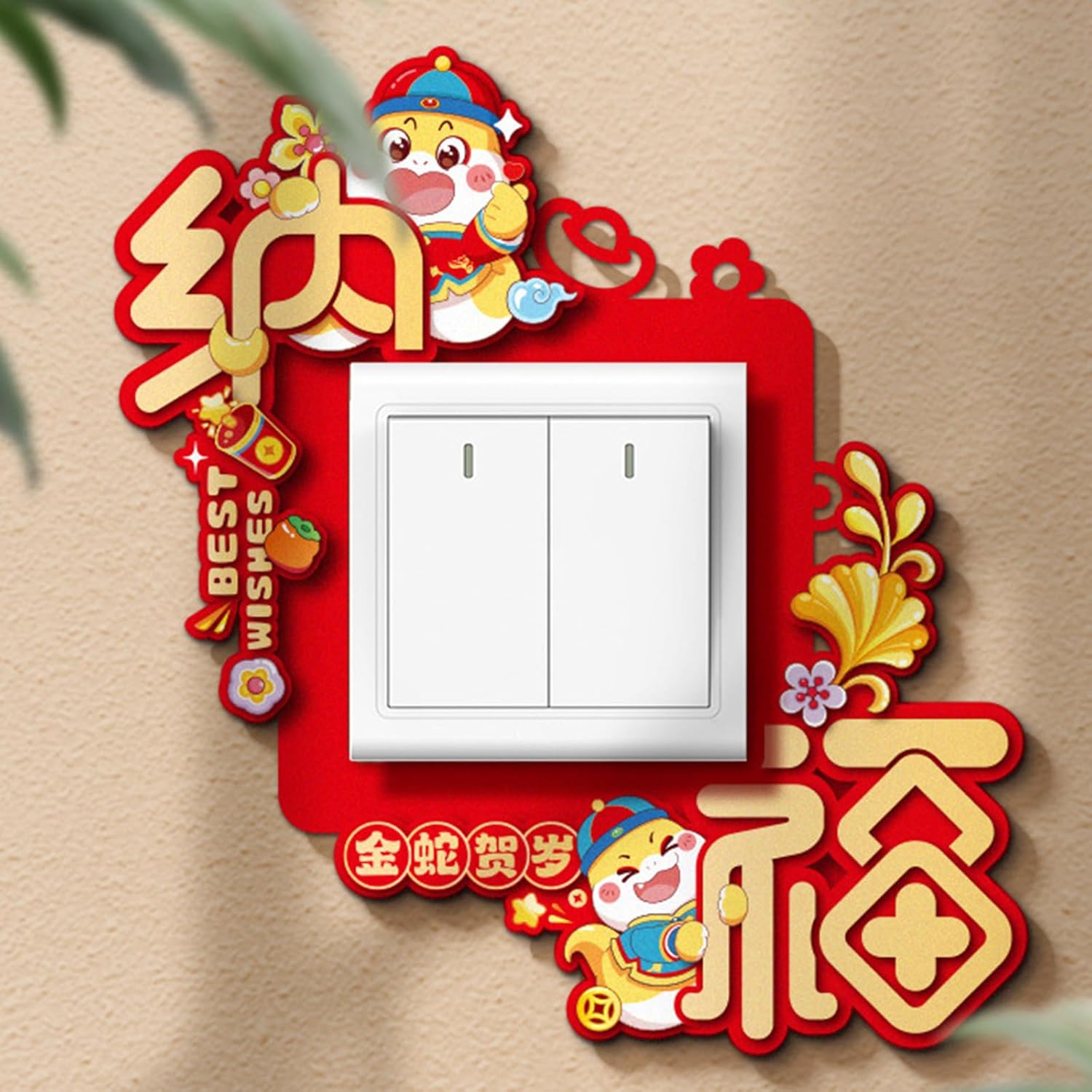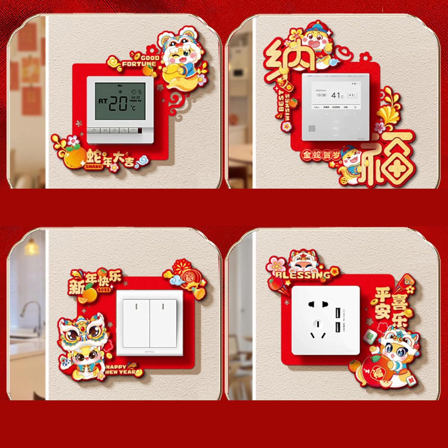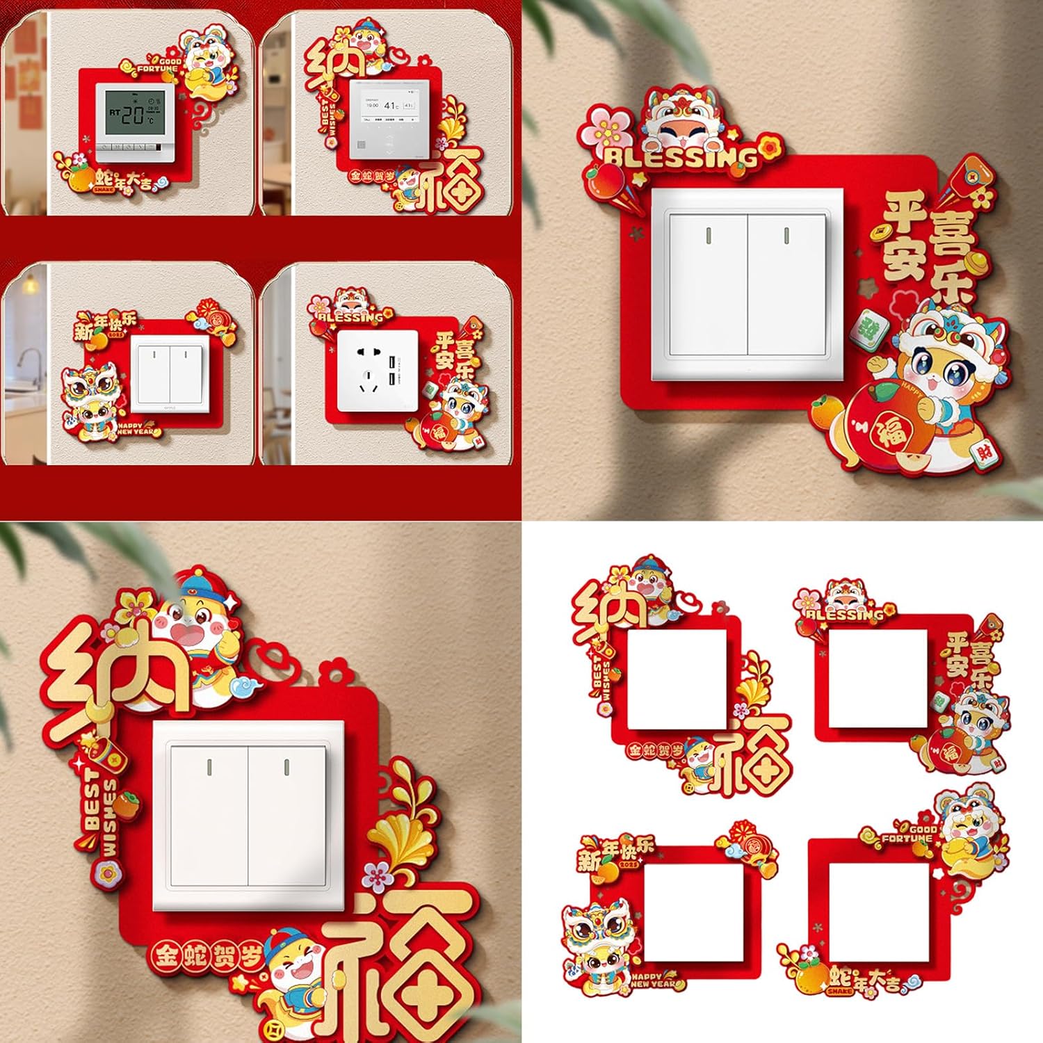 Questi adesivi per commutatori sono perfetti da aggiungere a soggiorni, camere da letto e uffici. Festeggia l'anno del serpente con la nostra decalcomania Switcher per migliorare l'equilibrio del festival e portare fortuna e benedizioni a casa tua. Trasforma senza sforzo la stanza con questo adesivo decorativo da parete e rendilo un'aggiunta essenziale alla tua collezione di casa. Adatto a famiglia, uffici e negozi, soprattutto per coloro che apprezzano la cultura tradizionale e vogliono incorporarla nella propria decorazione. Realizzati in tessuto non tessuto, questi adesivi sono facili da applicare e rimuovere senza lasciare residui, adatti a varie superfici con motivi vivaci.