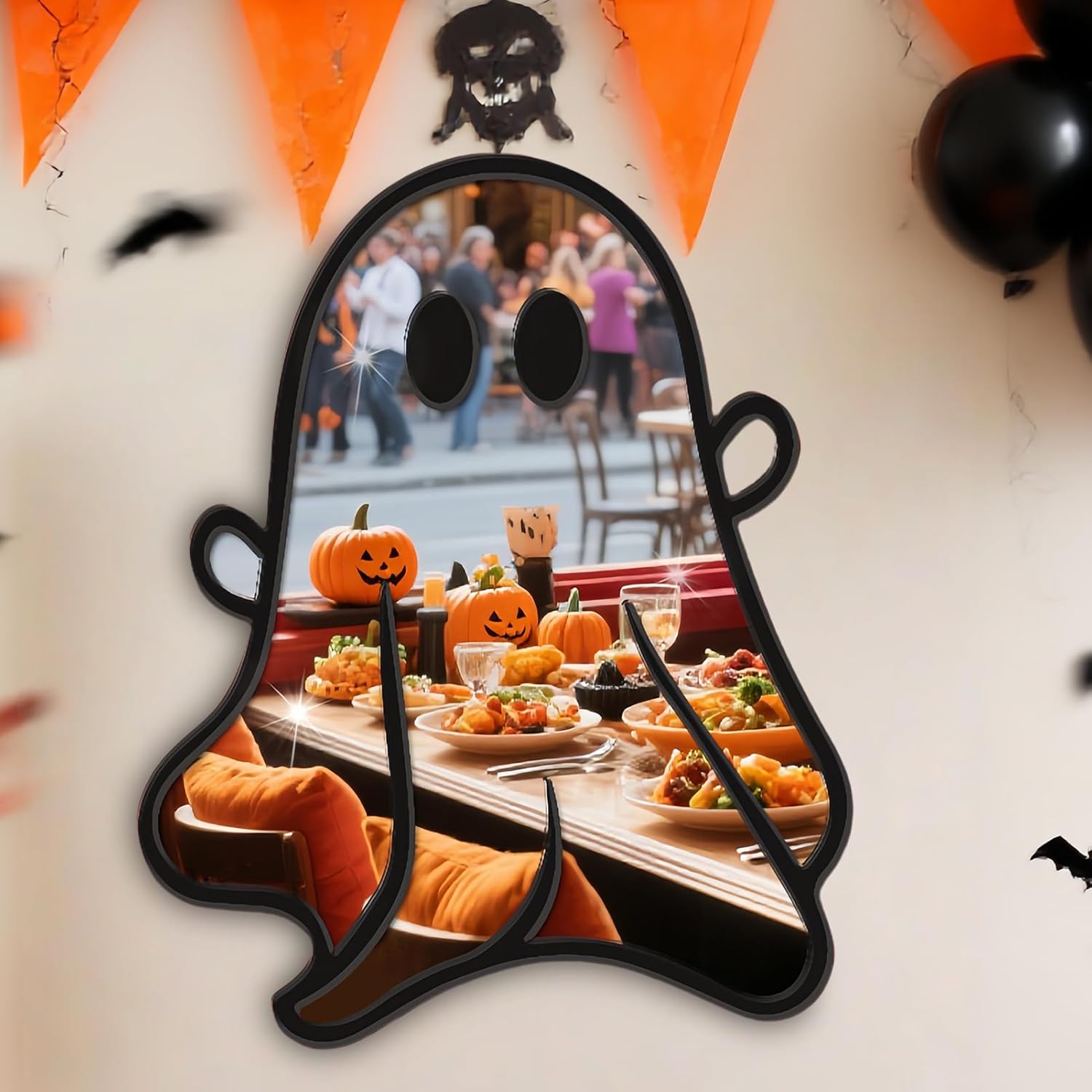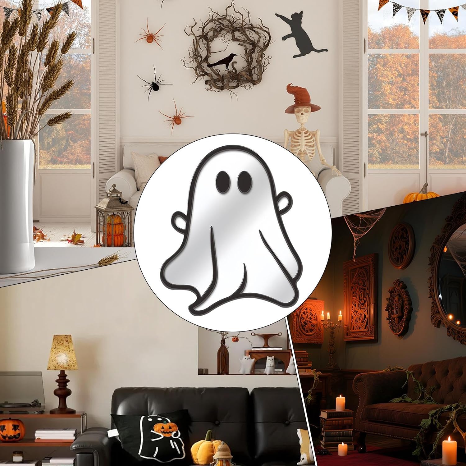 Design illusorio della profondità: utilizza effetti riflettenti a specchio per migliorare la percezione spaziale e riflettere l'ambiente circostante, ottimo per una decorazione di Halloween coinvolgente evidenzia motivi di zucca dettagliati e ragnatele, fornisce un modo semplice per aggiungere mistero ed eccitazione alle feste migliorando organicamente il fascino spettrale generale della tua casa o dell'ambiente dell'evento.