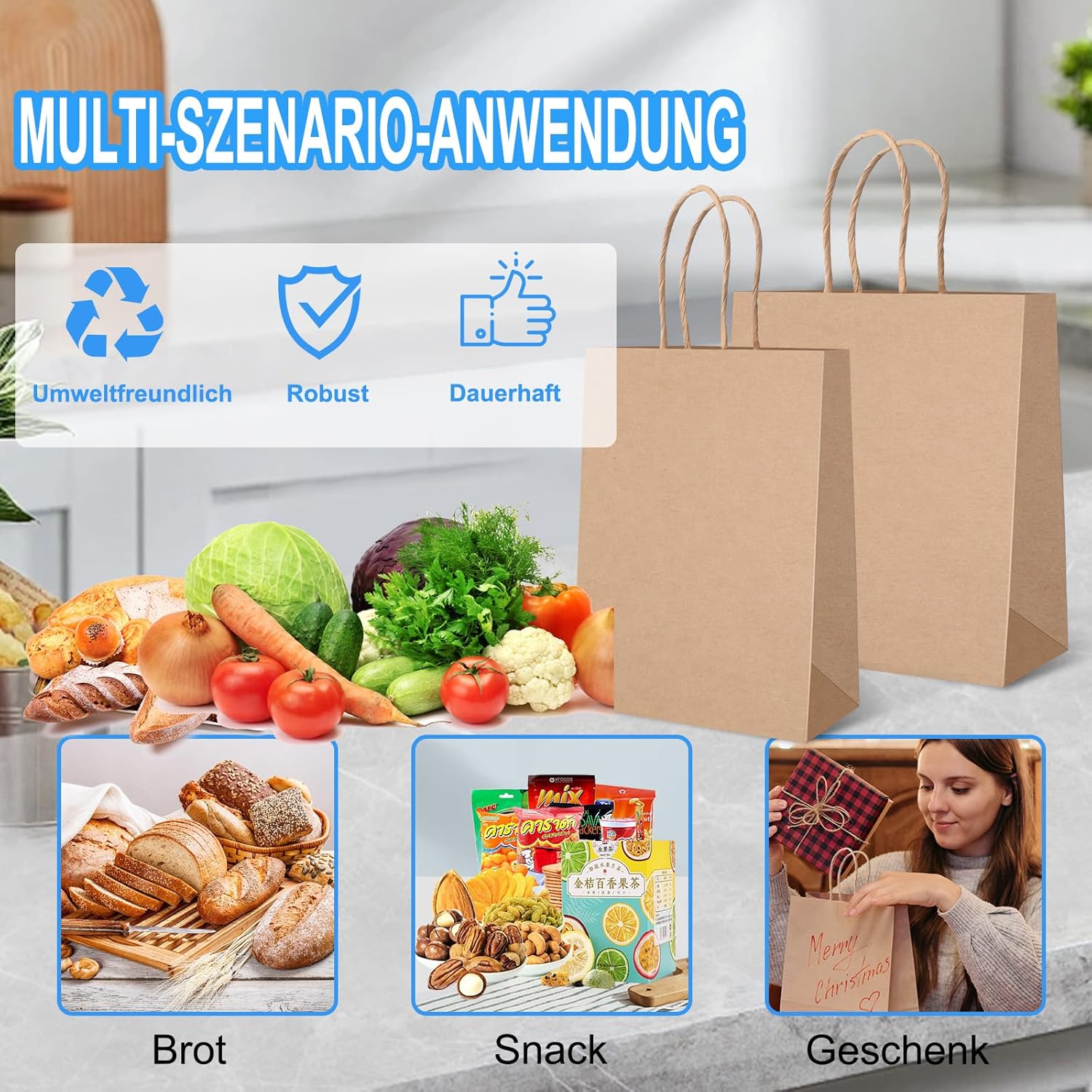 Materiale cartaceo di alta qualità: i sacchetti regalo sono realizzati in carta kraft marrone riciclabile e degradabile, fine e liscia. Privo di sostanze nocive, fornisce una soluzione di imballaggio ecologica per i tuoi regali. Forti e durevoli: i nostri sacchetti di carta kraft sono spessi e robusti, il che significa che non si rompono facilmente. Possono contenere fino a 6 kg, rendendoli perfetti per riporre regali e altri oggetti. Forte legame: il fondo dei sacchetti di carta e le maniglie sono incollati con colla di alta qualità per garantire la massima stabilità. Ciò significa che i tuoi regali rimangono al sicuro e ben confezionati. Design portatile con fune di sollevamento: le borse di carta hanno una comoda maniglia che non si deforma e si adatta comodamente alla mano. Ideale per non costringere le mani quando lo si indossa. Ampia applicazione: questi sacchetti regalo sono perfetti per varie occasioni come feste di compleanno, matrimoni, anniversari e festività. Perfetti da utilizzare come sacchetti regalo per bambini o per contenere dolci e piccole torte.
