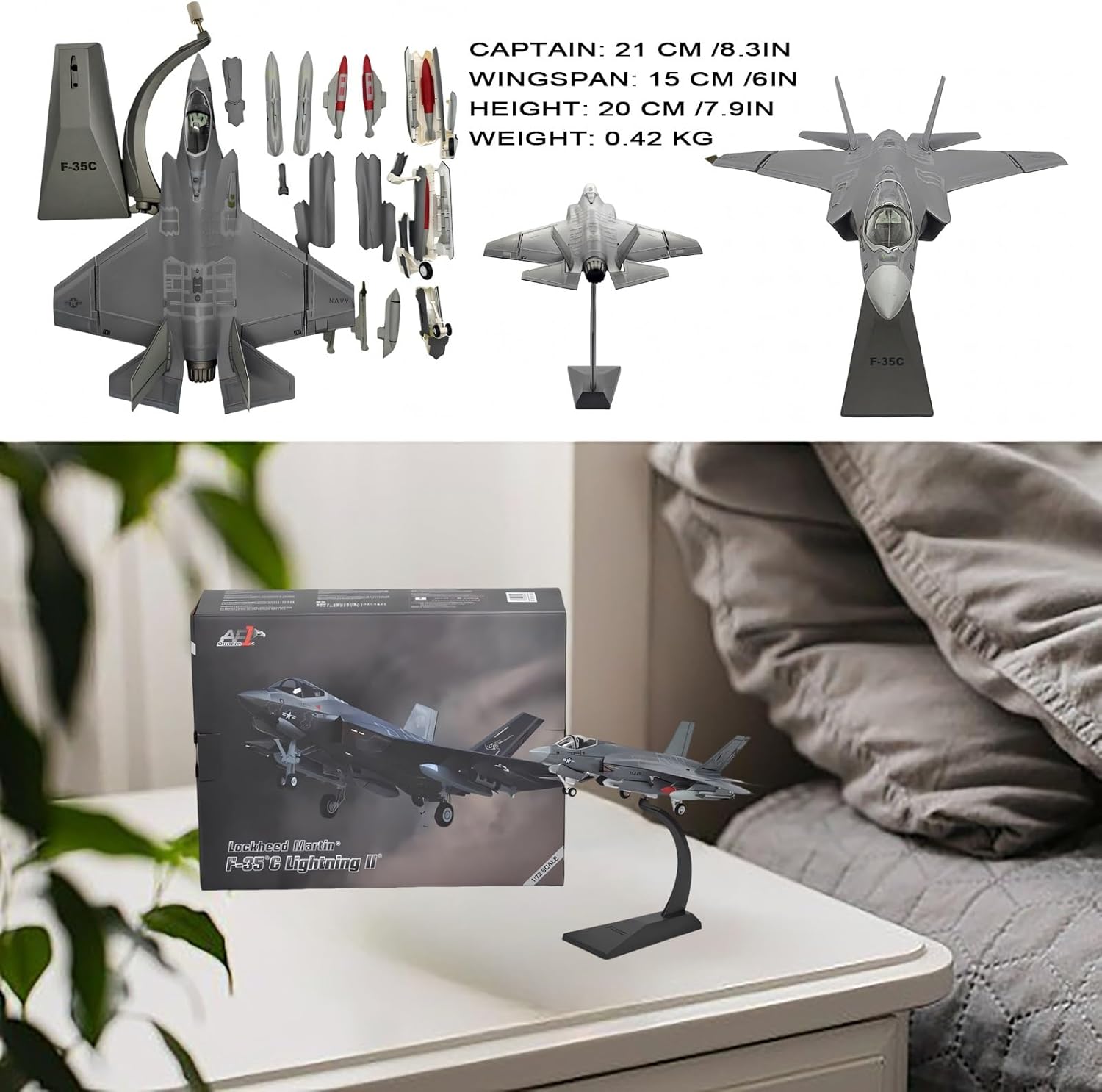 【Replica autentica in scala 1:72】: Realizzato meticolosamente con lega di zinco stampata a CNC, questo modello F-35c Lightning II riproduce il caccia stealth imbarcato della Marina degli Stati Uniti fino ai minimi dettagli, tra cui il carrello di atterraggio realistico e le texture della fusoliera. 【Costruzione in metallo di alta qualità】: realizzata in lega di zinco resistente alla corrosione con vernice multistrato e cottura ad alta temperatura for una finitura antiruggine, ecologica, durevole e inodore. Ali pieghevoli, missili staccabili e un carrello di atterraggio dettagliato consentono display personalizzabili. 【Dettagli visivi straordinari】: presenta un design della coda verticale multicolore, un abitacolo in PVC trasparente for la visione interna e uno scarico a effetto esplosione for un realismo spettacolare. Riproduce fedelmente l'iconica livrea dello squadrone con marcature serigrafate, fusoliera aerodinamica e ugelli del motore in scala, ispirati ai veri progetti dell'F-35c. 【Elegante e pronto for l'esposizione】: include una base in acrilico elegante for un'esposizione sicura, rendendolo ideale for scrivanie, scaffali o espositori a tema aeronautico. 【Confezione regalo completa】 : Spedito in una scatola rigida con imbottitura in schiuma (peso totale: 1,5 kg). Dimensioni: 21 cm (lunghezza x larghezza x altezza) 15 cm (larghezza x altezza). Perfetto for collezionisti, veterani o regali aziendali.