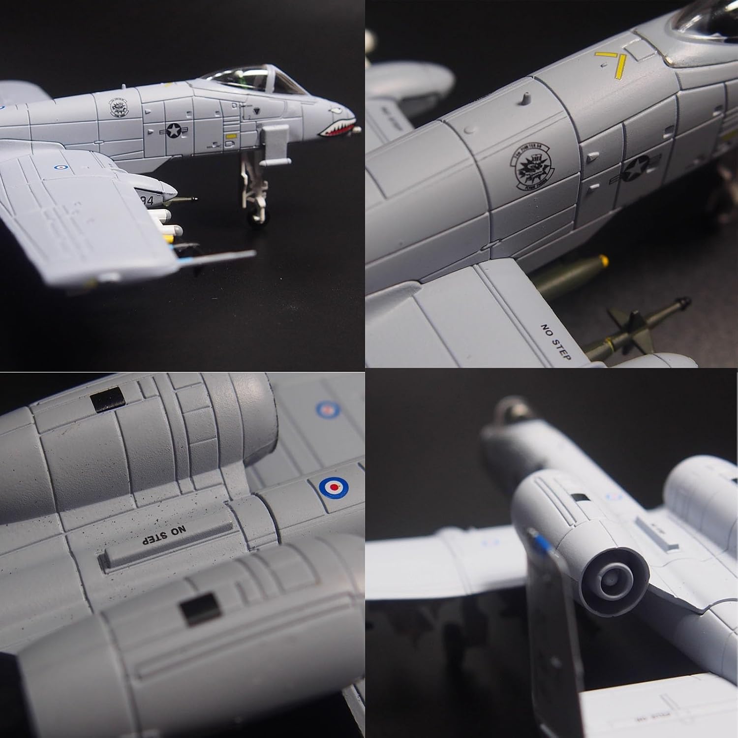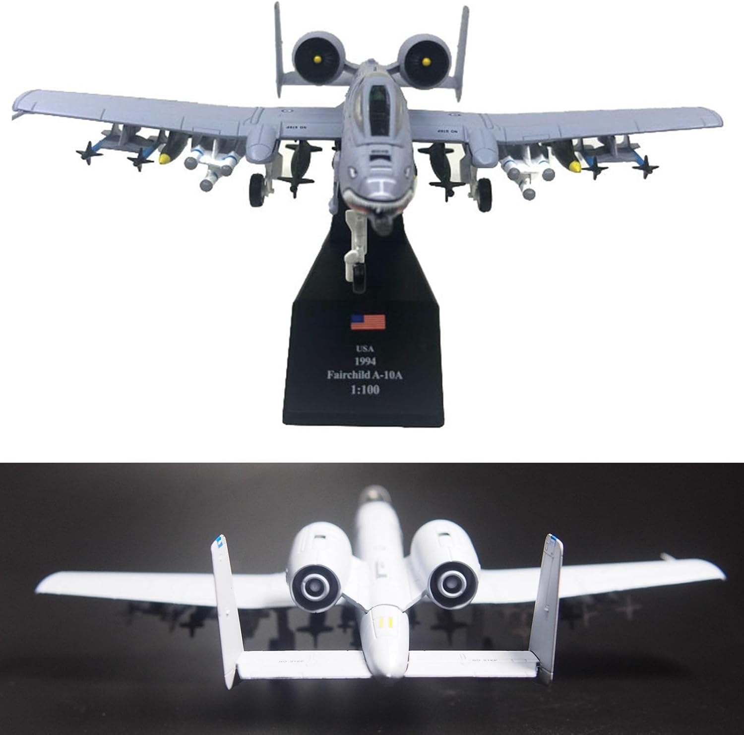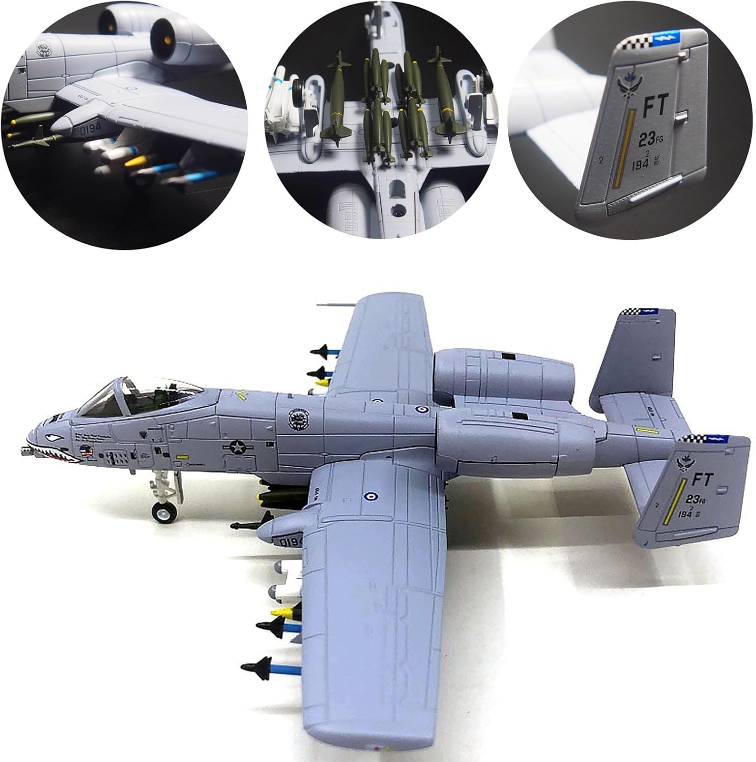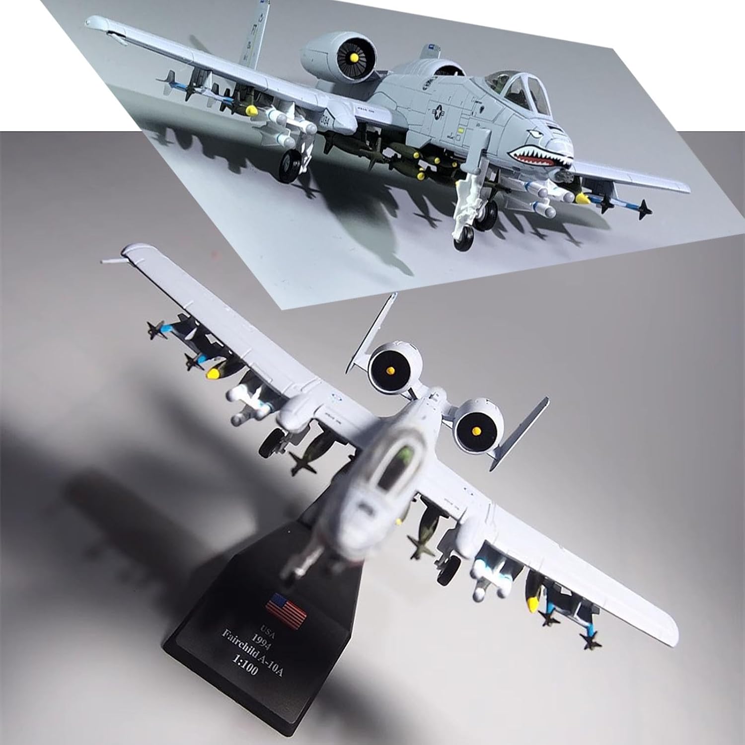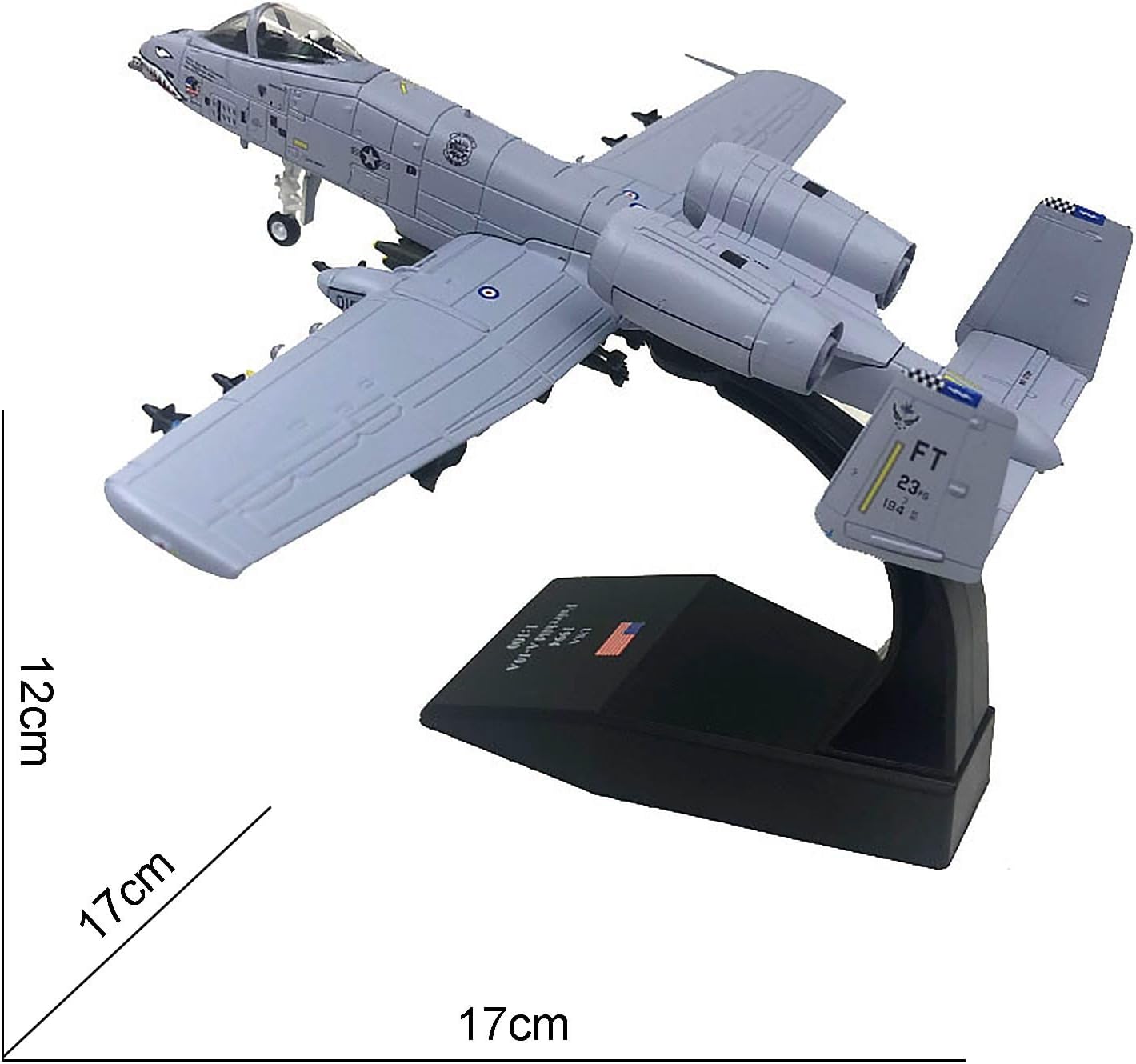 Aereo d'attacco A-10: (soprannominato Warthog o Pig Hog in breve), è un aereo d'attacco bimotore monoposto statunitense. L'aereo d'attacco A-10 è un modello statunitense in servizio attivo, responsabile di compiti di supporto intensivo alle forze di terra, tra cui attacchi a carri armati nemici, veicoli armati, importanti obiettivi terrestri, ecc. Dimensioni del modello: Capitano 17 cm, apertura alare 17 cm, altezza 12 cm (più base), peso 110 g, qualità militare. Materiale in lega, buona fattura, vernice spray elettrostatica che non sbiadisce, texture piacevole al tatto. Dettagli: il carrello di atterraggio smontabile può cambiare la modalità di volo e di terra, ed è dotato di staffa for il display. Posizione del muso con stampa a zanna di squalo. Visualizzazione del modello: fusione rigorosa del modello, tecnologia squisita, pittura a tampone squisita e raffinata, stampo fine, non preoccuparti del processo ingombrante ogni prodotto è un modello di livello di collezione Modello professionale di simulazione: adatto for la raccolta o for l'invio ad amici, sono molto buoni, visualizzazione statica, non giocare vigorosamente