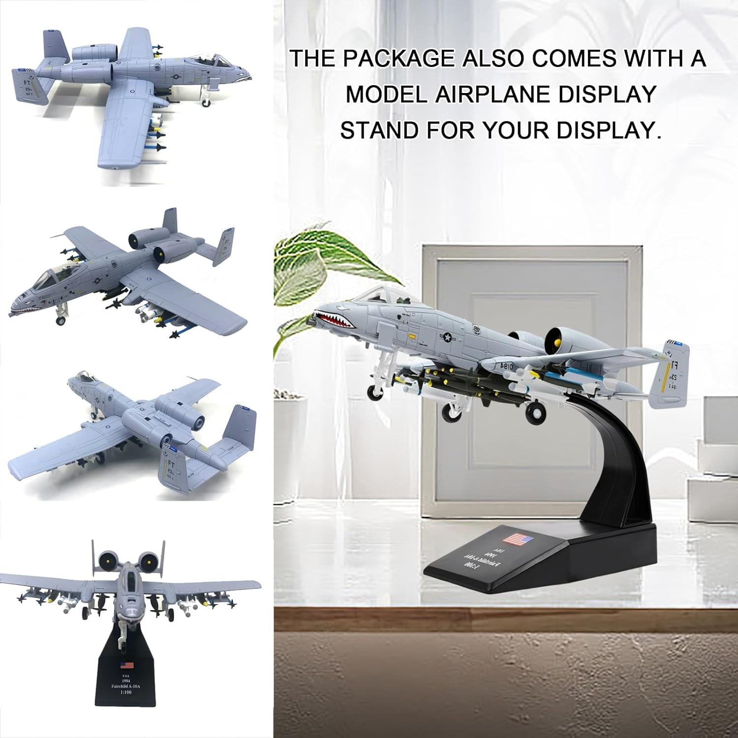 【A-10 Attack Thunderbolt II (Warthog)】:L'A-10 Thunderbolt II è un aereo a reazione monoposto, con doppio motore turbofan e ala dritta, sviluppato for l'aeronautica militare degli Stati Uniti. Comunemente noto con i soprannomi "Warthog" o "Hog" 【MATERIALI】: La fusoliera e le ali dell'aereo sono realizzate in lega di alta qualità, la coda dell'aereo è realizzata in plastica tecnica, i missili e i carrelli di atterraggio sono anch'essi realizzati in plastica tecnica. Il modello pressofuso è altamente restaurato con dettagli del vero aereo, adatto come ornamento e oggetto da collezione. 【Struttura in lega pressofusa solida】: la fusoliera in metallo resistente garantisce resistenza agli urti e alla corrosione, mentre la verniciatura elettrostatica antiruggine previene crepe o sbiadimenti nel corso dei decenni. Piccolo ma squisito, con un alto grado di restauro, è adatto for l'esposizione o la collezione su una vetrina o una scrivania. 【Specifiche del prodotto】 - Il classico modello di aereo pressofuso riproduce fedelmente l'aspetto e i dettagli dell'aereo reale. Sono presenti dettagli di installazione, carrello di atterraggio e texture della fusoliera. Le dimensioni del modello da caccia sono 7x7x1,8 pollici, il peso è di 0,34 libbre e la scala è 1/100. 【Dettagli intricati】: Realizzato con maestria in scala 1:100, questo modello dell'A-10 Thunderbolt II vanta una meticolosa attenzione ai dettagli, catturando l'essenza dell'iconico aereo