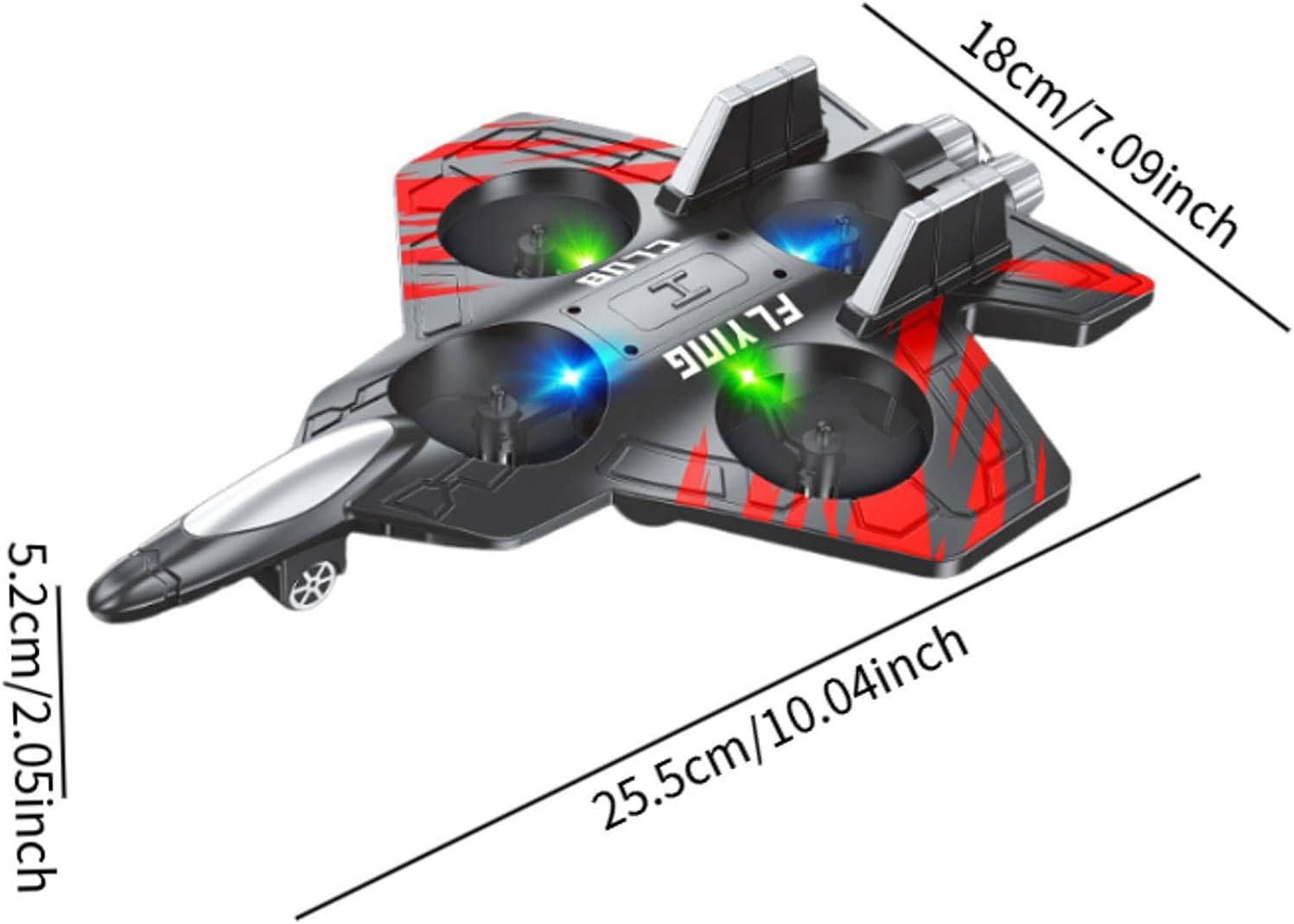 【Un bel regalo】: ideale per compleanni o feste per bambini, questo RC illuminato è un bel regalo per bambini e bambine dai 3 anni in su che amano l'avventura e il gioco fantasioso 【Dimensioni compatte】: Misurando 25,5 cm x 18 cm x 5,2 cm / 10,04 pollici x 7,09 pollici x 2,05 pollici, questo giocattolo aereo è leggero e portatile, il che lo rende ideale per l'uso interno o esterno in vari ambienti , cortili o parchi 【Design realistico】: prova l'emozione del volo simulato con questo aeroplano telecomandato in schiuma, caratterizzato da un design creativo e realistico che aggiunge al tuo tempo di gioco 【Funzionalità interattive】: goditi una gamma di funzioni entusiasmanti con questo giocattolo da combattimento, tra cui luci, sensori e capacità di acrobazie, offrendo un divertimento senza fine sia per i bambini che per adulti a casa 【Materiali di qualità】: Realizzato in schiuma e polipropilene di qualità, questo aereo RC per bambini è costruito per resistere all'usura. La sua struttura robusta garantisce che mantenga la sua forma anche dopo un uso ripetuto.