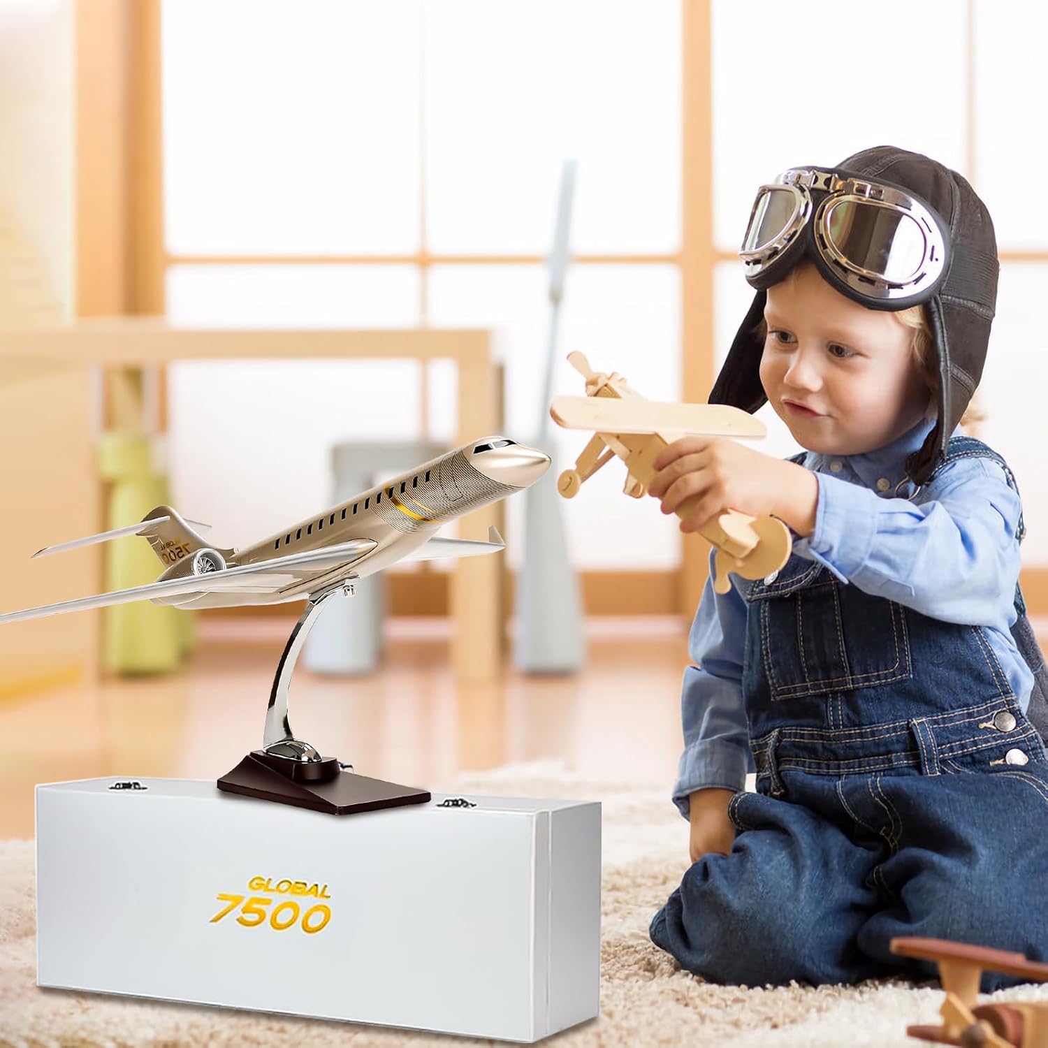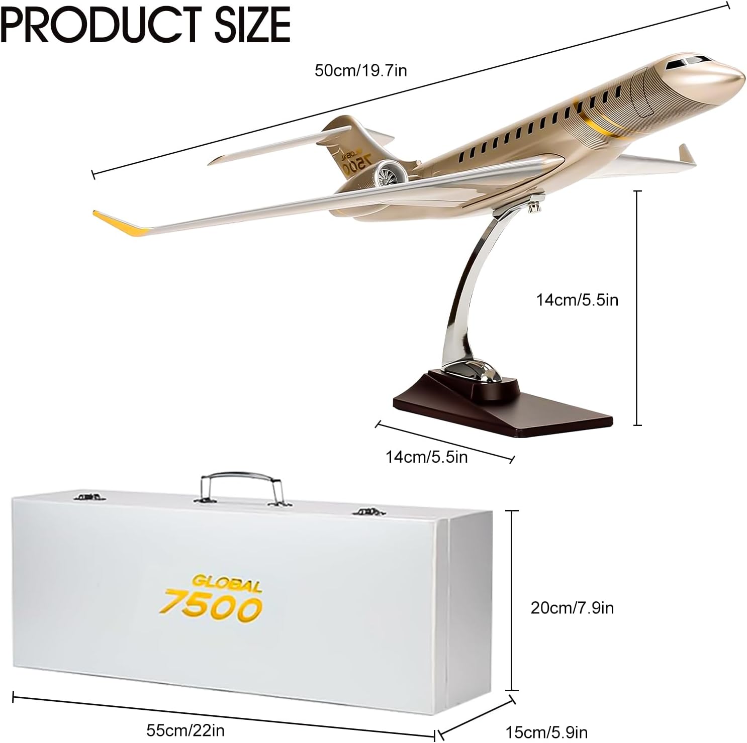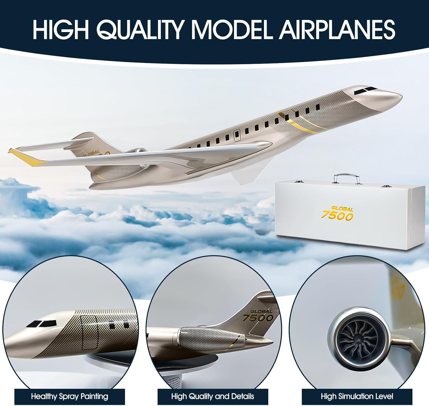 Modello jet replica 1:72: ripristino realistico del modello Bombardier 7500, dimensioni: lunghezza dell'aereo (19,7 pollici), altezza base (5,5 pollici), la scala ridotta consente di esporre meglio il modello di aereo ovunque Lavorazione eccellente: il modello ha un design elegante e realistico e riproduce le caratteristiche iconiche del Bombardier Global 7500, tra cui la sua forma unica, curve eleganti e dettagli squisiti. Il modello è realizzato in resina e ha una superficie liscia e colori vivaci. È assemblato con cura e riflette pienamente l'essenza dell'aereo reale. Dettagli dello scafo: modello di aereo splendidamente decorato. L'effetto dipinto a mano è chiaramente visibile nel contorno dello scafo, e i dettagli precisi ti fanno sentire la finezza e goderti lo squisito modello di aereo. Facile da montare: l'installazione è molto semplice, il che lo rende più veloce e stabile sulla scrivania e raggiunge un elevato grado di recupero. È un'ottima scelta per le persone a cui piace collezionare modelli di aerei. Modelli di aerei privati. Il modello di aereo di simulazione viene fornito con un supporto e può essere posizionato in qualsiasi momento. È un'ottima collezione per veri appassionati di modelli di aeromobili e rappresenta anche un'ottima decorazione per la casa, l'ufficio e il bancone. È anche un ottimo regalo di Natale/regalo di compleanno per bambini e amici.