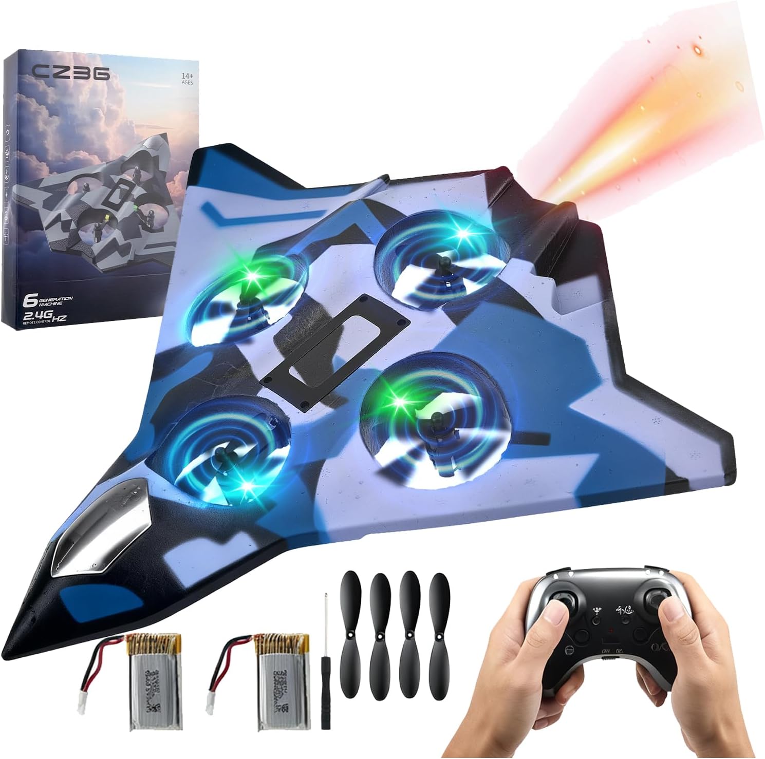 【Costruzione robusta】: realizzato in materiale espanso , questo aereo è costruito per resistere a urti e impatti, garantendo una lunga durata e resistenza ai danni durante i 【Design di volo stabile】: caratterizzato da un design ad fissa, questo aereo telecomandato garantisce stabilità durante , rendendolo facile da controllare sia che si libri ad o che vicino al suolo 【Ottimo regalo per tutte le età】: questo modello di aeroplano volante offre divertimento sia per i bambini che per adulti appassionati di aviazione, rendendolo un'ottima scelta regalo per ogni occasione 【Prestazioni efficienti】: dotato di un motore a tazza cava, questo velivolo offre un basso consumo energetico pur offrendo prestazioni potenti. Il telecomando a 2,4 GHz consente un utilizzo semplice fino a una distanza di 100 metri. 【Volo notturno illuminato】: dotato di luci colorate, questo RC diventa spettacolo accattivante durante notturno, migliorando la visibilità e l'eccitazione