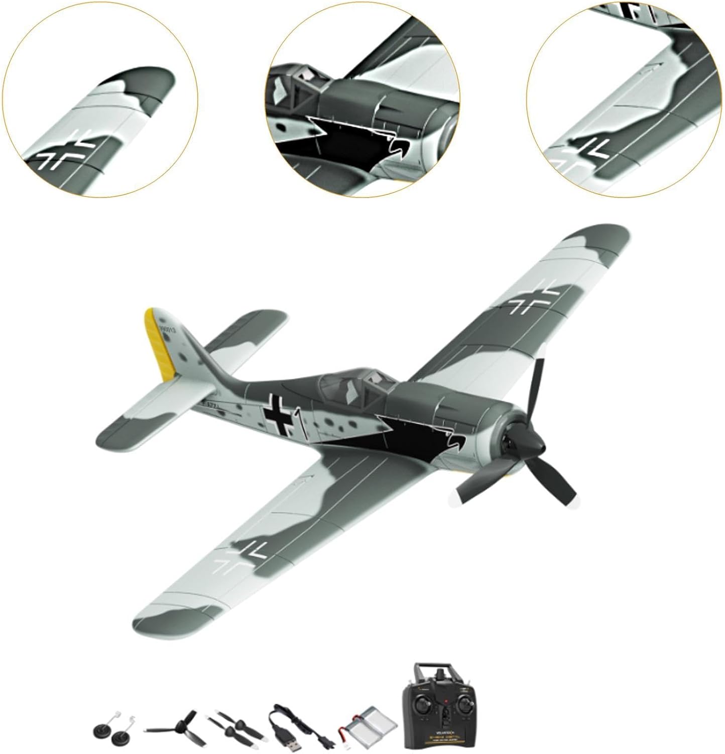 【Funzioni di volo avanzate】: prova l'emozione di volare con le funzioni di acrobazia e decollo a 1 tasto, che semplificano l'esecuzione di manovre impressionanti 【 di controllo avanzato】: il design canali include alettoni per un maggiore controllo con precisione, mentre i motori aggiornati e i punti di accesso del ricevitore garantiscono un funzionamento regolare e una facile manutenzione 【Costruzione robusta】: realizzato in materiale PP per una resistenza leggera, questo modello presenta un tettuccio trasparente della cabina di pilotaggio aggiornato con di carta per un maggiore realismo 【Avvisi pratici】: rimani informato con avvisi di perdita di frequenza e batteria scarica, assicurandoti ogni volta un'esperienza di volo affidabile 【Design intuitivo】: dotato di un giroscopio a 6 assi per l'assistenza al controllo di volo, questo modello non richiede assemblaggio ed è adatto ai principianti per mettere le proprie abilità