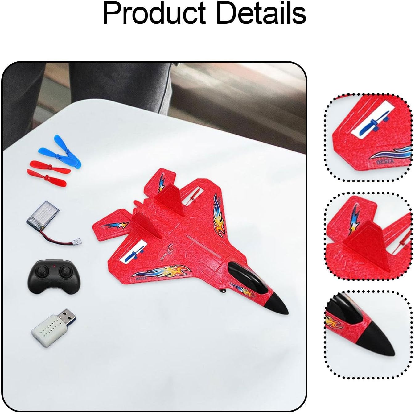 【Pacchetto completo】: il pacchetto include 1 , 1 telecomando, 1 batteria, 4 eliche di ricambio e 1 cavo di ricarica USB 【Materiale Premium】: Realizzato in materiale FOAM di alta qualità, questo aereo RC è leggero, resistente agli urti, non facile da rompere e garantisce un lungo periodo di utilizzo 【Design ricaricabile】: il giocattolo RC è dotato di un cavo di ricarica USB per una ricarica sicura e stabile. Il tempo di ricarica è di 5-10 minuti e il tempo di volo è di circa 10 minuti. Con luci LED colorate, migliora la visibilità durante notturno. 【Funzionalità di stabilità avanzate】: l'aereo telecomandato è dotato di stabilizzatore giroscopico intelligente, un di volo con bilanciamento automatico stabile, che garantisce un volo e facile, consentendo anche ai principianti di padroneggiare i controlli senza sforzo 【Bel regalo】: il per hobby con telecomando è un bel regalo per bambini e adulti per compleanni e festival, facile da pilotare, adatto a principianti ed esperti, circa 34 cm x 26 cm x 11,5 cm / 13,39 pollici x 10,24 pollici x 4,53 pollici