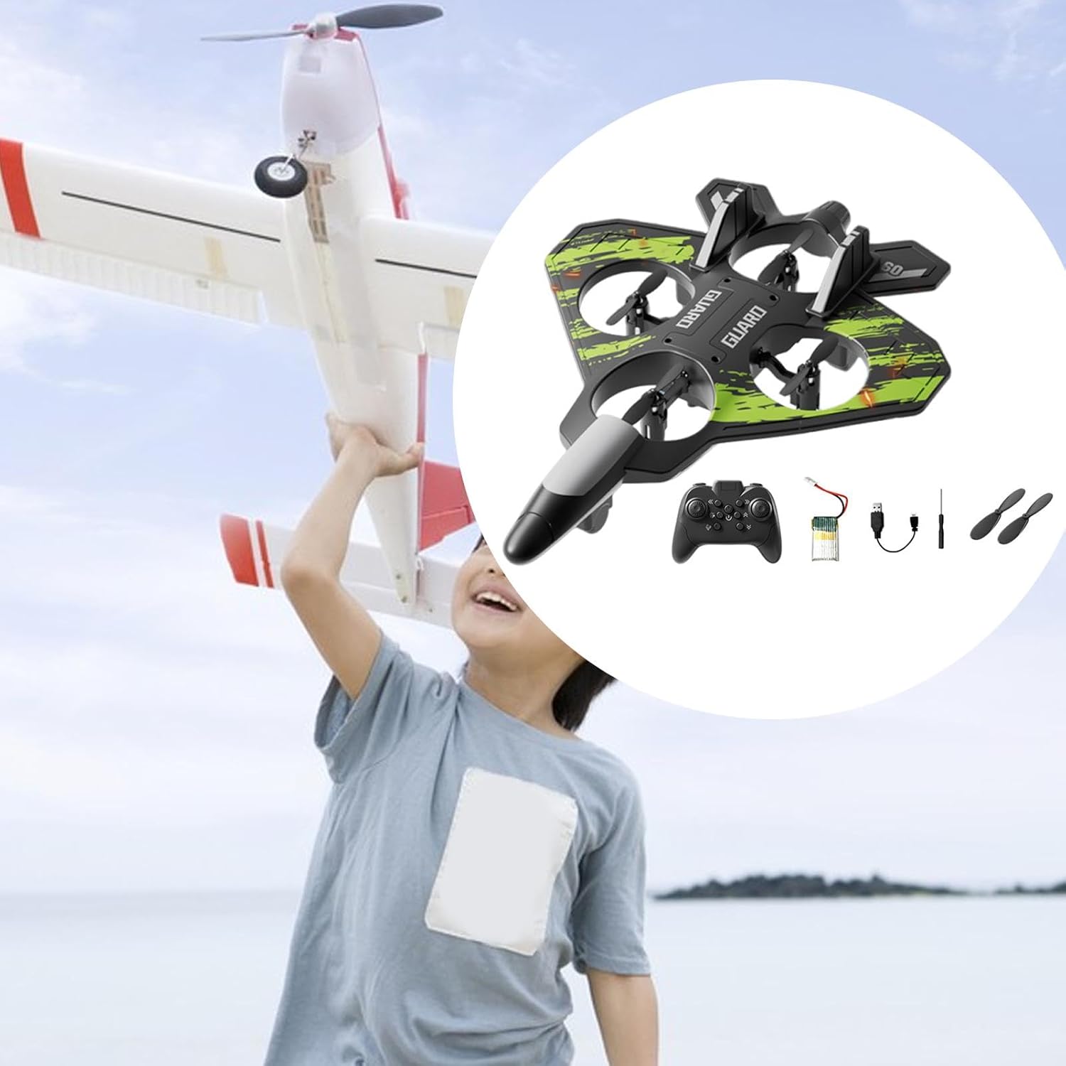【Pacchetto completo】: il set include tutto il necessario per iniziare, 1 RC, 1 telecomando, 1 cacciavite, un cavo di ricarica USB, 2 eliche di ricambio, il tutto ben confezionato in una scatola colorata 【Ottimo regalo per tutte le età】: questo modello di aeroplano volante è adatto sia ai bambini che agli adulti appassionati di aviazione, rendendolo una scelta regalo ideale per ogni occasione 【Volo notturno illuminato】: dotato di luci LED colorate, questo RC diventa spettacolo accattivante durante notturno, migliorando la visibilità e l'eccitazione 【Design di volo stabile】: caratterizzato da un design ad fissa, questo aereo telecomandato garantisce stabilità durante , rendendolo facile da controllare sia ad che in planata vicino al suolo 【Costruzione robusta】: realizzato in schiuma EVA leggera, questo acrobatico telecomandato vanta una buona resistenza, che consente di resistere a cadute su superfici dure senza danneggiarsi facilmente