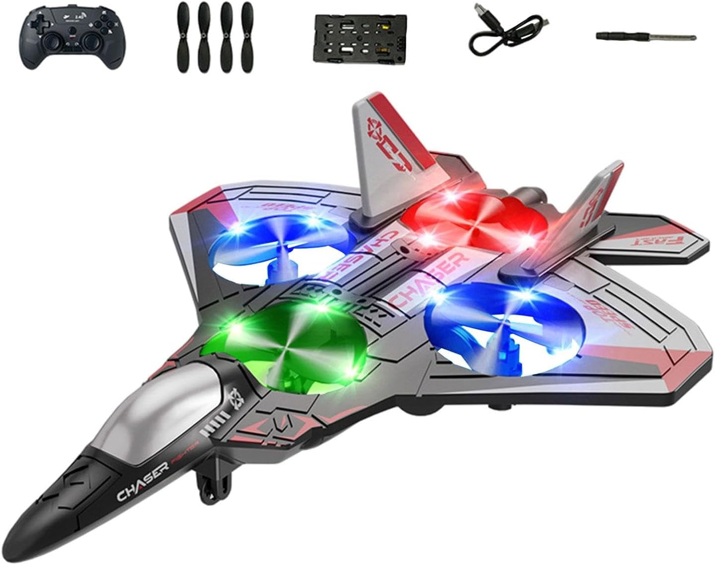 【Design di volo stabile】: dotato di un design ad fissa, questo aereo da caccia RC garantisce stabilità durante . Con impostazioni di velocità regolabili, offre un facile controllo sia ad che in planata vicino al suolo. 【Materiale】: Realizzato in EVA, questo aereo RC vanta una resistenza agli urti, consentendogli di resistere alle cadute su superfici dure senza danni 【Facile da controllare】: giocattolo aereo RC, avanti, gira a sinistra e a destra, su e giù, rollio e rotazione a 360°, un pulsante per decollare e atterrare, arresto di emergenza, mantenimento dell'altitudine, basso rumore, alta potenza, anche i principianti possono controllarlo rapidamente 【Illuminazione notturna】: questo aereo telecomandato con luci colorate diventa spettacolo accattivante durante , migliorando la visibilità e l'eccitazione 【Regalo】: Questo aereo RC offre divertimento sia ai bambini che agli appassionati di aviazione, rendendolo una scelta regalo ideale per ogni occasione