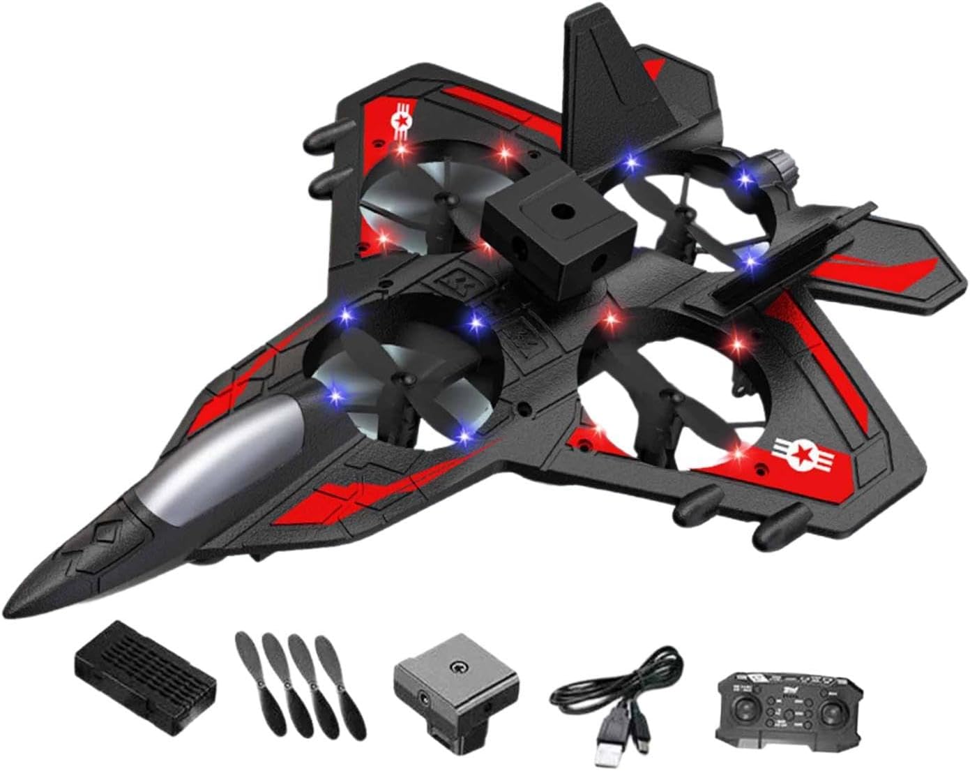 【Facile da pilotare】: Elicottero RC con funzioni di evitamento degli ostacoli e mantenimento dell'altitudine per un controllo stabile, rendendolo facile da usare sia per bambini che per adulti 【Volo notturno illuminato】: Aereo RC con luci, durante notturno, migliorando la visibilità e l'eccitazione 【Regalo per tutte le età】: questo aereo da combattimento RC offre divertimento sia ai bambini che agli adulti appassionati di aviazione, rendendolo un'ottima scelta regalo per ogni occasione 【Costruzione robusta】: realizzato in materiale espanso, questo aeroplano telecomandato in schiuma è robusto per un uso a lungo termine 【Design leggero】: aereo telecomandato dal design leggero, compatto e facile da trasportare