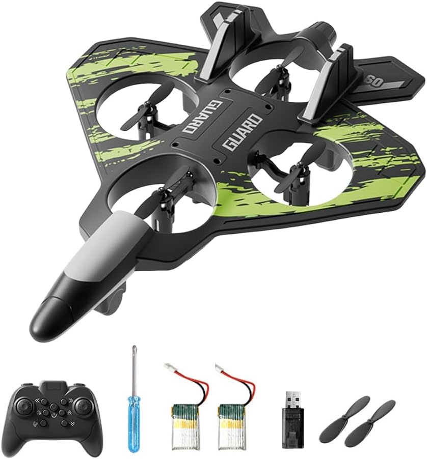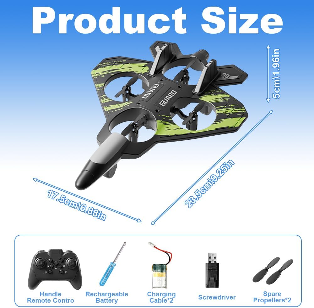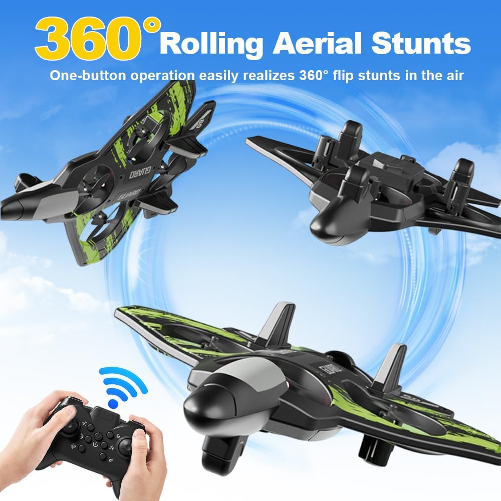 Materiale antiurto: il nostro aeroplano telecomandato - drone è realizzato in schiuma EPP resistente agli urti e include eliche protette. È quindi ideale per impieghi gravosi e atterraggi difficili. I bambini possono eseguire emozionanti manovre di volo, come capriole a 360°, voli circolari, rotazioni automatiche e cambi di direzione delicati, garantendo il divertimento sia all'interno che all'esterno Telecomando a 2,4 GHz e luce LED: l'aeroplano RC è dotato di un sistema di telecomando a 2,4 GHz che fornisce un segnale forte e stabile. Ha una potenza di lunga durata e consente un volo fluido. Anche i principianti possono decollare rapidamente e pilotarlo senza problemi. Con le luci colorate scintillanti, volare di notte è ancora più bello e non c'è bisogno di temere di perdere l'aereo Aereo RC per principianti: grazie al gameplay migliorato, è possibile eseguire fantastiche acrobazie 3D e voli a 360° premendo i pulsanti per provare emozionanti acrobazie di controllo. Più a lungo si gioca con l'aereo telecomandato, più diventa interessante. Inoltre, il gioco dispone di un pulsante per il decollo, un pulsante per il ritorno e molte altre funzioni che potrete esplorare Volo stazionario stabile: questo aeroplano RC è stato recentemente aggiornato. La pressione dell'aria è impostata su un livello elevato per mantenerlo in volo stazionario. Ciò gli consente di librarsi senza problemi nell'aria. È perfetto per giocare sia all'interno che all'esterno Il pacchetto include: aereo telecomandato*1, eliche di ricambio *4, telecomando *1, cavo di ricarica *1, batterie *2, istruzioni *1. Leggere attentamente le istruzioni per l'uso prima dell'utilizzo