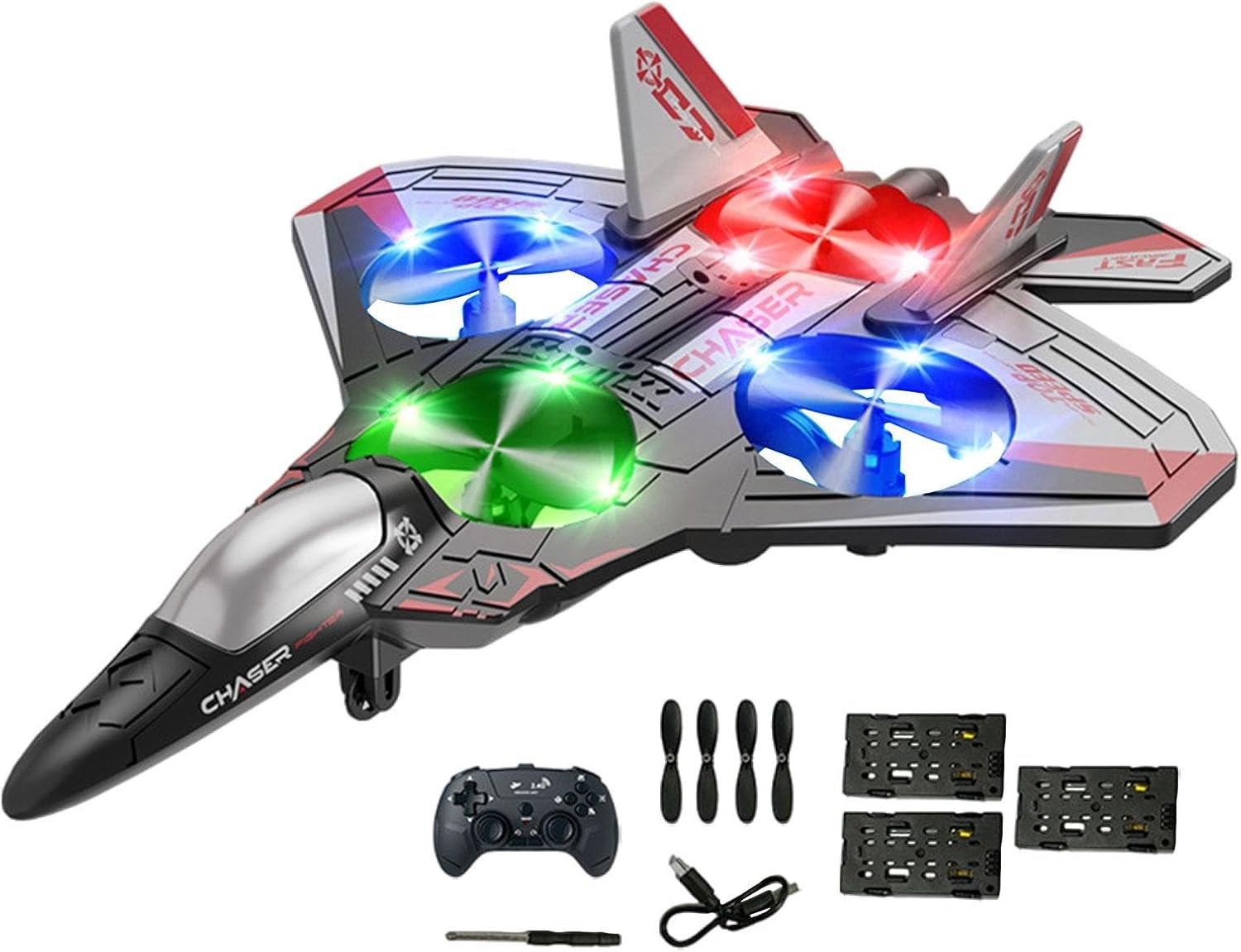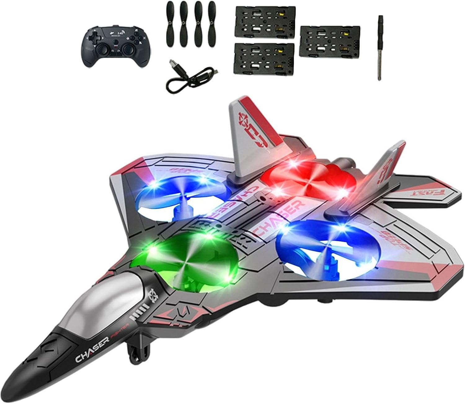 【Materiale】: Realizzato in EVA, questo aereo RC vanta una resistenza agli urti, consentendogli di resistere alle cadute su superfici dure senza danni 【Regalo】: Questo aereo RC offre divertimento sia ai bambini che agli appassionati di aviazione, rendendolo una scelta regalo ideale per ogni occasione 【Design di volo stabile】: dotato di un design ad fissa, questo aereo da caccia RC garantisce stabilità durante . Con impostazioni di velocità regolabili, offre un facile controllo sia ad che in planata vicino al suolo. 【Illuminazione notturna】: questo aereo telecomandato con luci colorate diventa spettacolo accattivante durante , migliorando la visibilità e l'eccitazione 【Facile da controllare】: giocattolo aereo RC, avanti, gira a sinistra e a destra, su e giù, rollio e rotazione a 360°, un pulsante per decollare e atterrare, arresto di emergenza, mantenimento dell'altitudine, basso rumore, alta potenza, anche i principianti possono controllarlo rapidamente
