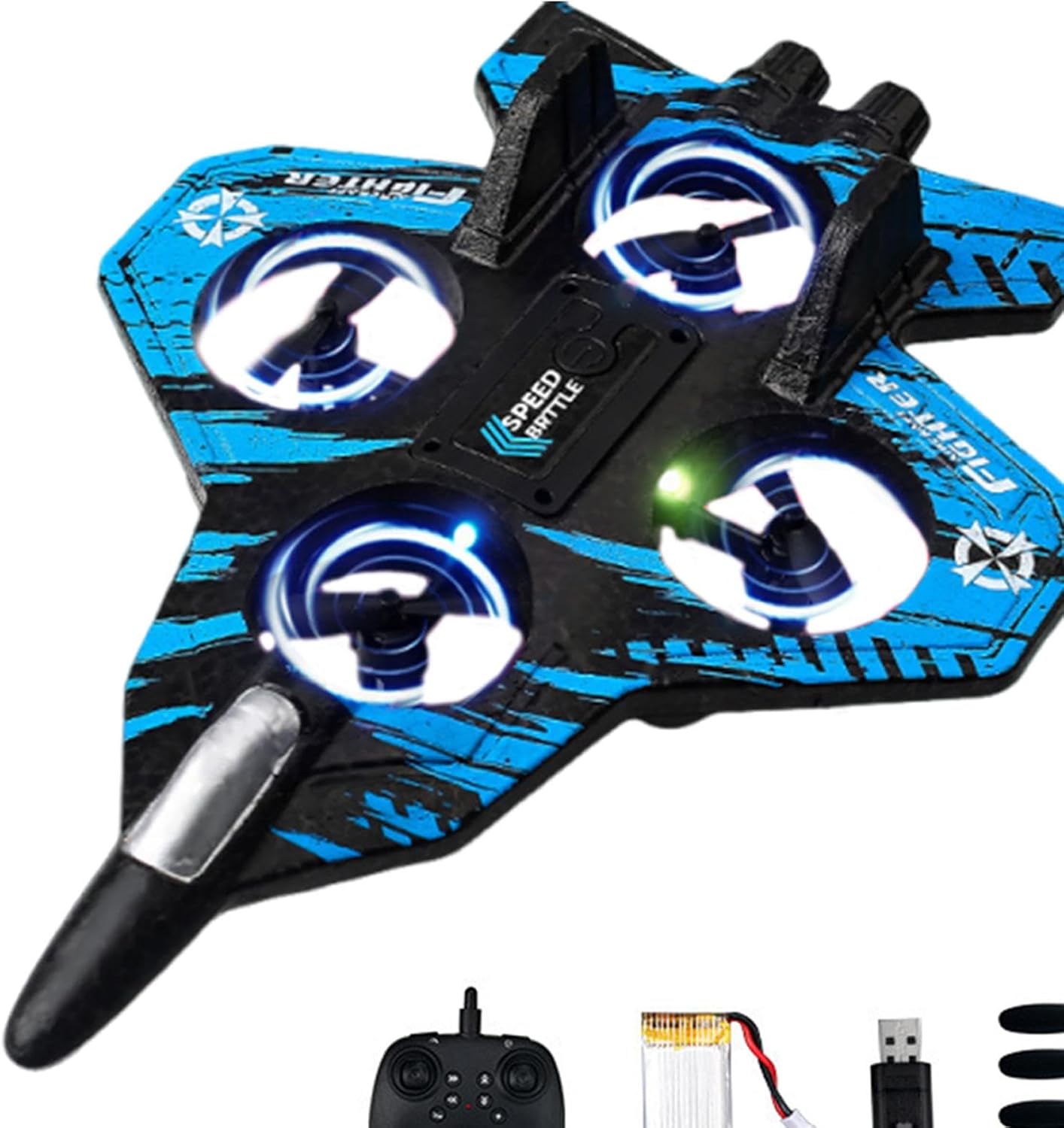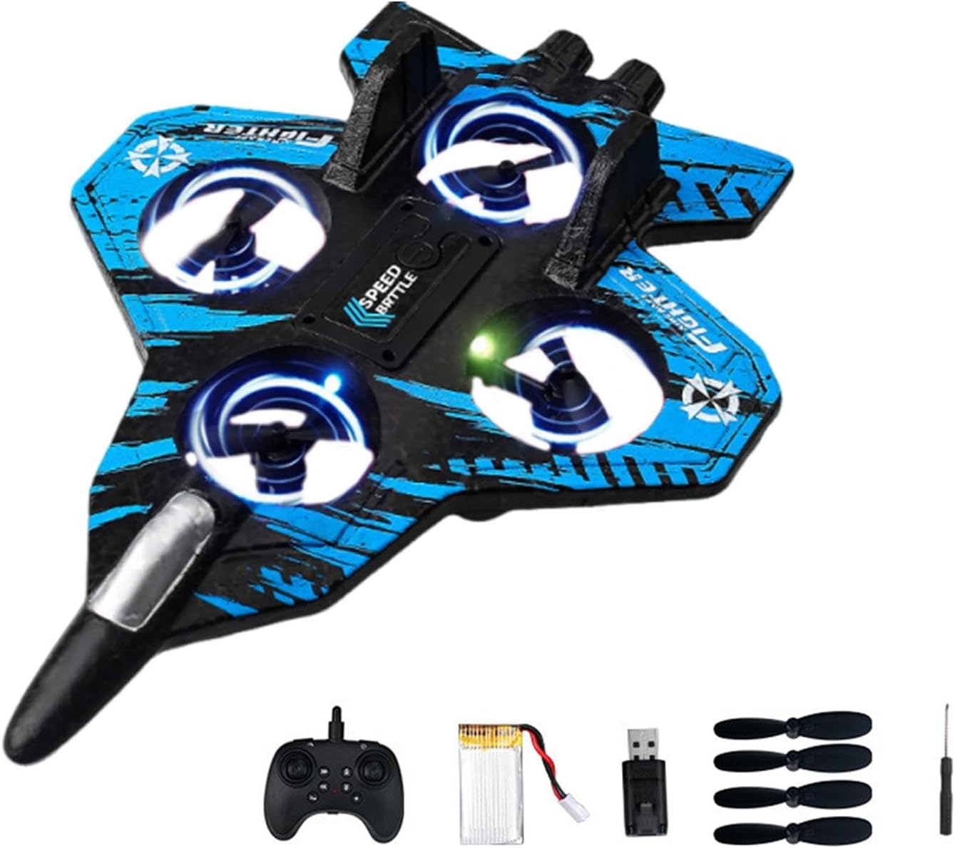 【Illuminazione notturna】: questo aereo telecomandato con luci LED colorate, diventa spettacolo accattivante durante , migliorando la visibilità e l'eccitazione 【Regalo】: Questo aereo RC offre divertimento sia ai bambini che agli appassionati di aviazione, rendendolo una scelta regalo ideale per ogni occasione 【Materiale】: Realizzato in PP e materiali in schiuma, questo aereo RC vanta una resistenza agli urti, consentendogli di resistere alle cadute su superfici dure senza danni 【Design di volo stabile】: Dotato di un design ad fissa, questo aereo da caccia RC garantisce stabilità durante . Grazie alle impostazioni di velocità regolabili, offre un facile controllo sia ad che in planata. 【Facile da controllare】: giocattolo aereo Rc, avanti, gira a sinistra e a destra, su e giù, rollio e rotazione a 360 °, un pulsante per decollare e atterrare, arresto di urgenza, mantenimento dell'altitudine, basso rumore, alta potenza, anche i principianti possono controllarlo rapidamente