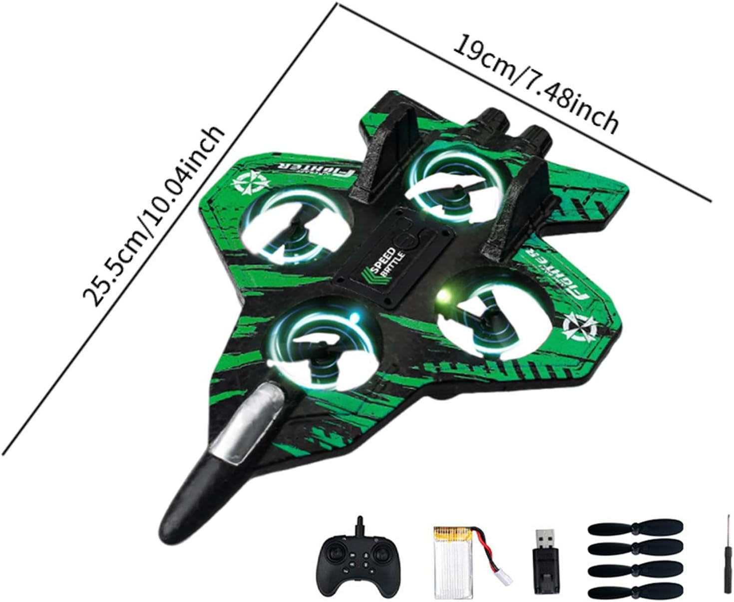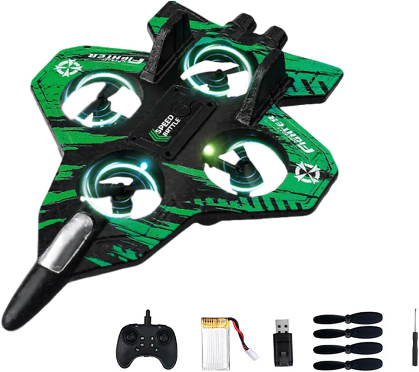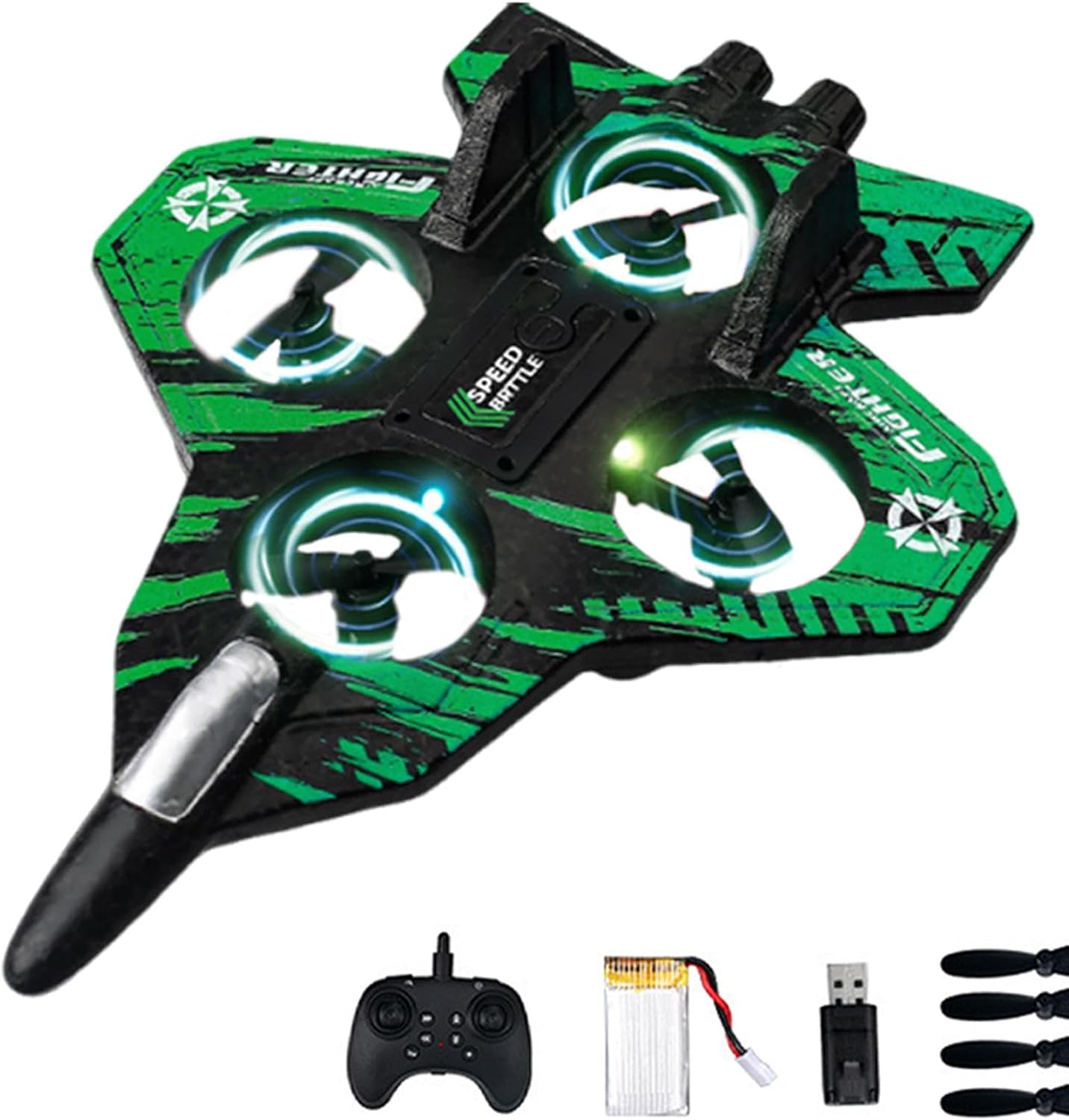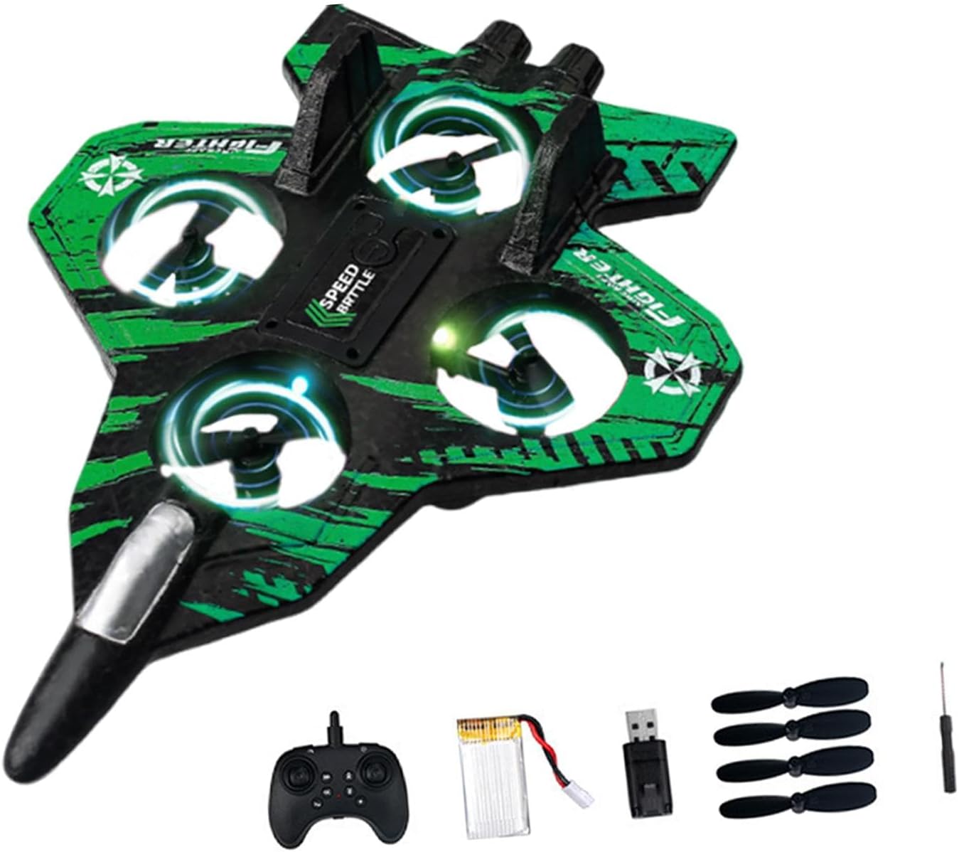 【Illuminazione notturna】: questo aereo telecomandato con luci LED colorate, diventa spettacolo accattivante durante , migliorando la visibilità e l'eccitazione 【Regalo】: Questo aereo RC offre divertimento sia ai bambini che agli appassionati di aviazione, rendendolo una scelta regalo ideale per ogni occasione 【Materiale】: Realizzato in PP e materiali in schiuma, questo aereo RC vanta una resistenza agli urti, consentendogli di resistere alle cadute su superfici dure senza danni 【Design di volo stabile】: Dotato di un design ad fissa, questo aereo da caccia RC garantisce stabilità durante . Grazie alle impostazioni di velocità regolabili, offre un facile controllo sia ad che in planata. 【Facile da controllare】: giocattolo aereo Rc, avanti, gira a sinistra e a destra, su e giù, rollio e rotazione a 360 °, un pulsante per decollare e atterrare, arresto di urgenza, mantenimento dell'altitudine, basso rumore, alta potenza, anche i principianti possono controllarlo rapidamente