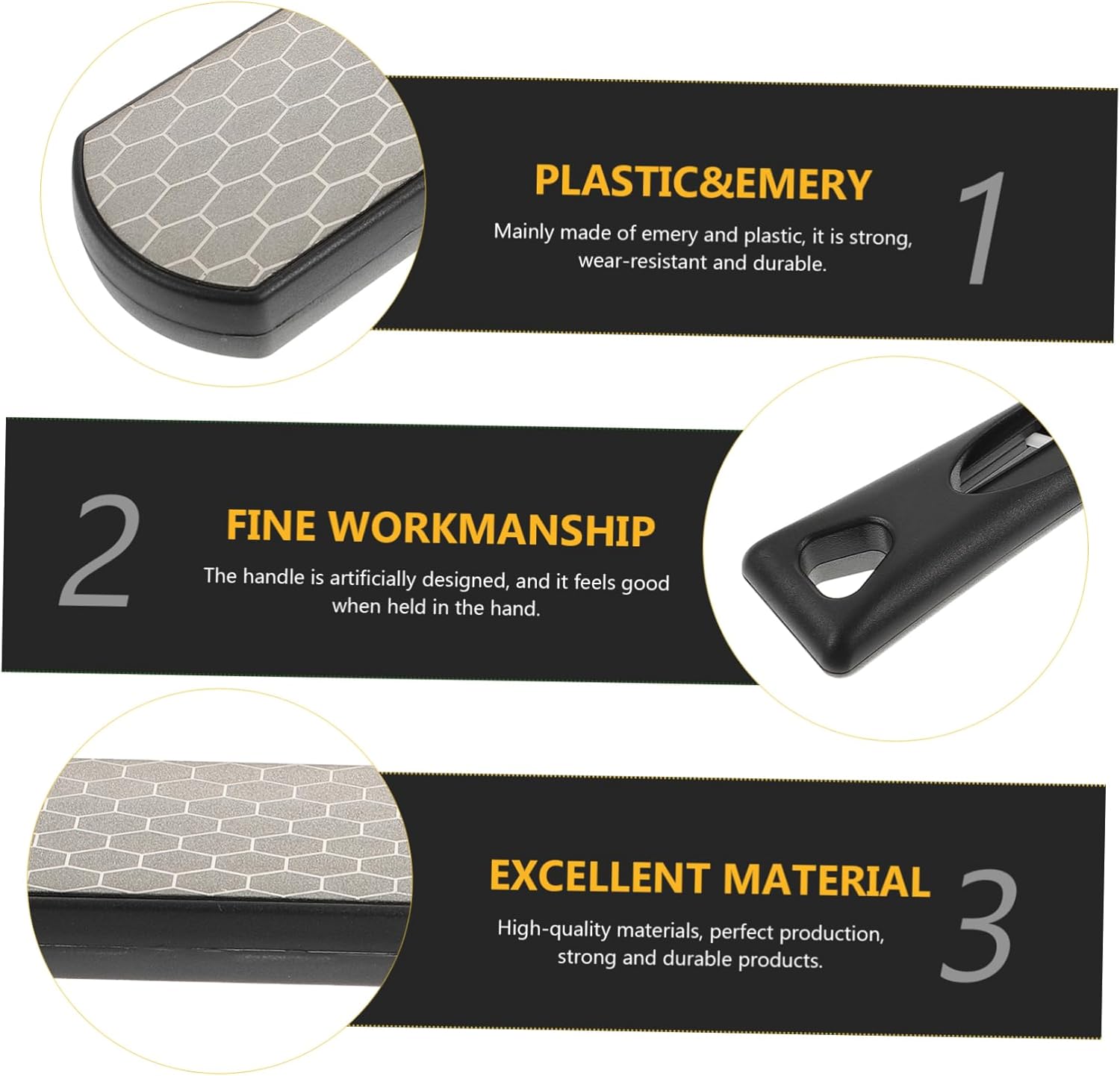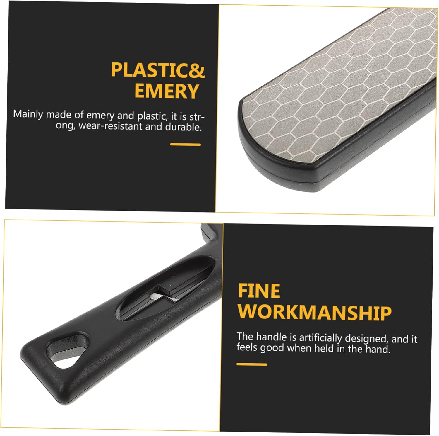Temperamatite multiuso: l'effetto di macinazione è veloce e l'effetto è buono, facendoti risparmiare tempo, temperamatite domestico Smerigliatrice a nido d'ape: è fatta di più materiale, resistente e può servirti bene, affilatrice a nido d'ape Smerigliatrice a doppia faccia: questo prodotto è realizzato con materiali squisiti e belli e un affilatore multifunzionale Accessorio da cucina: impermeabile, anticorrosivo, anti-rottura, utilizzabile, temperamatite anticorrosione Affilatrice multiuso: il design è semplice e la superficie è liscia senza sbavature, affilatrice