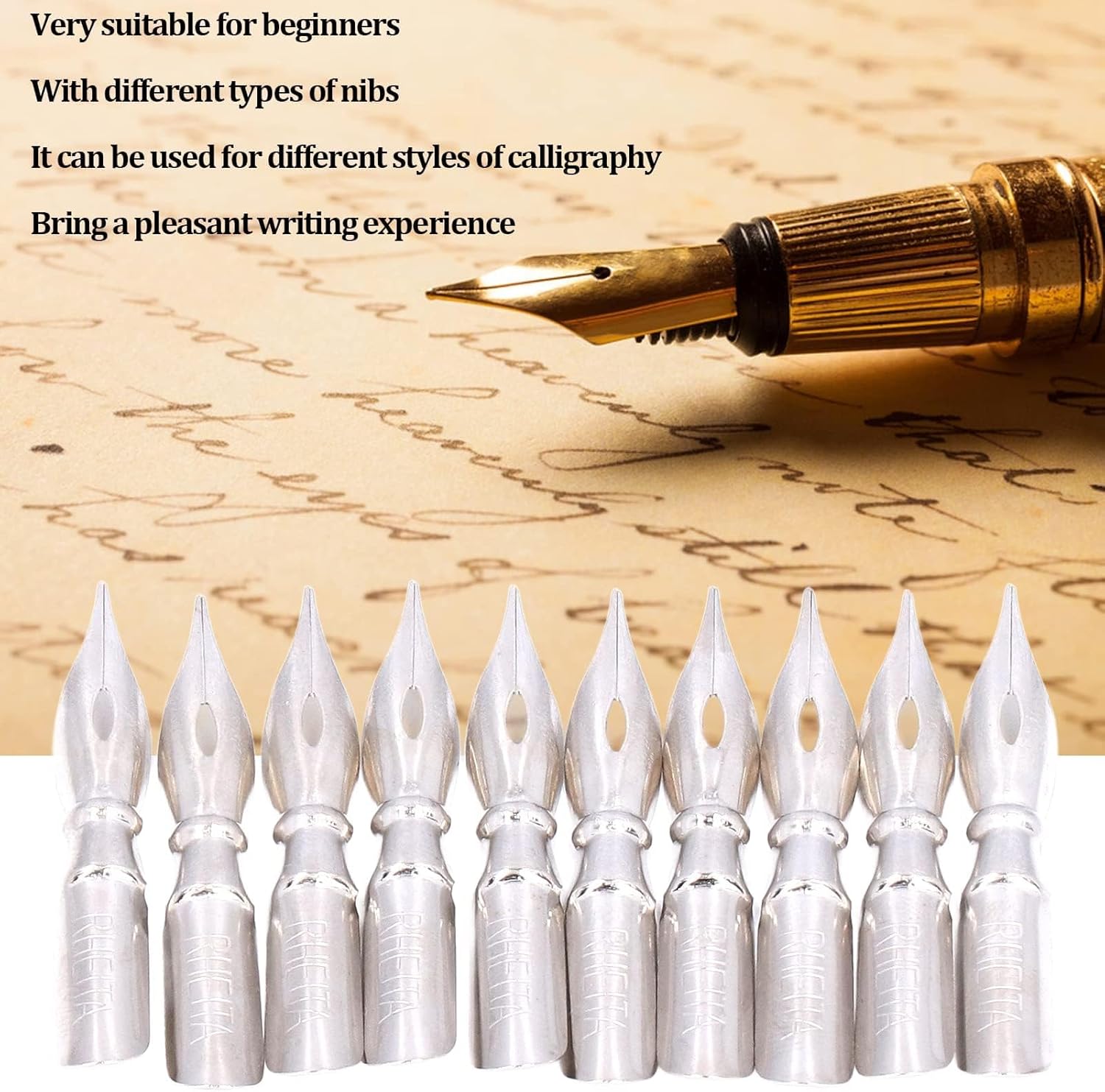 CAMPO DI APPLICAZIONE - Il pennino per calligrafia è progettato per una scrittura confortevole, la punta della penna per una piacevole esperienza di scrittura, adatta per creare linee, texture, ecc. È necessario intingere l'inchiostro prima dell'uso, assorbire la giusta quantità di inchiostro e creare le linee desiderate FATTO A MANO - Le punte sono realizzate con cura dai nostri migliori artigiani, con l'obiettivo di fornire una scrittura confortevole e senza barriere. Adatto a tutti gli stili di fumetto e calligrafia. È uno strumento indispensabile per i principianti del fumetto e della calligrafia. È adatto per scrapbooking, journaling, scrittura a mano, emissione di biglietti e inviti ABBINAMENTO DI TIPI DIVERSI - Il set di punte viene fornito con diversi tipi di punte, con 10 punte per fumetti che possono essere utilizzate per diversi stili di calligrafia. La punta della penna ad immersione è realizzata con cura dai nostri migliori artigiani. non solo per se stessi, ma anche come squisiti regali per pittori e amanti della pittura MATERIALE METALLICO - I pennini per calligrafia sono realizzati in materiale metallico di alta qualità, possono essere utilizzati per lungo tempo, migliorando la sua durata e la resistenza all'abrasione e la durata, pur mantenendo una sensazione di scrittura e disegno confortevole FACILE DA INSTALLARE - Il set di punte per penna a piuma è molto adatto ai principianti, compatto, leggero, facile da trasportare, facile da installare e può essere installato senza altre operazioni complicate. È il set di penne perfetto per i principianti di manga e per i professionisti della calligrafia