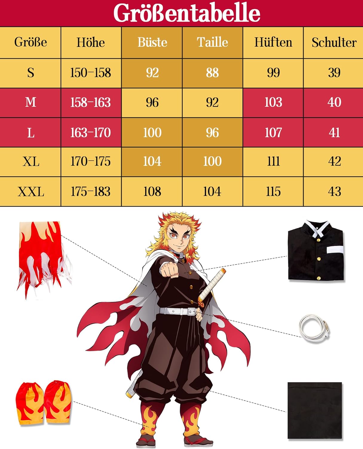 Il set cosplay di Zenitsu è realizzato con buoni materiali e i dettagli sono fedeli all’anime. Completo e adatto anche per eventi o fiere. Purtroppo ho dovuto effettuare il reso perché la taglia non era quella giusta, ma il prodotto in sé era valido e ben confezionato.